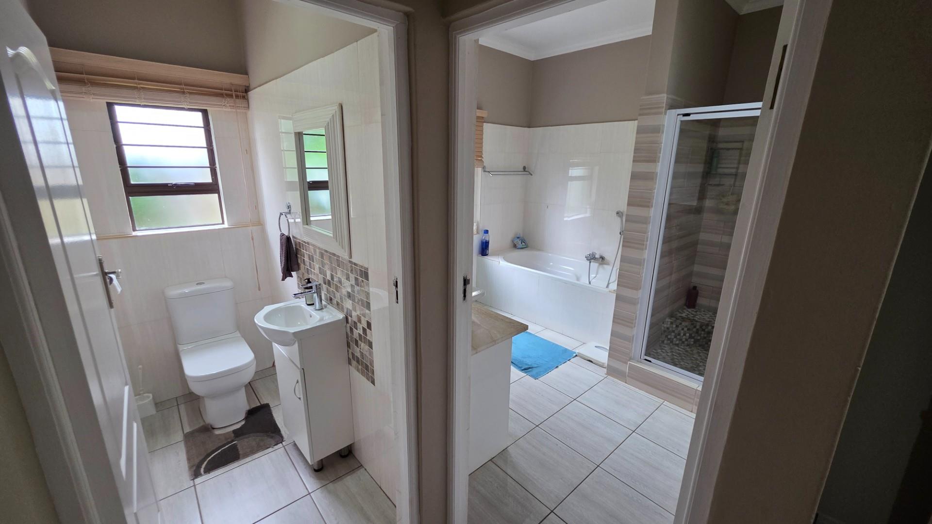 Additional benefits continue with the home having 10 solar panels with an inverter system, a fully functional alarm system with beams, although the area is super safe and is patrolled regularly. You also have access to a separate private laundry/courtyard area, a reserve water tank in case of a water shortage, a tile and automated double garage and a paved driveway, while the property is also fully walled.