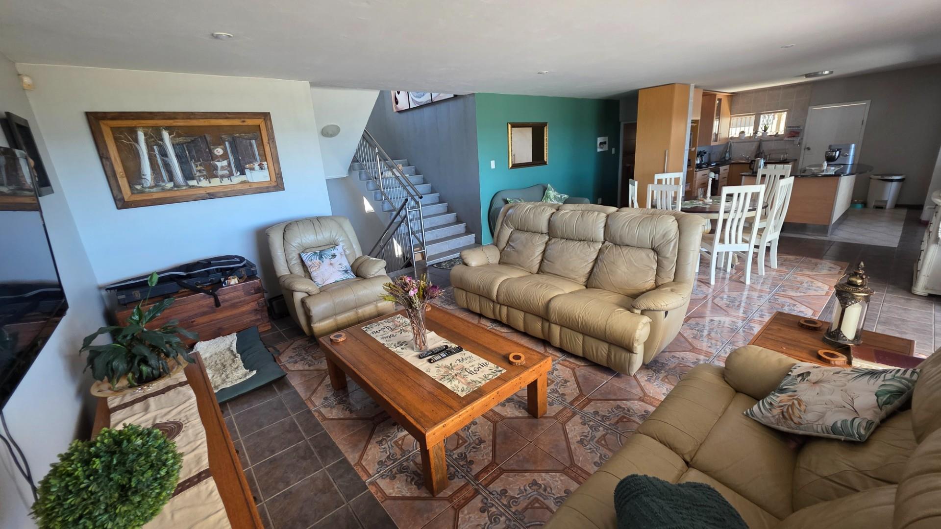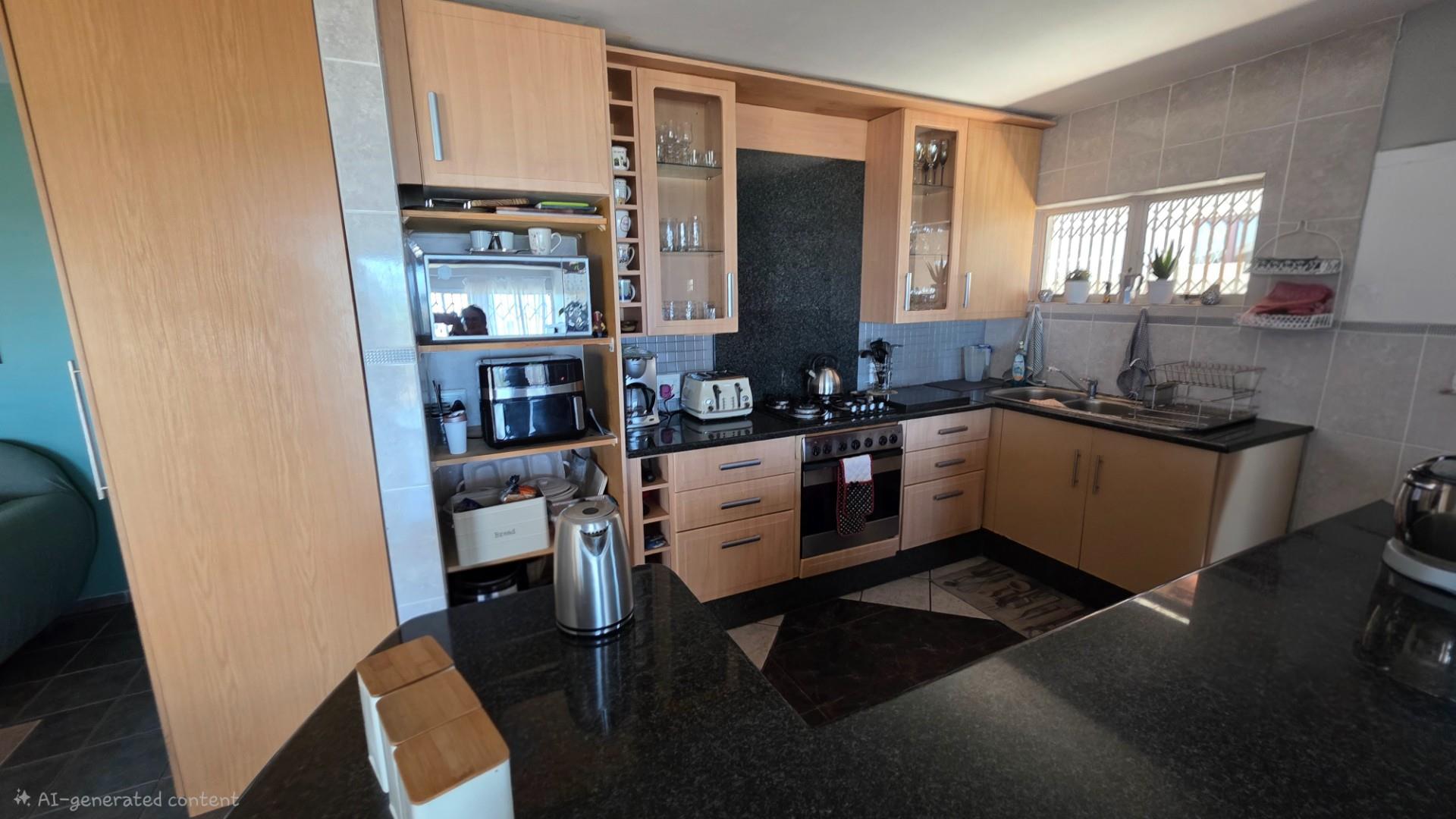 Perched with a birds eye view, on a hillside in Ramsgate, this beautifully renovated multi-level residence offers a rare combination of architectural distinction, modern convenience, and breath-taking un-interrupted ocean vistas of the warm Indian Ocean along KwaZulu-Natal’s Lower South Coast. The long sloping driveway leads to a uniquely designed home. On walking through the entrance all, you flow up a level to a lovely flowy open-plan living area seamlessly connecting the lounge, dining room, and modern kitchen. The kitchen is fitted with ample storage, integrated appliances, a generous island/breakfast nook, and durable tiled flooring, with crisp black granite and beautiful wood finishes making it both practical and stylish.