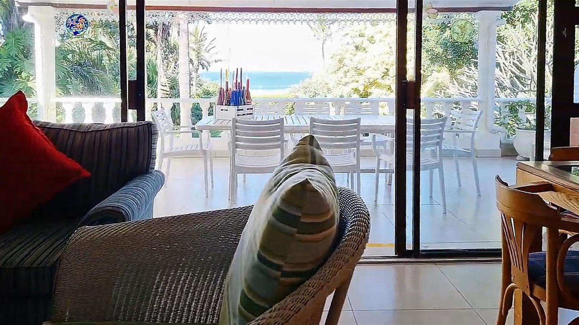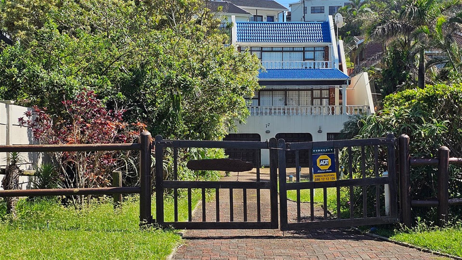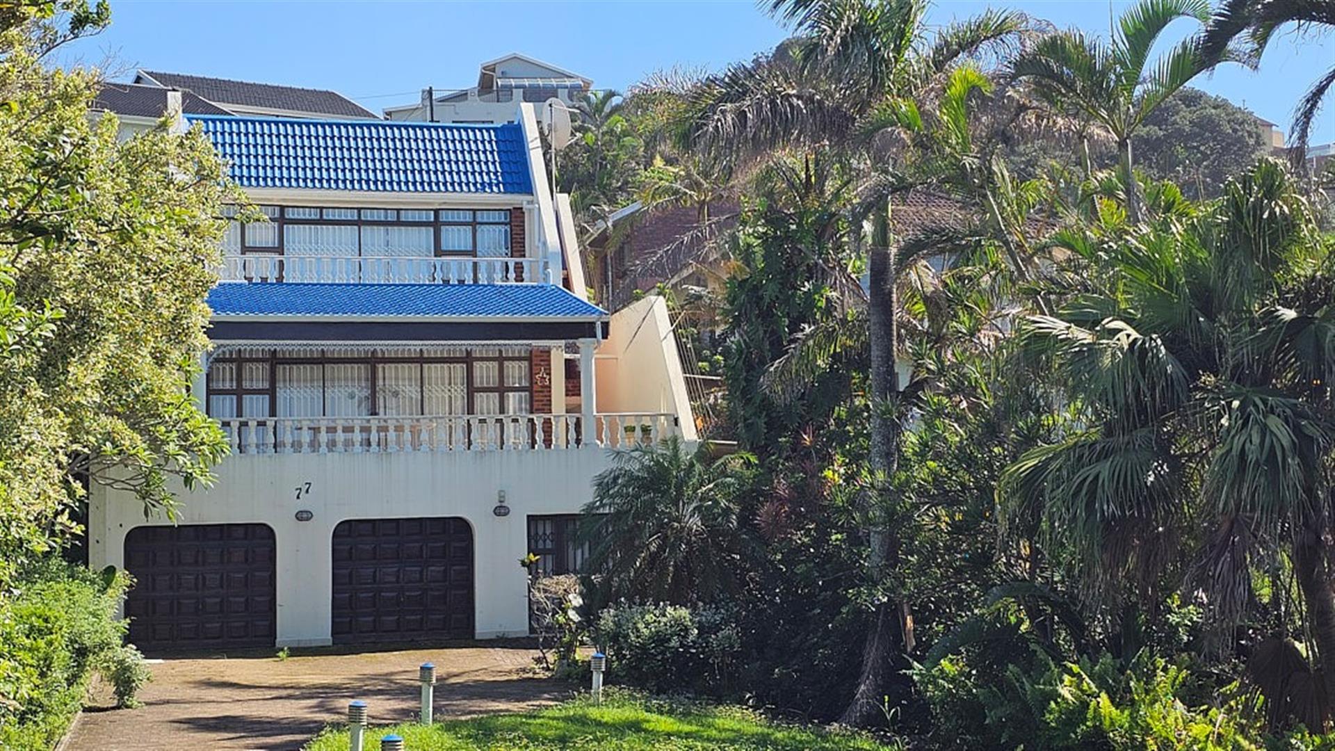 The layout of the house is unique, as the 3rd bedroom and bathroom is half a staircase up. Up yet another half a stairway is the second bedroom and bathroom with a shower. These rooms are of good size and queen beds fit in with space to spare. Another half a stairway up is the spacious main bedroom. This is a delightful bedroom indeed and it opens to a balcony from where you can enjoy even more expansive sea views. The en-suite bathroom is enchanting with a super elegant bath. See the SEA, hear the SEA, smell the SEA....almost touch the OCEAN!! Total and absolute bliss!! this bedroom also has a walk-in cupboard that adds that touch of sophistication. Though, it must be said: the whole house oozes luxury! Beautiful finishes all round!! The 4th bedroom down stairs rom the living area and is en-suite to a bathroom with a shower. This room also opens with sliding doors to the outside, so if you have independent visitors the may come and go as they like, without bothering the rest of the household. Extras that this property offers are: a double garage with automated garages, a store room, solar panels, 3 back-up water tanks, domestic quarters, alarm connected to a security company and electric fencing for the house. INVESTMENT GALORE...BEACHFRONT!!! Give me a call.
