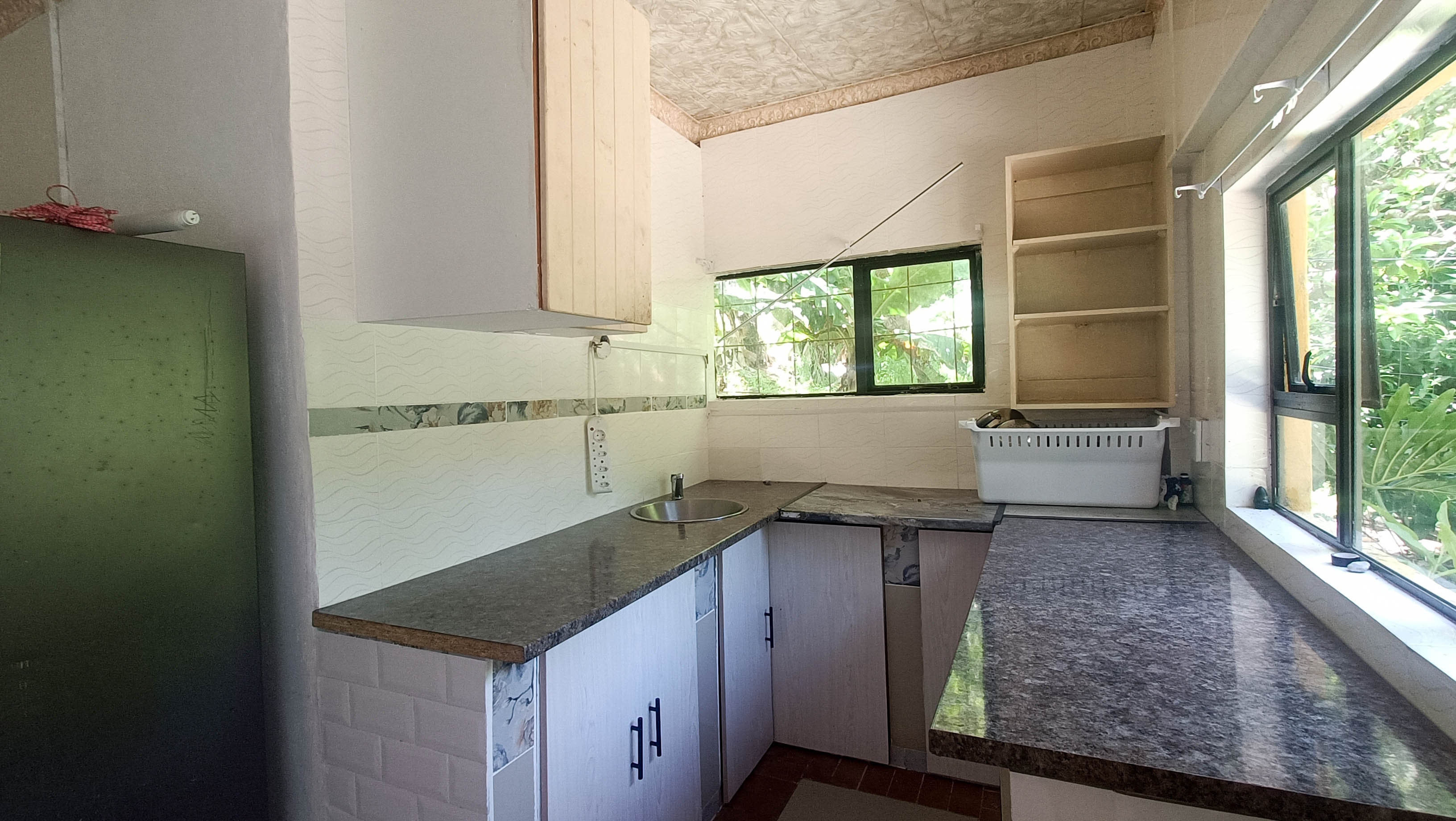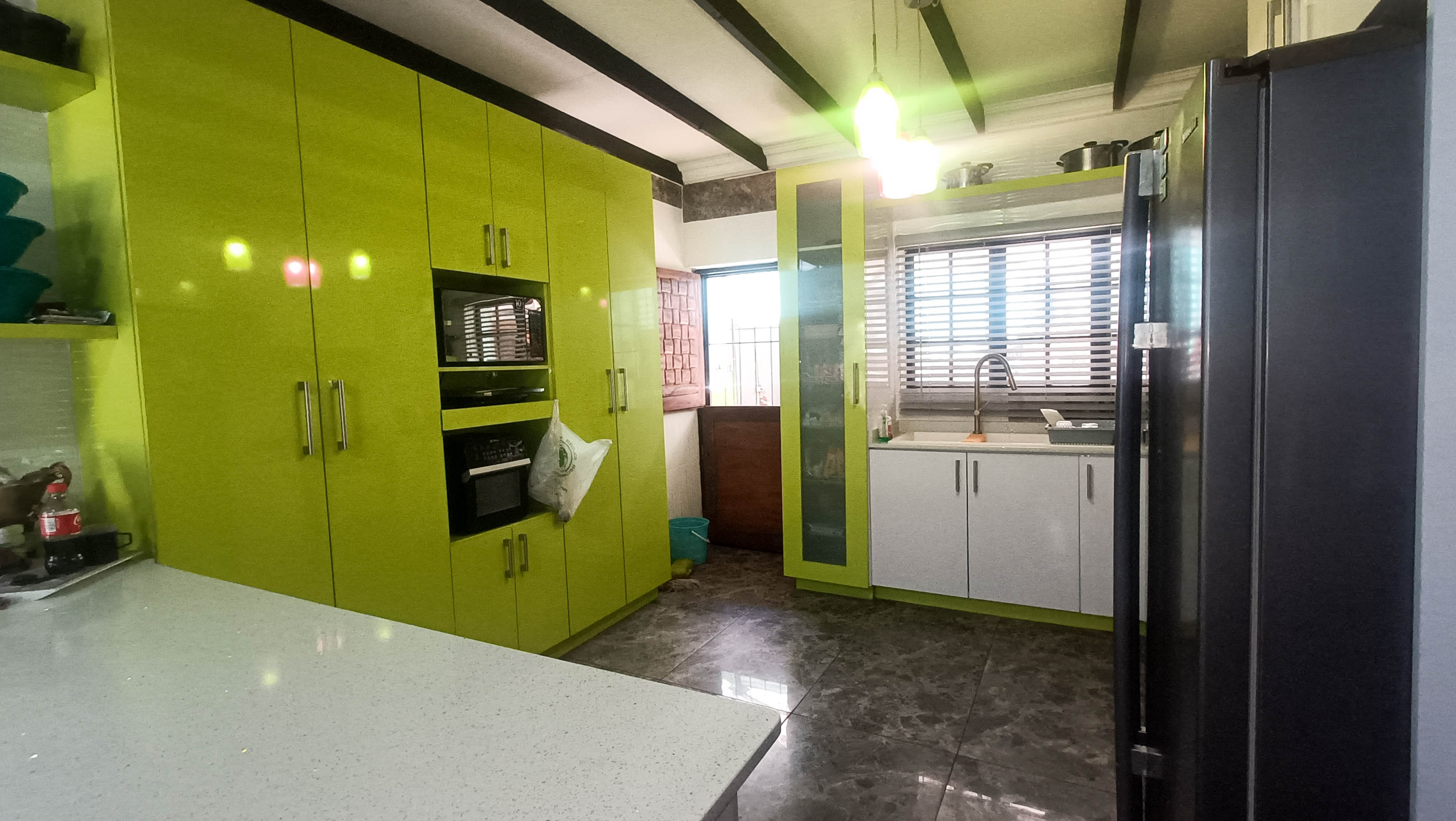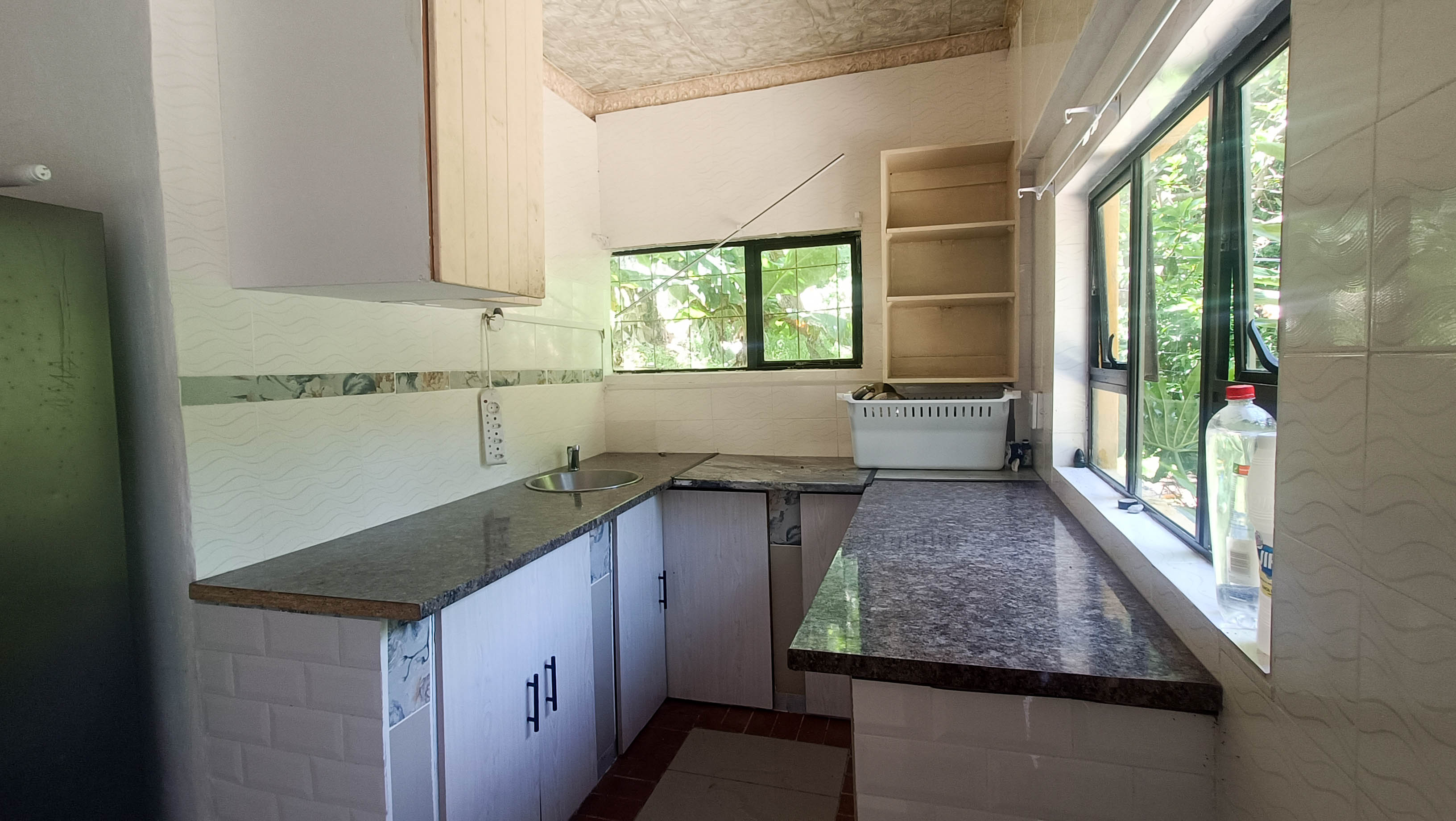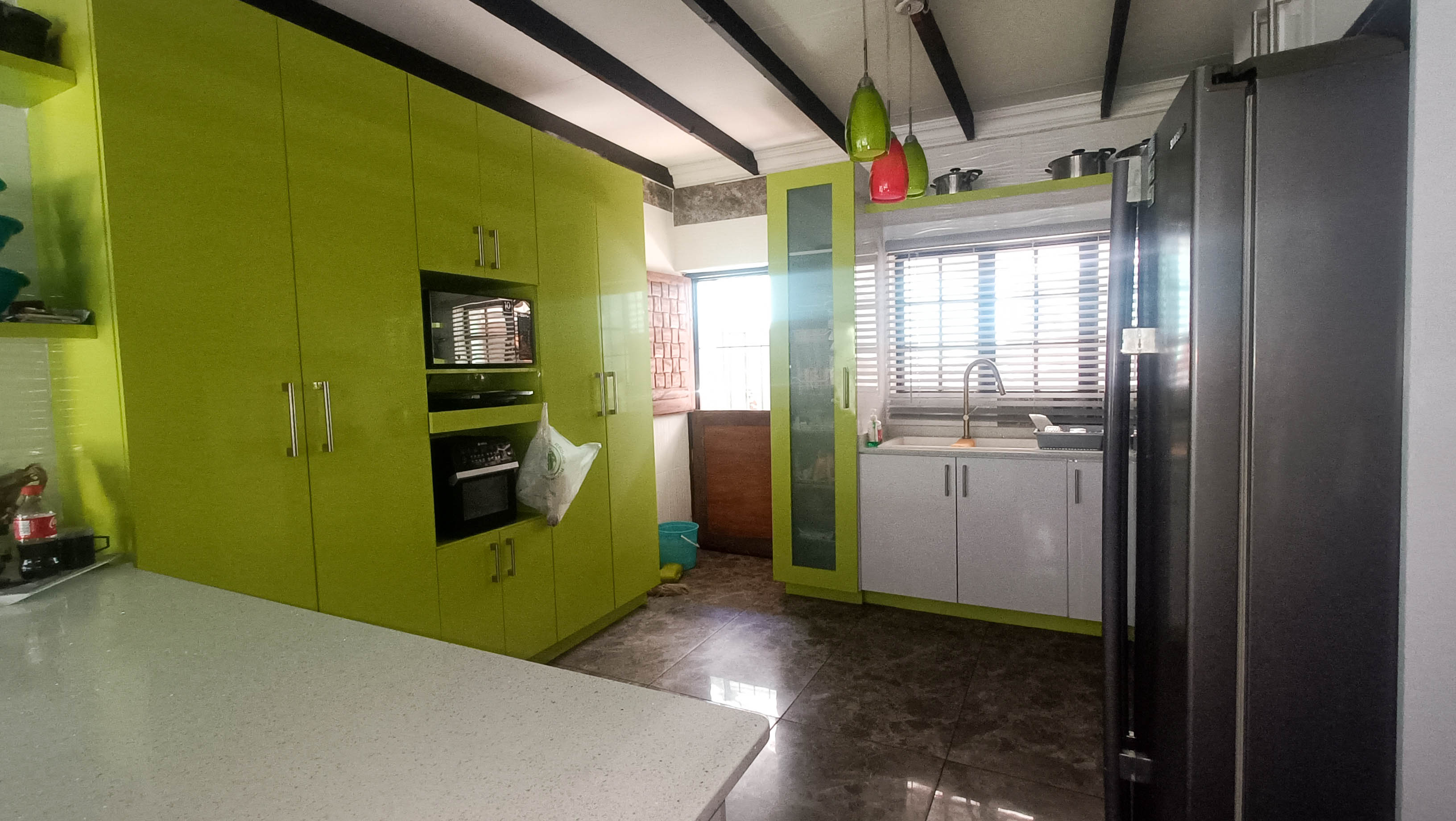 At the back of the home, you'll find a self-contained bachelor flat, which can serve as an additional bedroom for a family member or function as a separate rental unit. This flat includes a bedroom, kitchen, and ensuite bathroom and is conveniently located near the outdoor lounge and braai area.