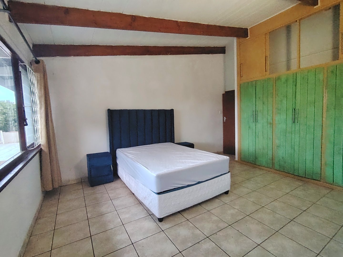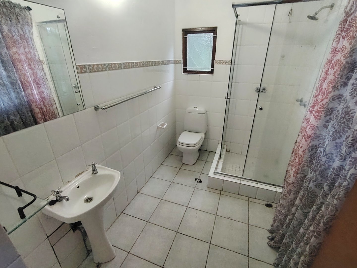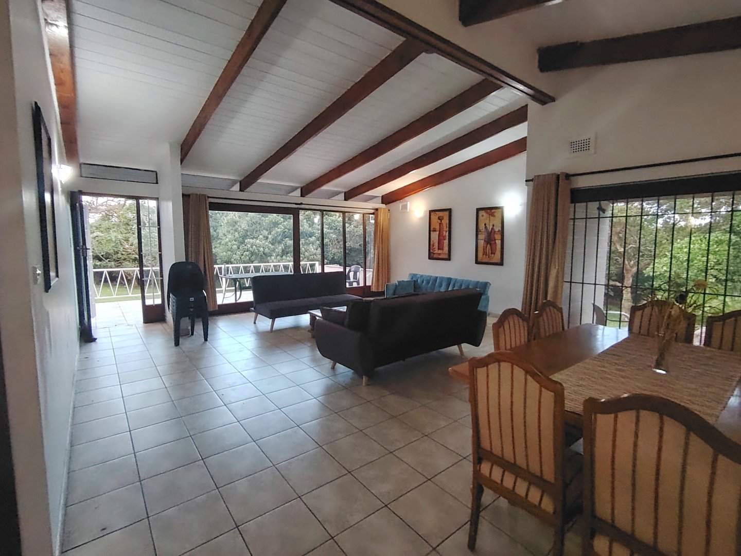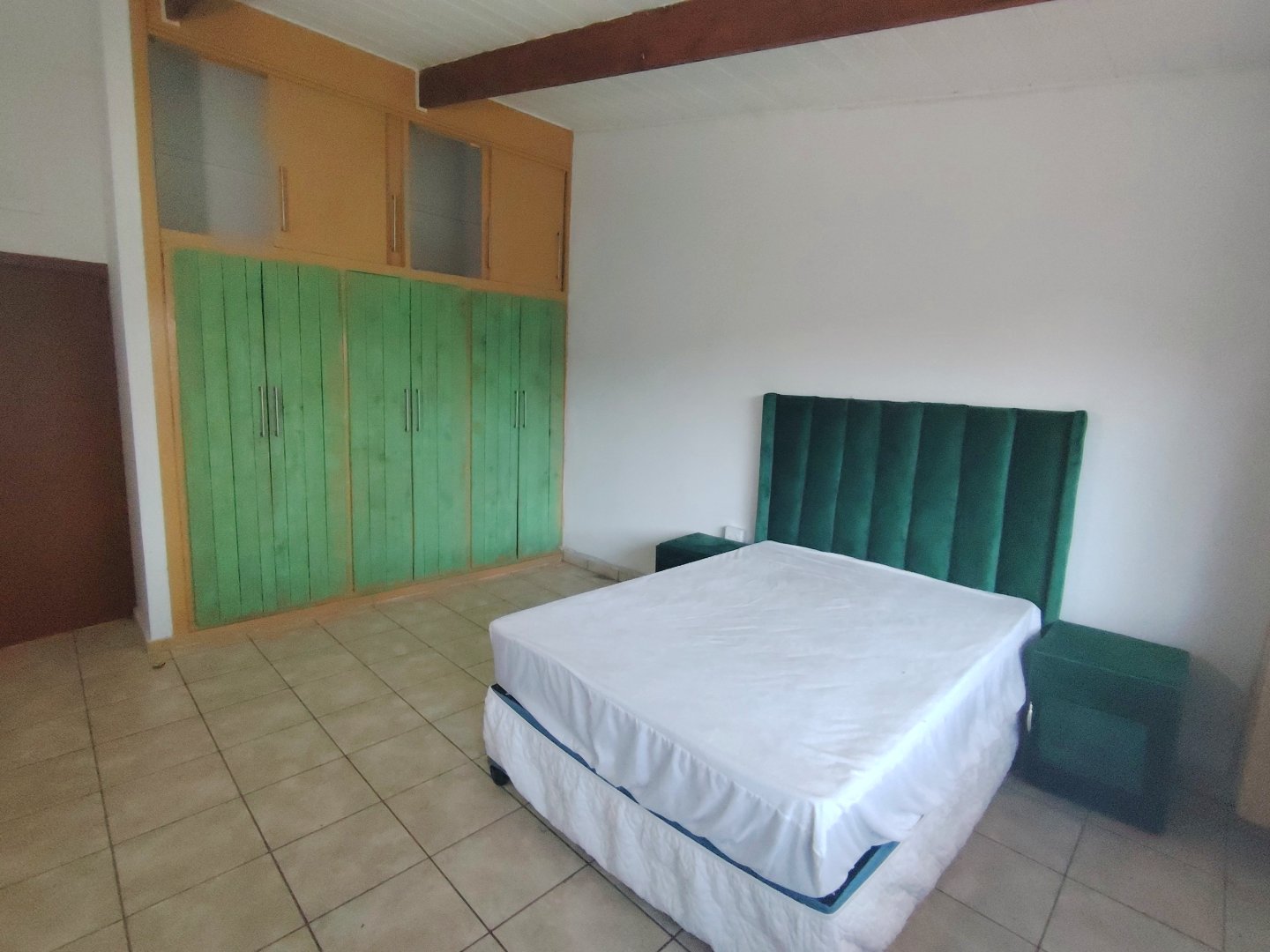 Take a walk through the property. When entering the manual gate there are ample open parking at the back of the house and next to the house. There is a massive garden in front and at the back of the home. Let's first walk up the stairs to the open patio - overlooking the green garden, with a gorgeous boma (firepit) and braai facility - that will keep your friends entertained while you braai. Moving back to the house, entering the furnished open plan lounge and dining room (separate patio at the dining room), the area is spacious and the curtains are not included in the rental. To the right is the kitchen that offers a lot of cupboard space, an electrical stove / oven with granite tops. Down the corridor - let's start at the bottom of the corridor - in the main bedroom. The main bedroom is spacious with a double bed and a yellow headboard (curtains not included), and it's own full bathroom and enough space to place extra comfortable chairs to enjoy a book and built in cupboard. The second bedroom is to the left with the blue headboard and single bed with built in cupboards and own bathroom (shower and toilet), excluding the curtains. The family bathroom (bath) to the right and a separate toilet next to that. The third bedroom is to the left with the green headboard, double bed and built in cupboards (excluding curtains). This property is spacious and will have space for the whole family. The outside flat consists of a lounge, kitchen, one bedroom, patio, shower and separate toilet. The property is not that far from the beach. There is a Jojo tank and a pump. Prepaid electricity, excluding water and the garden service. OPTION 2: Procurement Lease for the amount of R15 500 per month - prepaid electricity, excluding water and garden service.