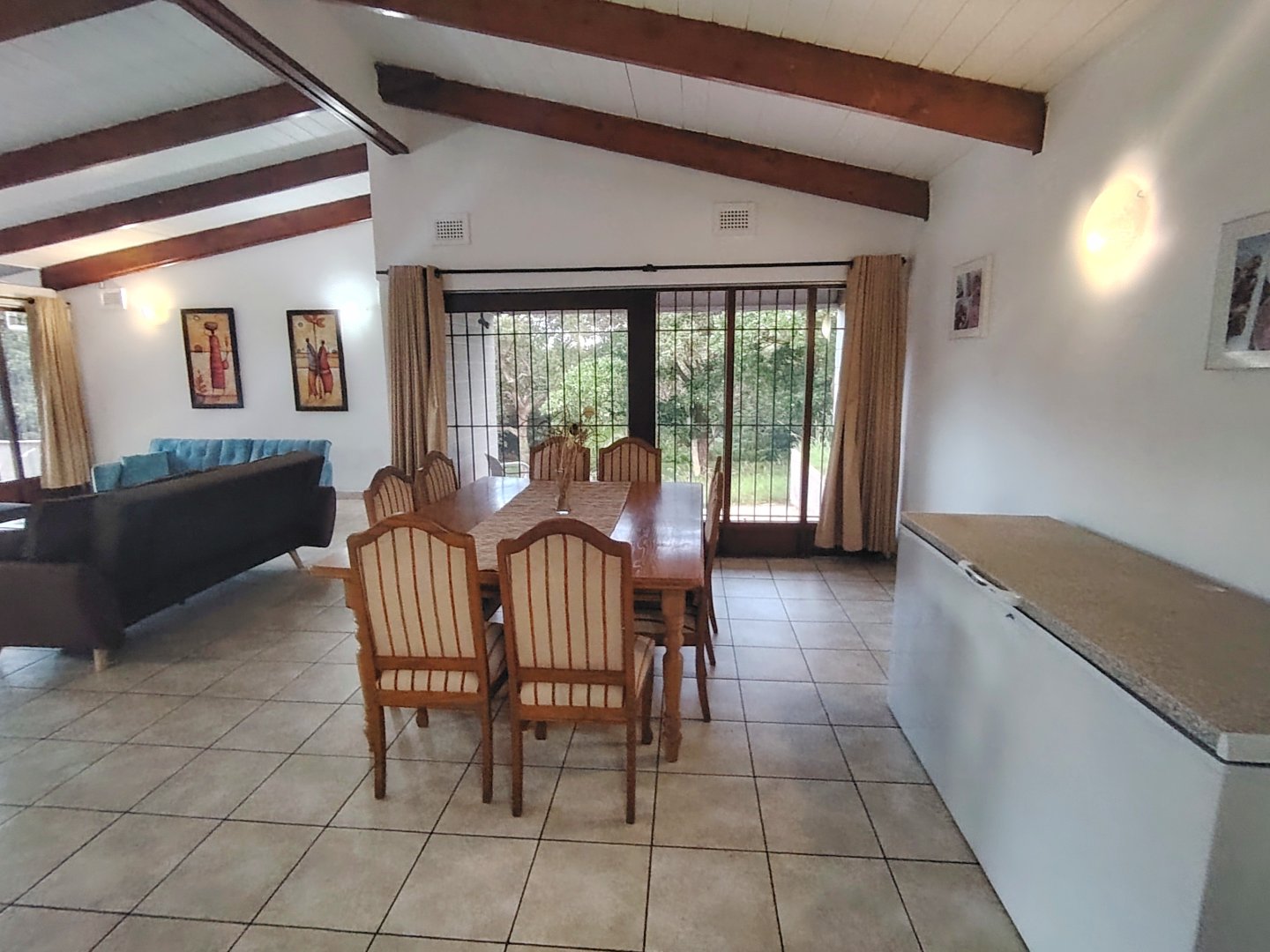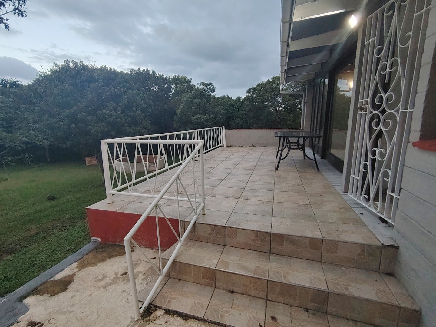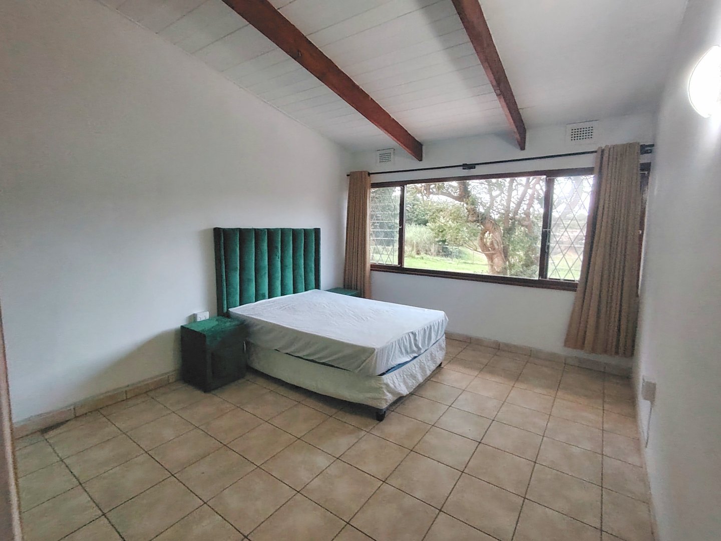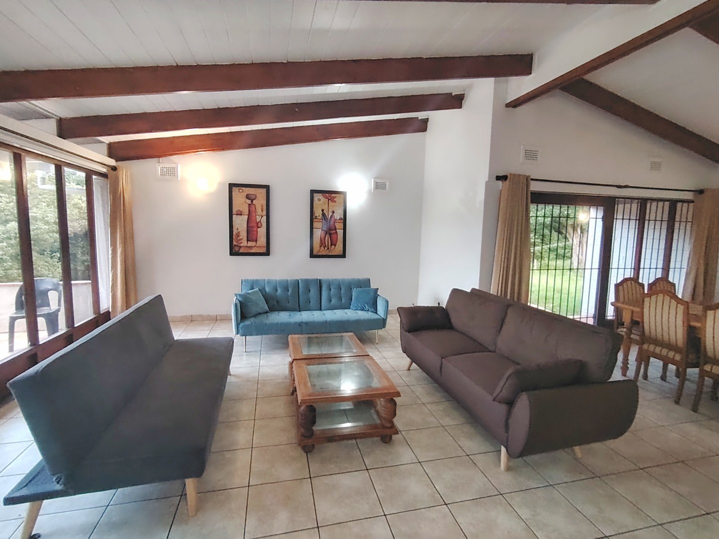 Take a walk through the property. When entering the manual gate there are ample open parking at the back of the house and next to the house. There is a massive garden in front and at the back of the home. Let's first walk up the stairs to the open patio - overlooking the green garden, with a gorgeous boma (firepit) and braai facility - that will keep your friends entertained while you braai. Moving back to the house, entering the furnished open plan lounge and dining room (separate patio at the dining room), the area is spacious and the curtains are not included in the rental. To the right is the kitchen that offers a lot of cupboard space, an electrical stove / oven with granite tops. Down the corridor - let's start at the bottom of the corridor - in the main bedroom. The main bedroom is spacious with a double bed and a yellow headboard (curtains not included), and it's own full bathroom and enough space to place extra comfortable chairs to enjoy a book and built in cupboard. The second bedroom is to the left with the blue headboard and single bed with built in cupboards and own bathroom (shower and toilet), excluding the curtains. The family bathroom (bath) to the right and a separate toilet next to that. The third bedroom is to the left with the green headboard, double bed and built in cupboards (excluding curtains). This property is spacious and will have space for the whole family. The outside flat consists of a lounge, kitchen, one bedroom, patio, shower and separate toilet. The property is not that far from the beach. There is a Jojo tank and a pump. Prepaid electricity, excluding water and the garden service. OPTION 2: Procurement Lease for the amount of R15 500 per month - prepaid electricity, excluding water and garden service.
