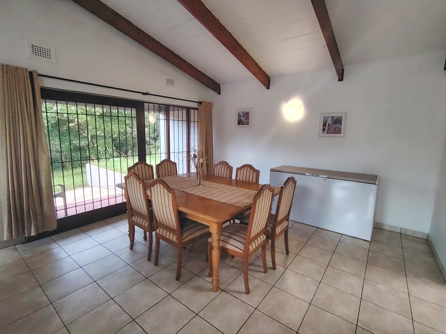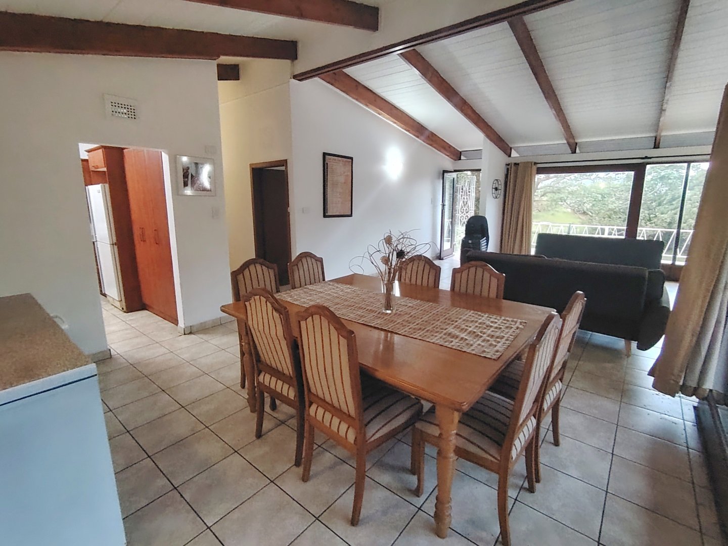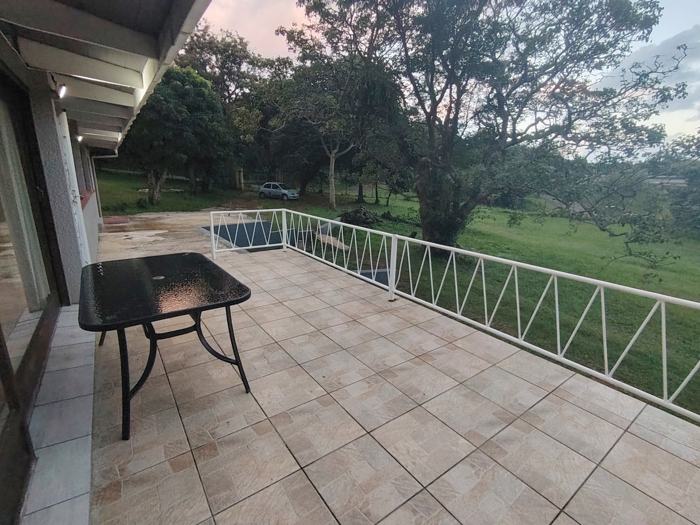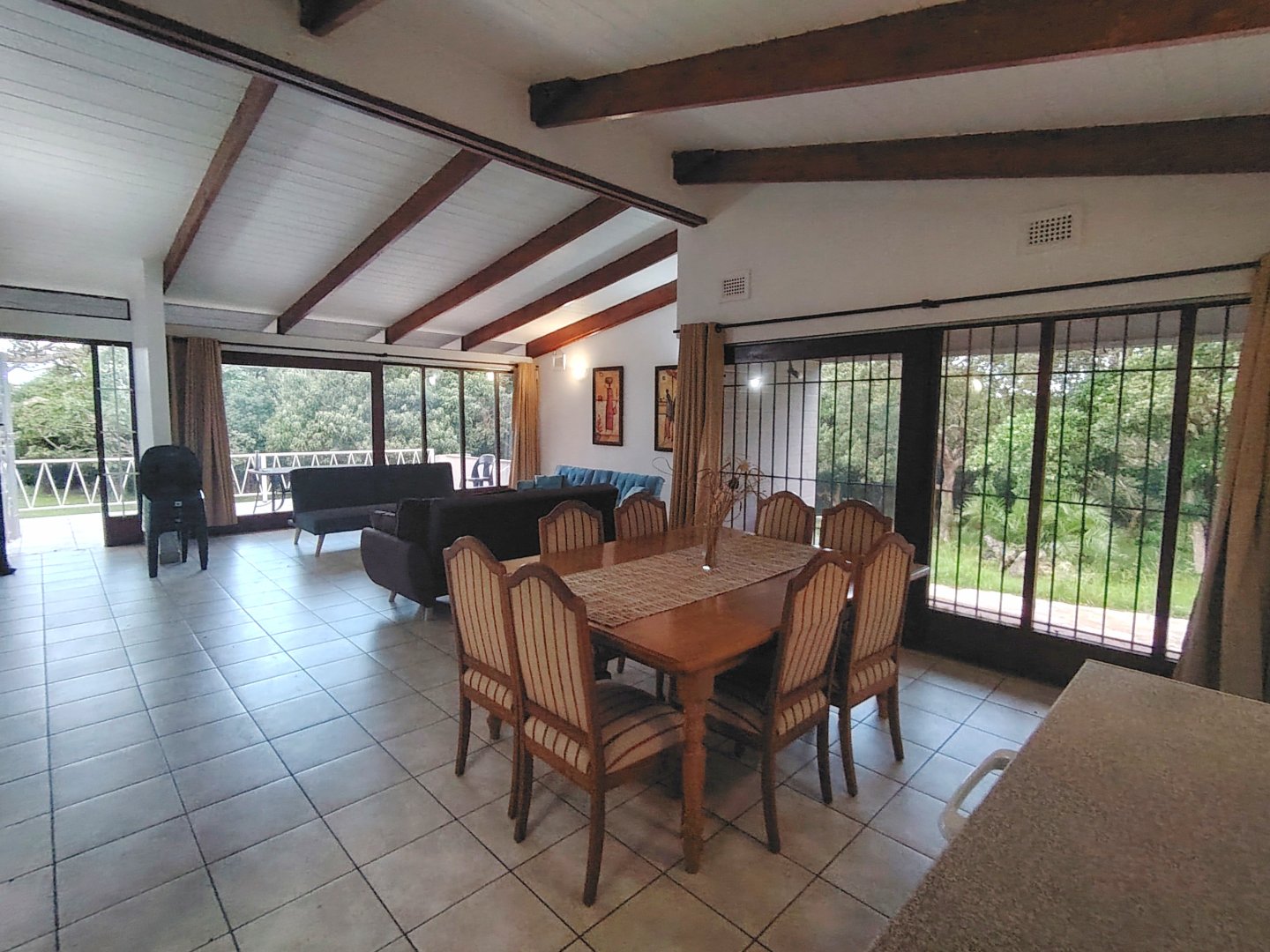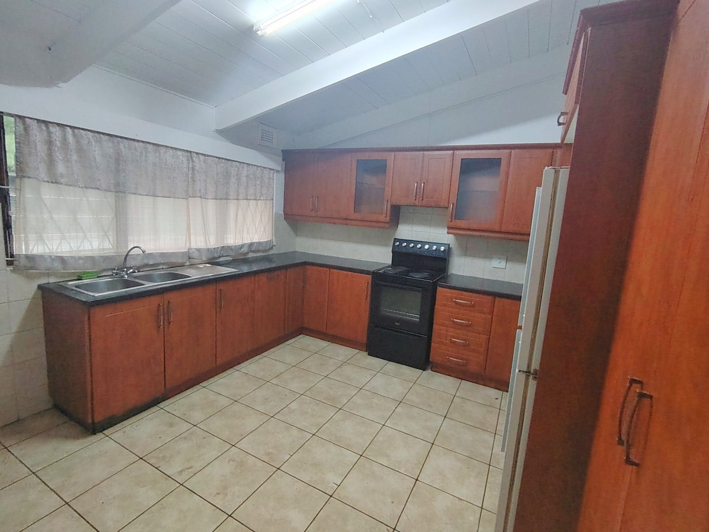 Take a walk through the property. When entering the manual gate there are ample open parking at the back of the house and next to the house. There is a massive garden in front and at the back of the home. Let's first walk up the stairs to the open patio - overlooking the green garden, with a gorgeous boma (firepit) and braai facility - that will keep your friends entertained while you braai. Moving back to the house, entering the furnished open plan lounge and dining room (separate patio at the dining room), the area is spacious and the curtains are not included in the rental. To the right is the kitchen that offers a lot of cupboard space, an electrical stove / oven with granite tops. Down the corridor - let's start at the bottom of the corridor - in the main bedroom. The main bedroom is spacious with a double bed and a yellow headboard (curtains not included), and it's own full bathroom and enough space to place extra comfortable chairs to enjoy a book and built in cupboard. The second bedroom is to the left with the blue headboard and single bed with built in cupboards and own bathroom (shower and toilet), excluding the curtains. The family bathroom (bath) to the right and a separate toilet next to that. The third bedroom is to the left with the green headboard, double bed and built in cupboards (excluding curtains). This property is spacious and will have space for the whole family. The outside flat consists of a lounge, kitchen, one bedroom, patio, shower and separate toilet. The property is not that far from the beach. There is a Jojo tank and a pump. Prepaid electricity, excluding water and the garden service. OPTION 2: Procurement Lease for the amount of R15 500 per month - prepaid electricity, excluding water and garden service.