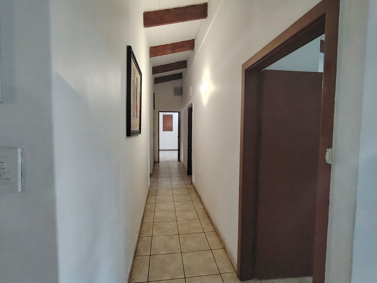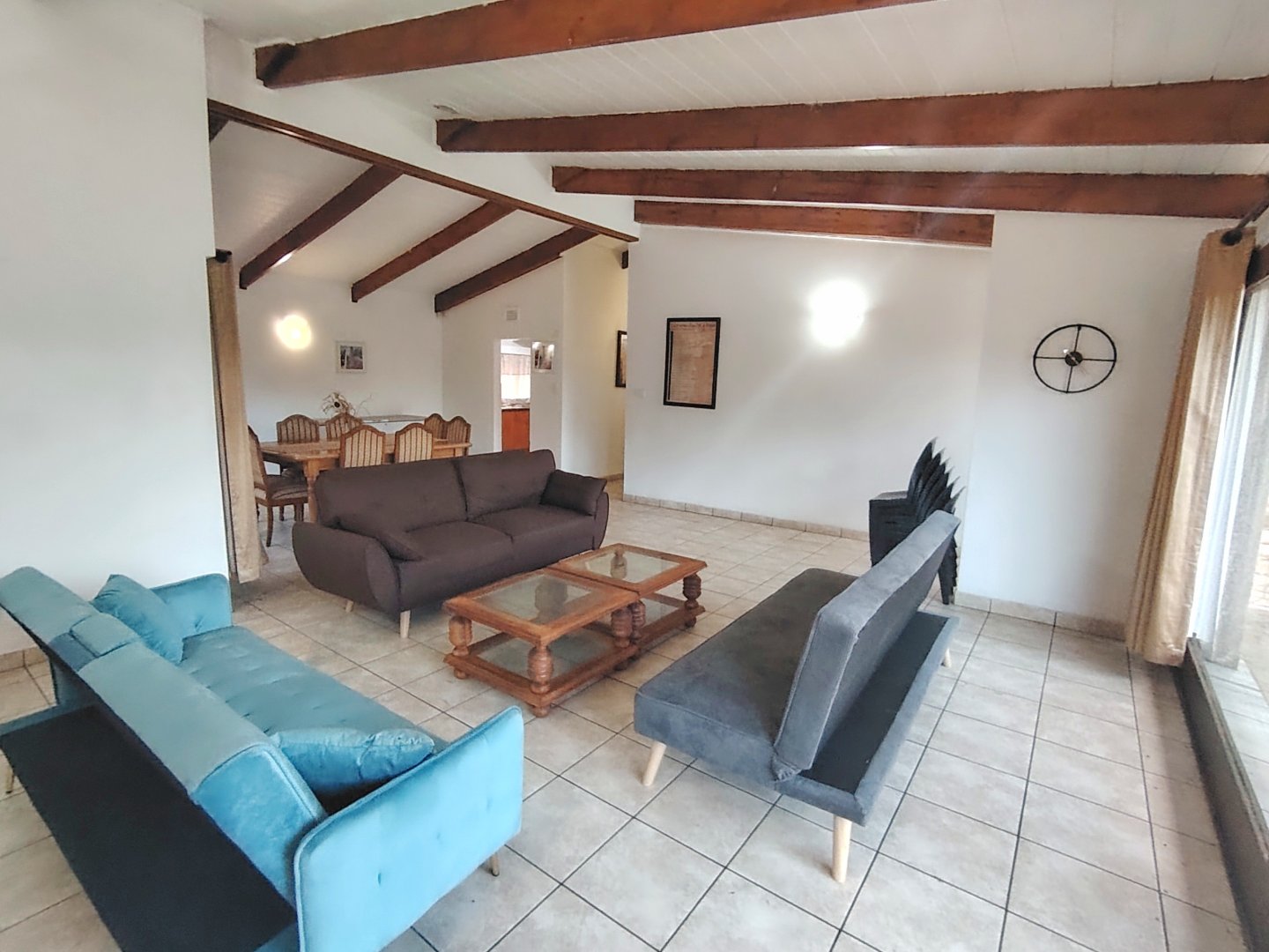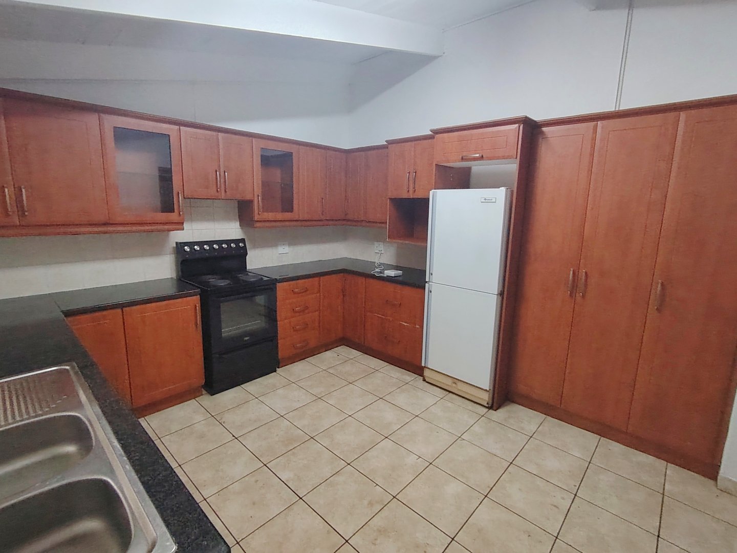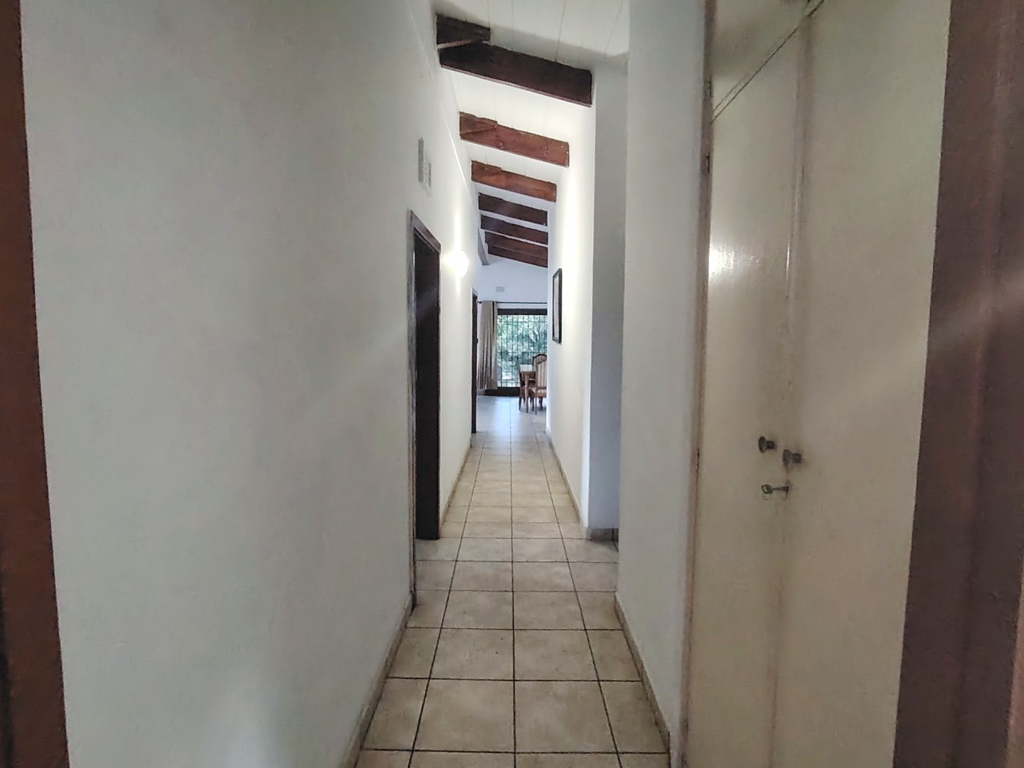 Take a walk through the property. When entering the manual gate there are ample open parking at the back of the house and next to the house. There is a massive garden in front and at the back of the home. Let's first walk up the stairs to the open patio - overlooking the green garden, with a gorgeous boma (firepit) and braai facility - that will keep your friends entertained while you braai. Moving back to the house, entering the furnished open plan lounge and dining room (separate patio at the dining room), the area is spacious and the curtains are not included in the rental. To the right is the kitchen that offers a lot of cupboard space, an electrical stove / oven with granite tops. Down the corridor - let's start at the bottom of the corridor - in the main bedroom. The main bedroom is spacious with a double bed and a yellow headboard (curtains not included), and it's own full bathroom and enough space to place extra comfortable chairs to enjoy a book and built in cupboard. The second bedroom is to the left with the blue headboard and single bed with built in cupboards and own bathroom (shower and toilet), excluding the curtains. The family bathroom (bath) to the right and a separate toilet next to that. The third bedroom is to the left with the green headboard, double bed and built in cupboards (excluding curtains). This property is spacious and will have space for the whole family. The outside flat consists of a lounge, kitchen, one bedroom, patio, shower and separate toilet. The property is not that far from the beach. There is a Jojo tank and a pump. Prepaid electricity, excluding water and the garden service. OPTION 2: Procurement Lease for the amount of R15 500 per month - prepaid electricity, excluding water and garden service.