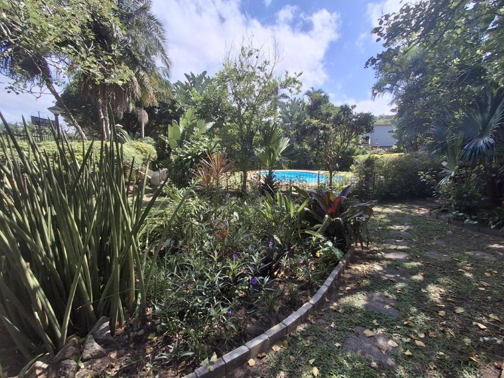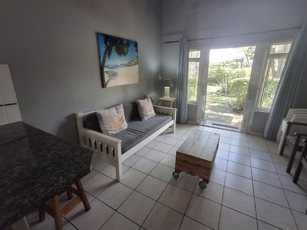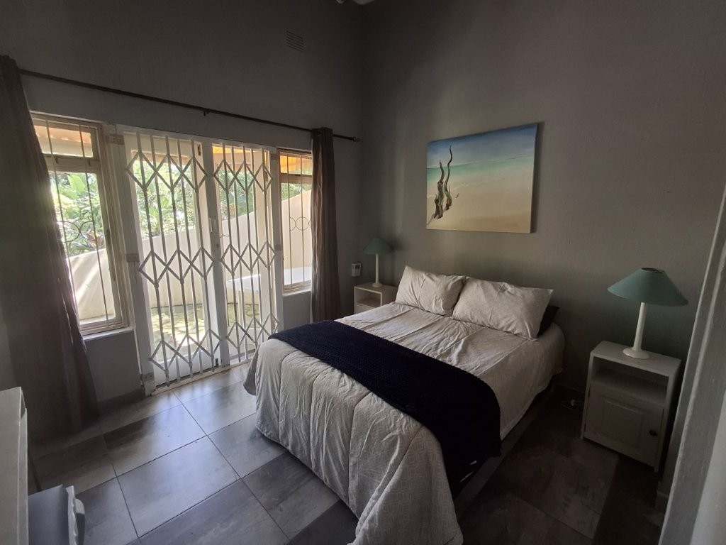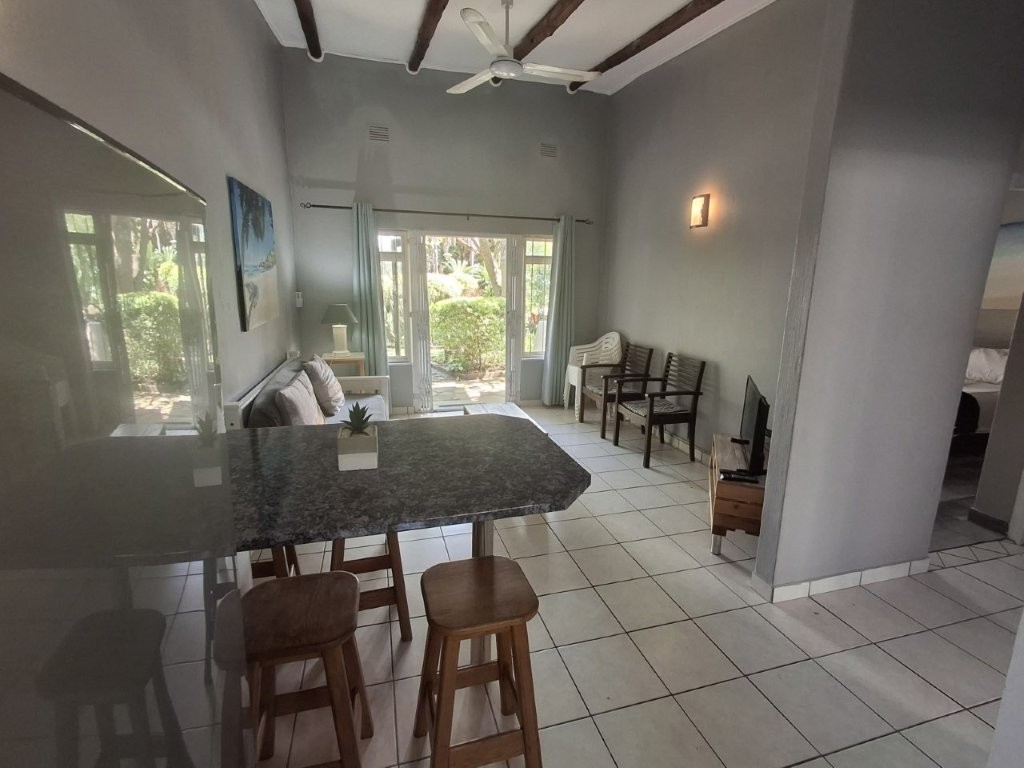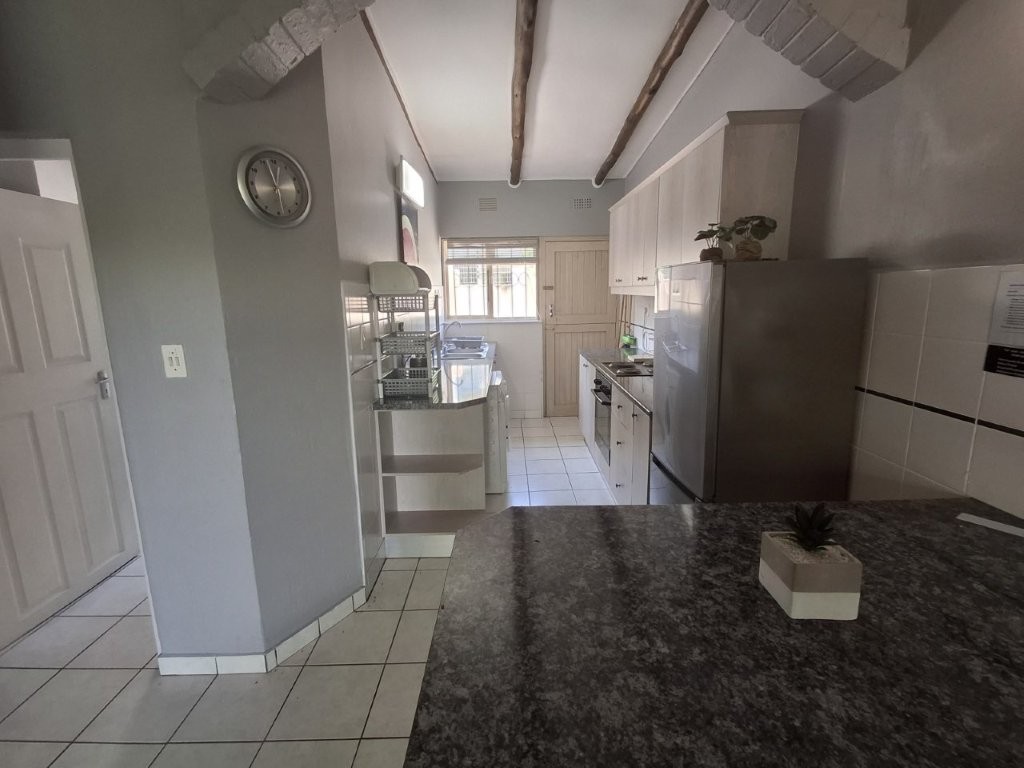The home has a nice bright open plan living area with French doors to an enclosed patio area overlooking the beautiful crystal blue pool, the patio area being sheltered and partially covered is perfect for braaiing/barbecue or simply sipping your evening cocktails after a long day at the beach. The kitchen is also open plan with lots of cupboards and granite work surfaces, a separate door leading to a convenient enclosed courtyard makes for easy entertaining.