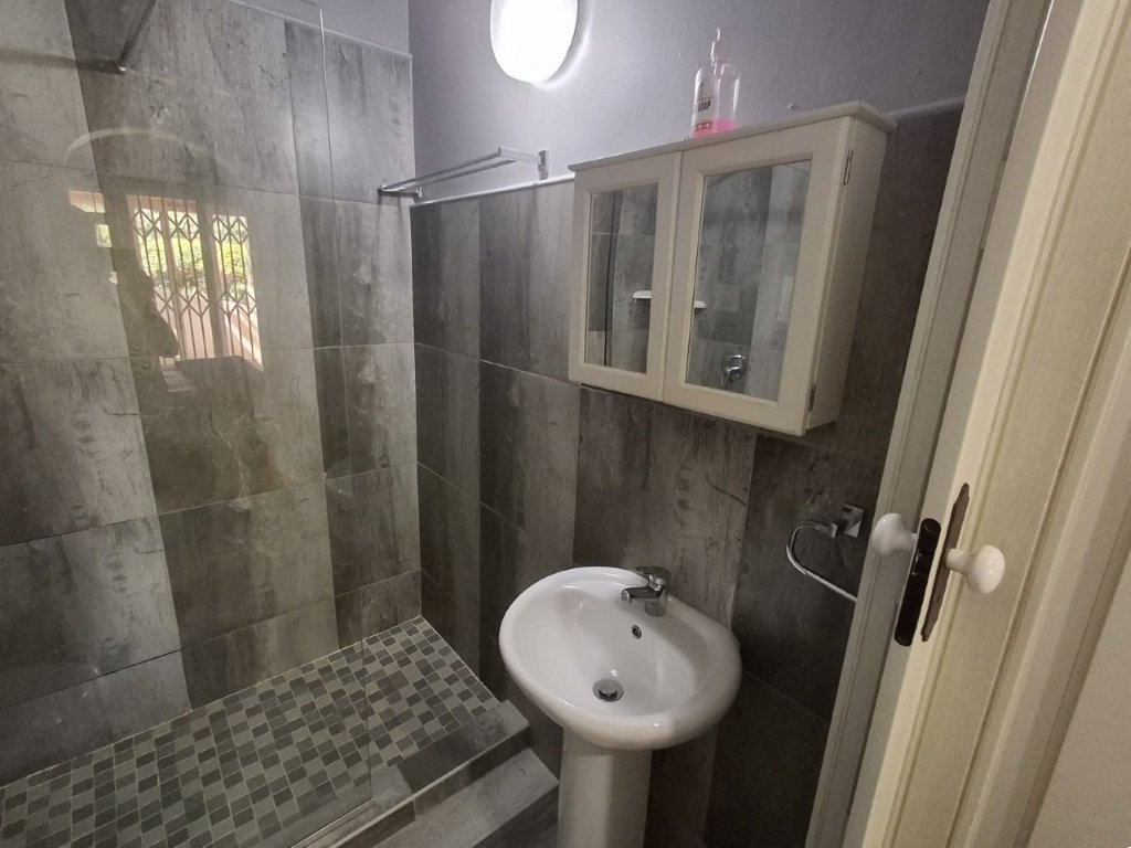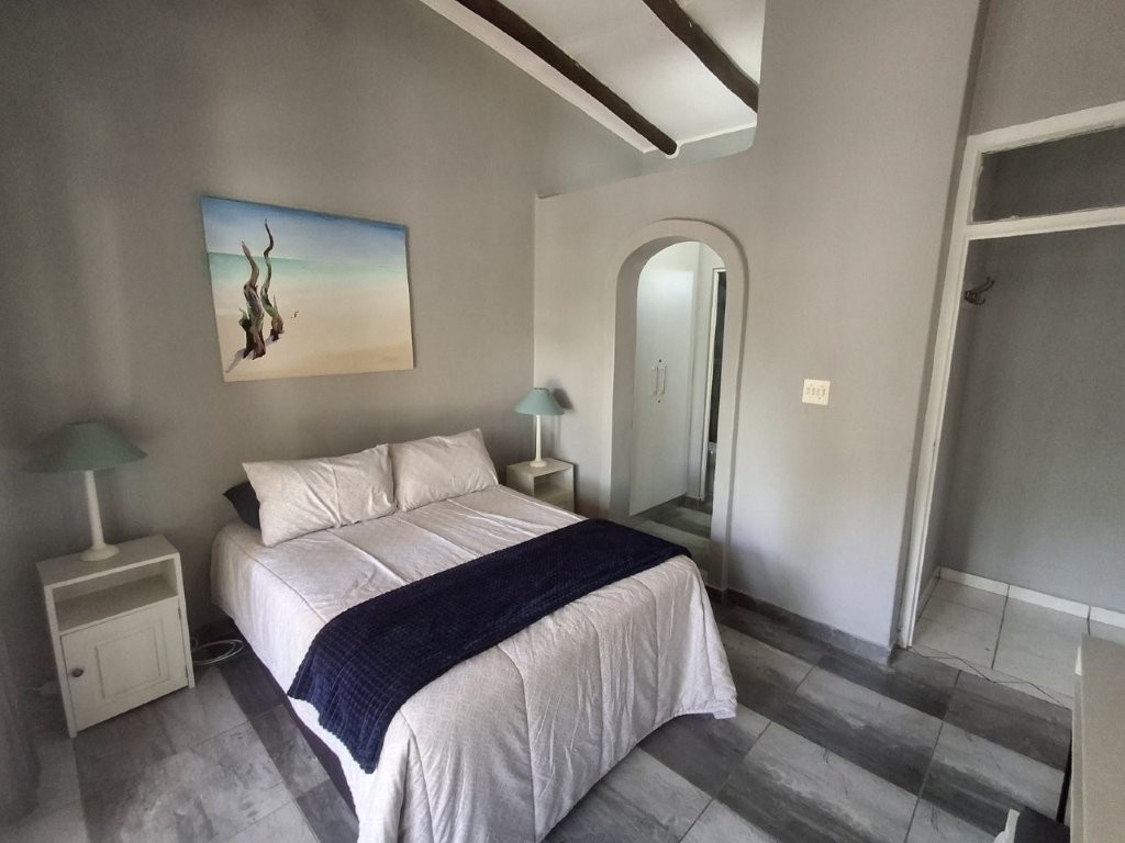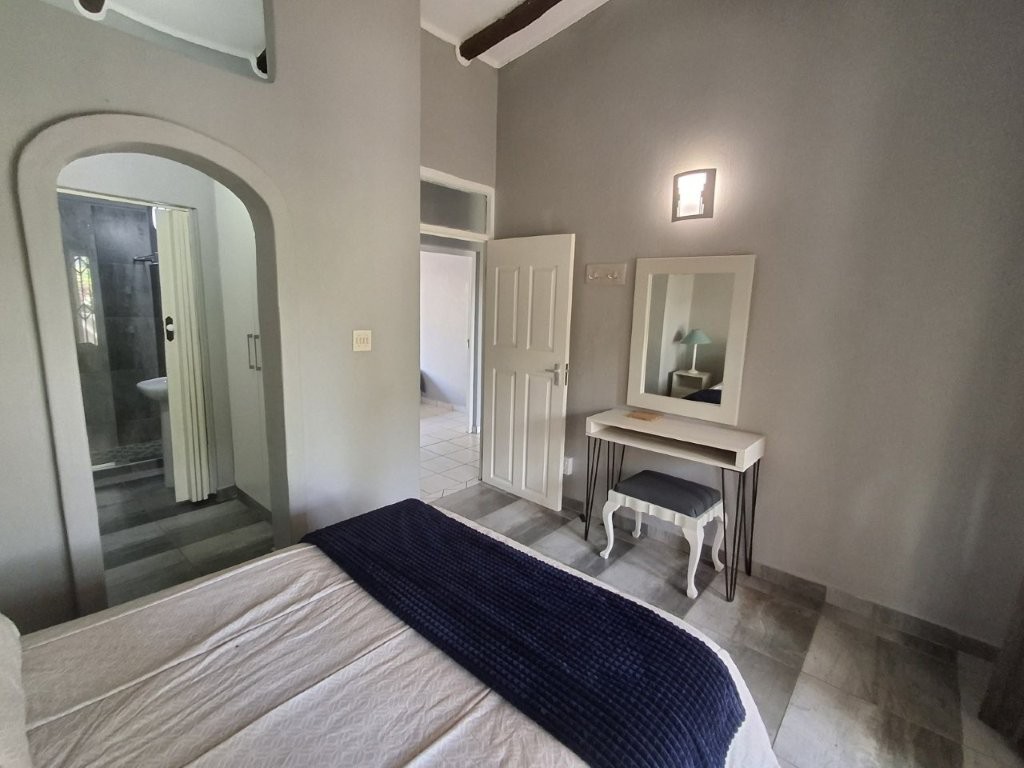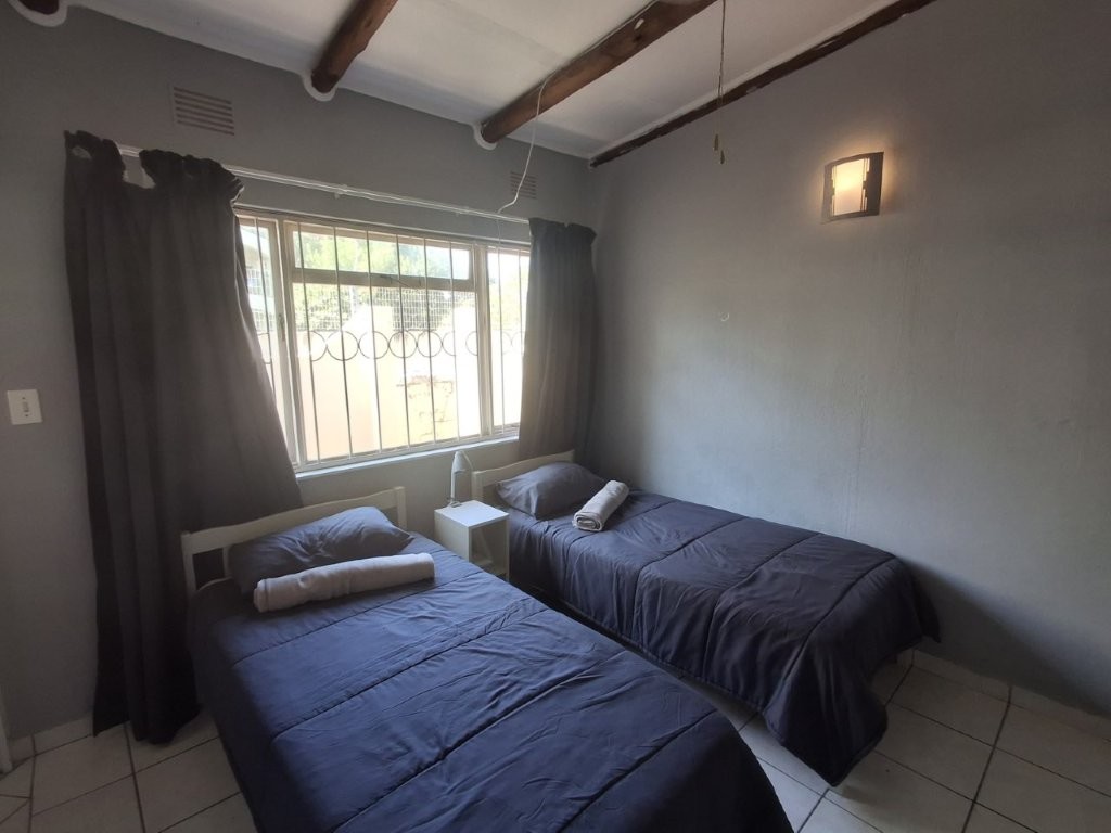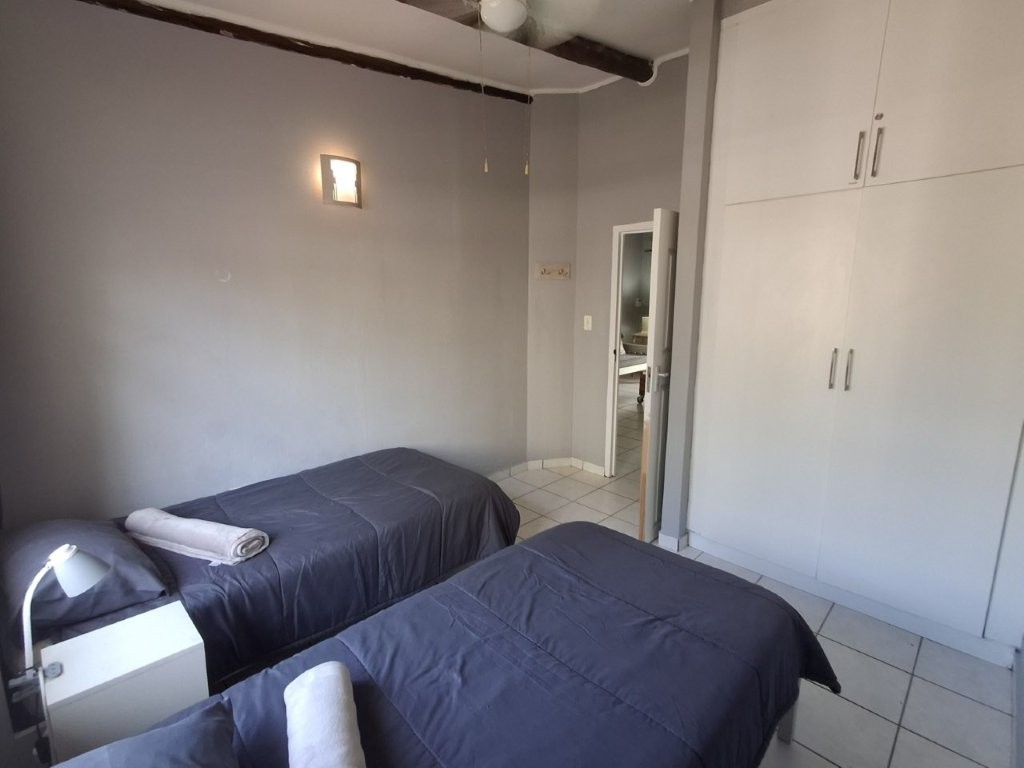 The home has a nice bright open plan living area with French doors to an enclosed patio area overlooking the beautiful crystal blue pool, the patio area being sheltered and partially covered is perfect for braaiing/barbecue or simply sipping your evening cocktails after a long day at the beach. The kitchen is also open plan with lots of cupboards and granite work surfaces, a separate door leading to a convenient enclosed courtyard makes for easy entertaining.