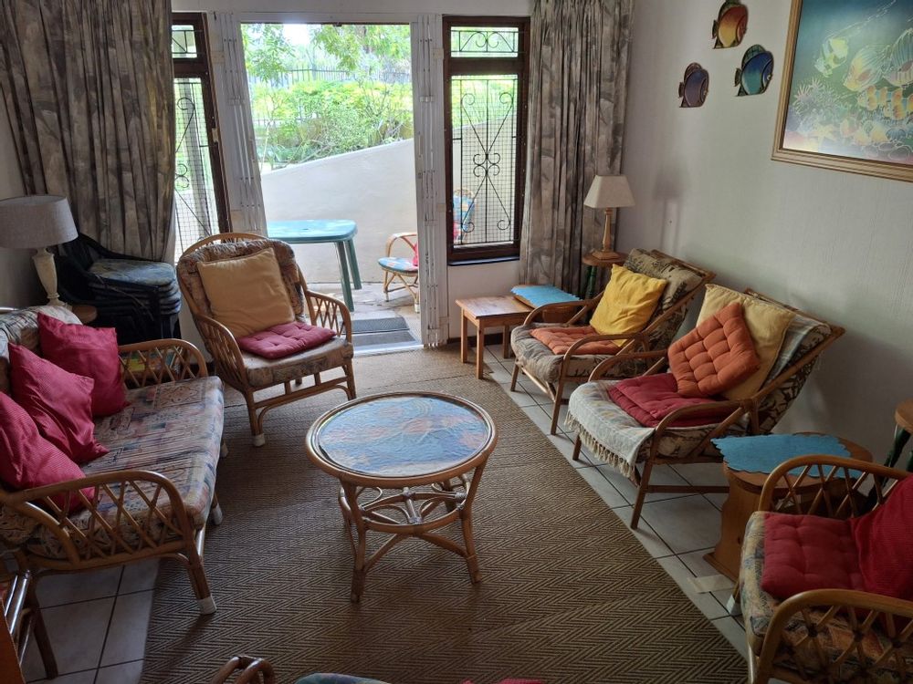 This lovely unit with its high beamed ceilings gives a bright and airy openness with a special feeling of tranquillity. The open plan layout consists of cosy living areas leading out through French doors, to a partially covered patio area and beautiful tropical surrounds, ideal space to relax or to entertain friends. The open plan kitchen area, with ample cabinetry and sleek white work surfaces, leads out to a rear courtyard, offering another private space to do as you wish.