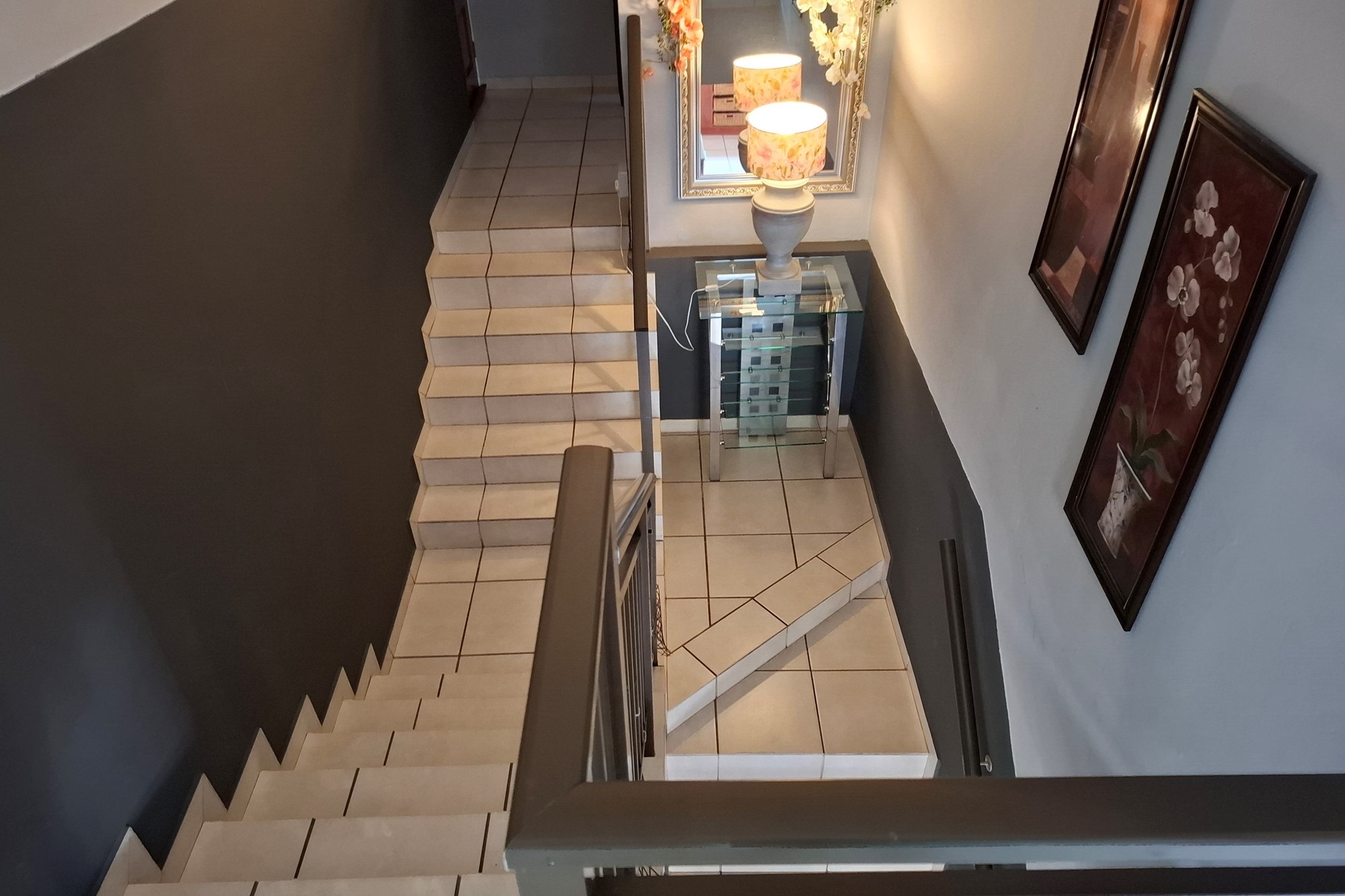 The townhouse impresses immediately with its sleek glass siding doors, providing both stunning aesthetics and natural light. The property features a spacious newly renovated kitchen with an additional scullery with a downstairs toilet convenience. Homeowners will appreciate the luxurious en-suite bathrooms, complete with enclosed showers and upgraded modern amenities. Each bedroom is appointed with built-in closets, ensuring ample storage.