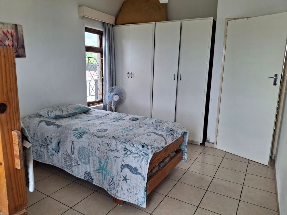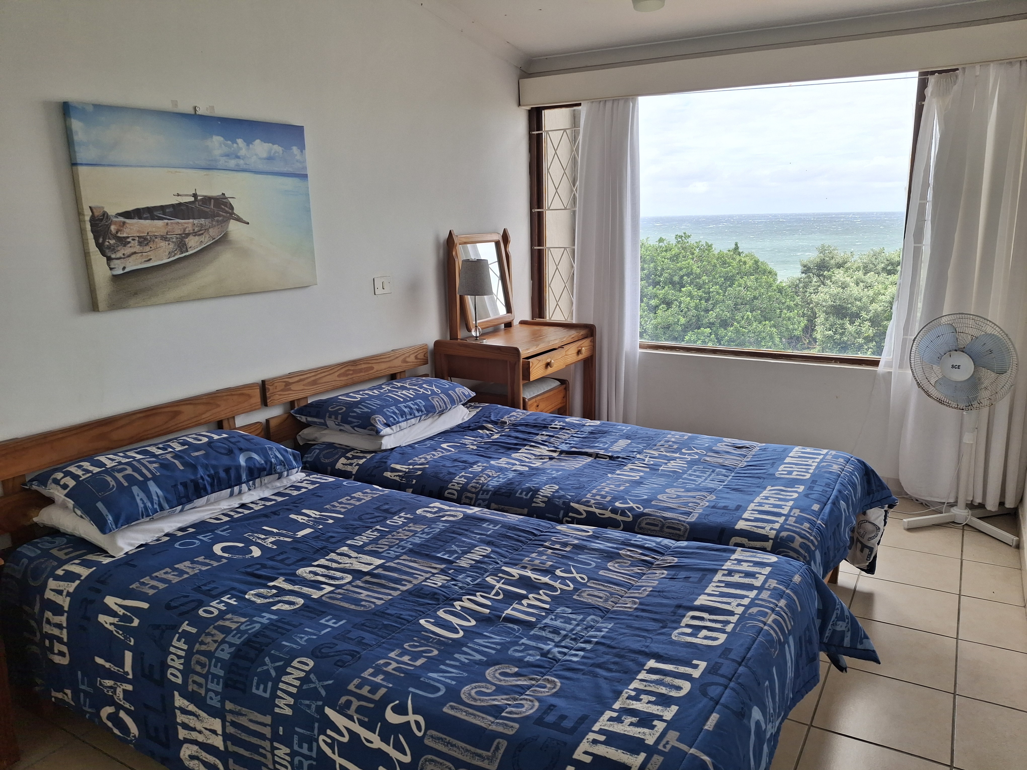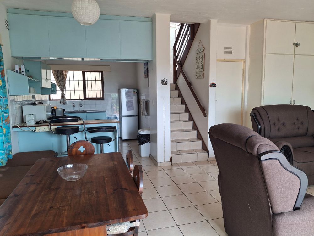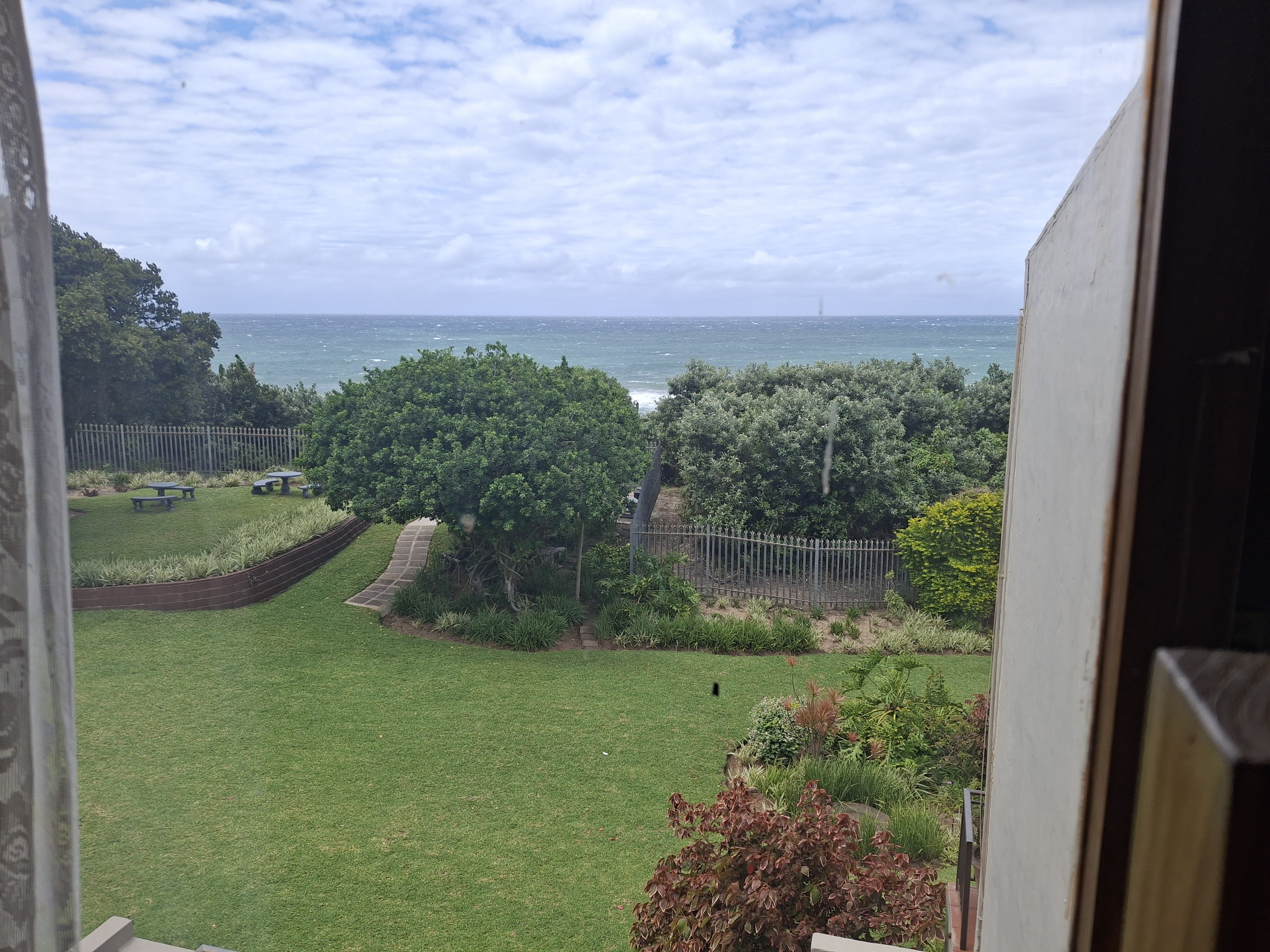 The open-plan kitchen, dining, and lounge area flow seamlessly onto a patio overlooking lush communal gardens, while the communal braai area boasts stunning sea views and direct access to the beach.