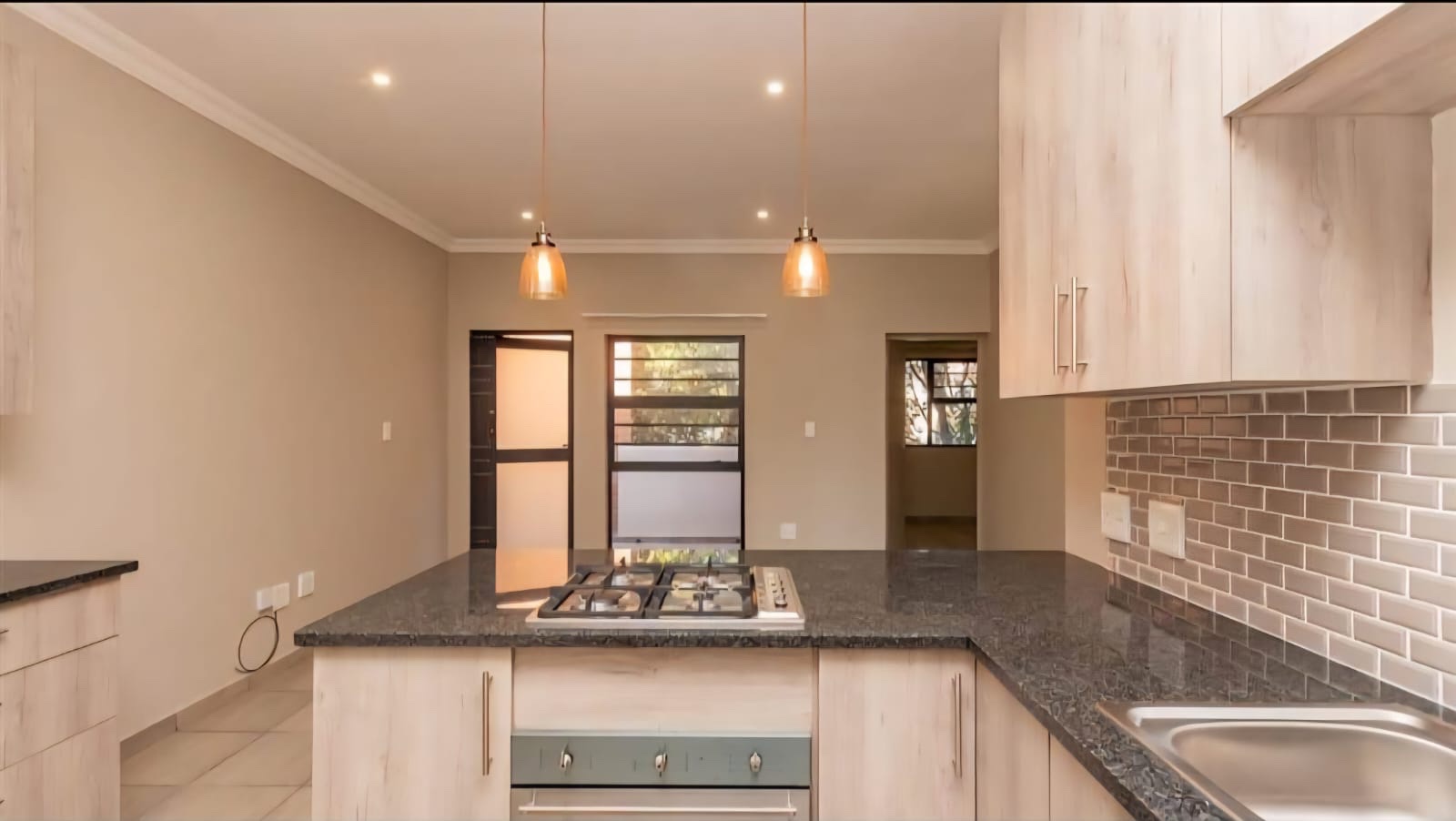- Modern kitchen equipped with a gas stove and hob for culinary delights