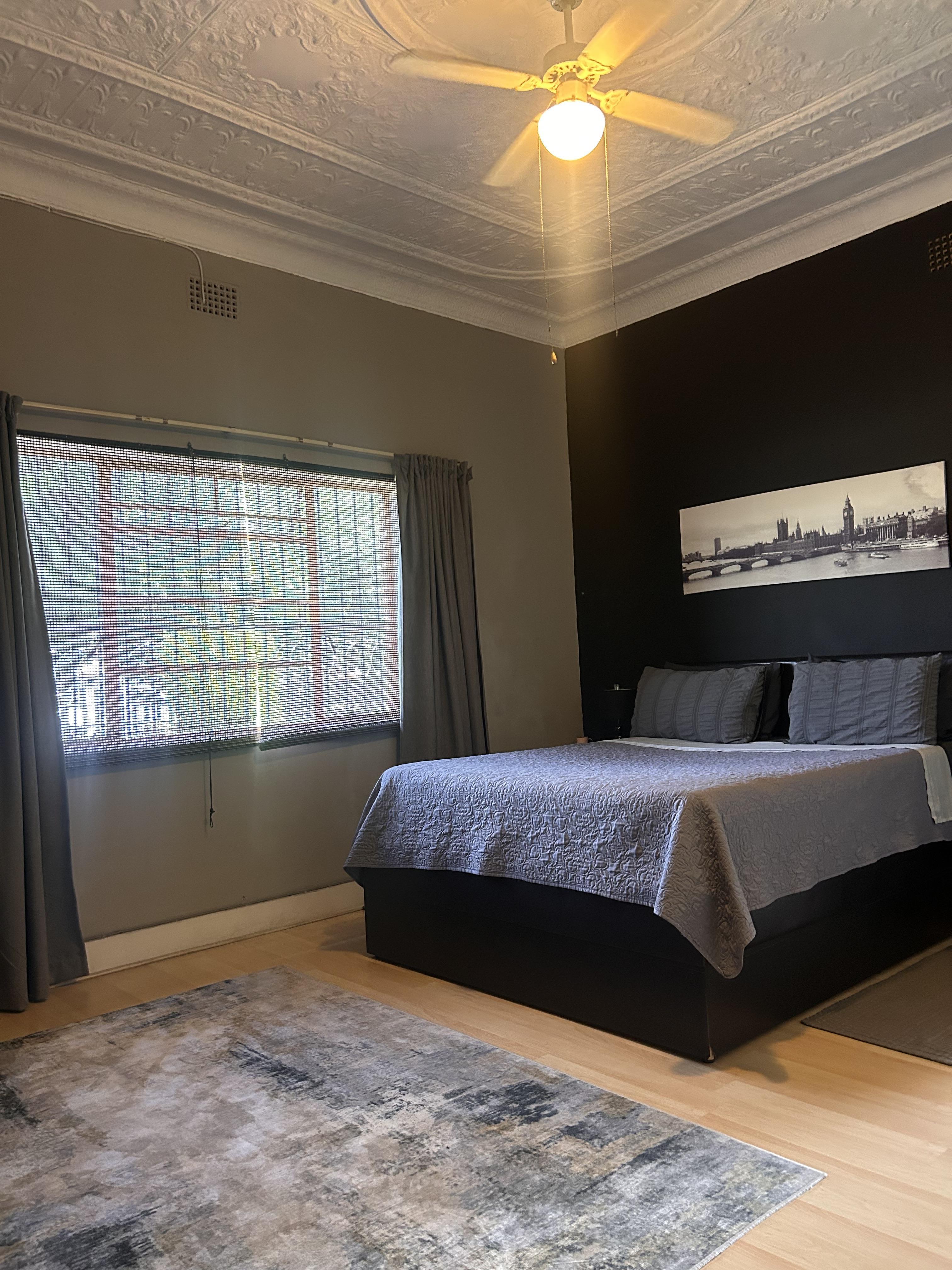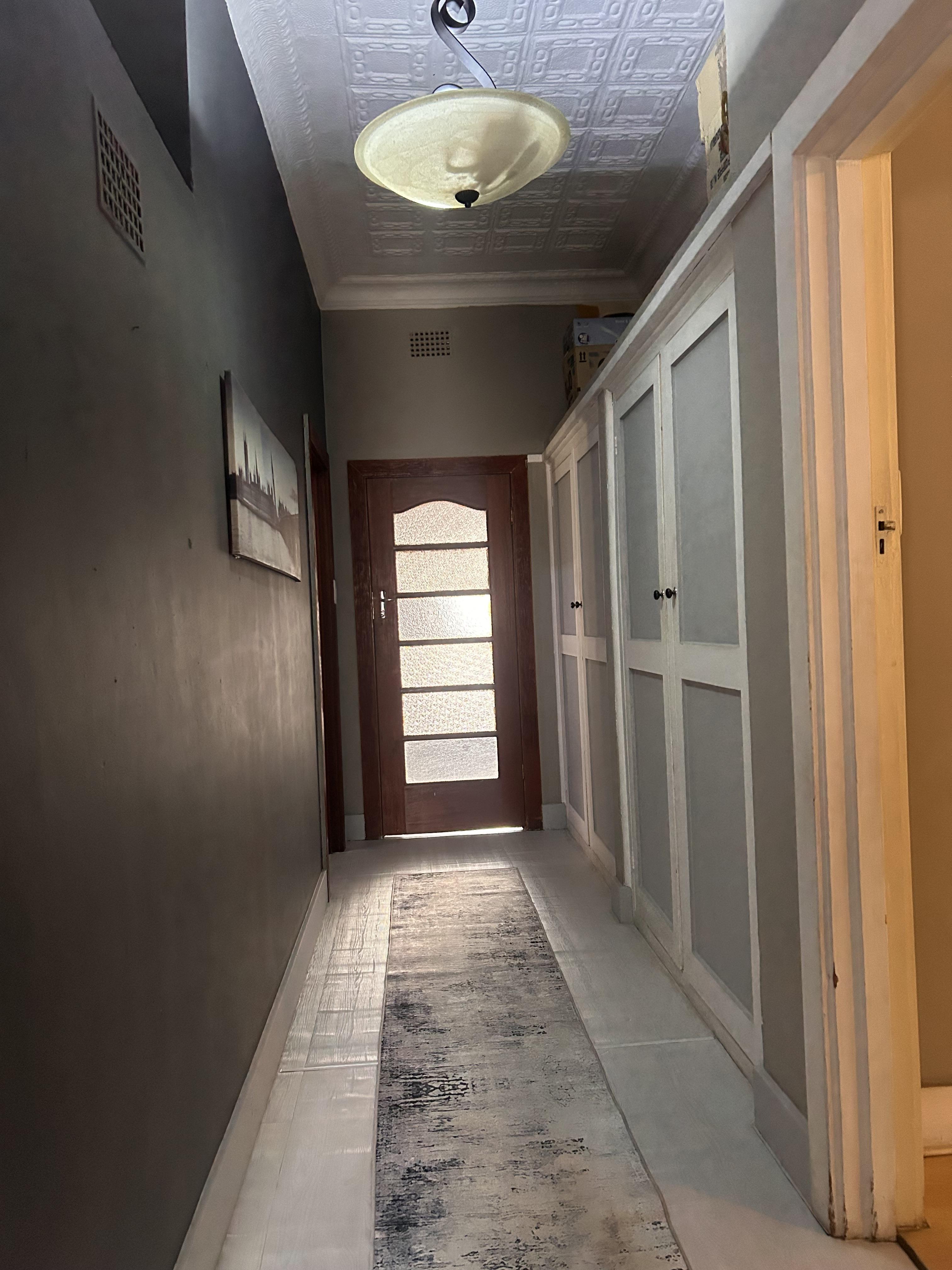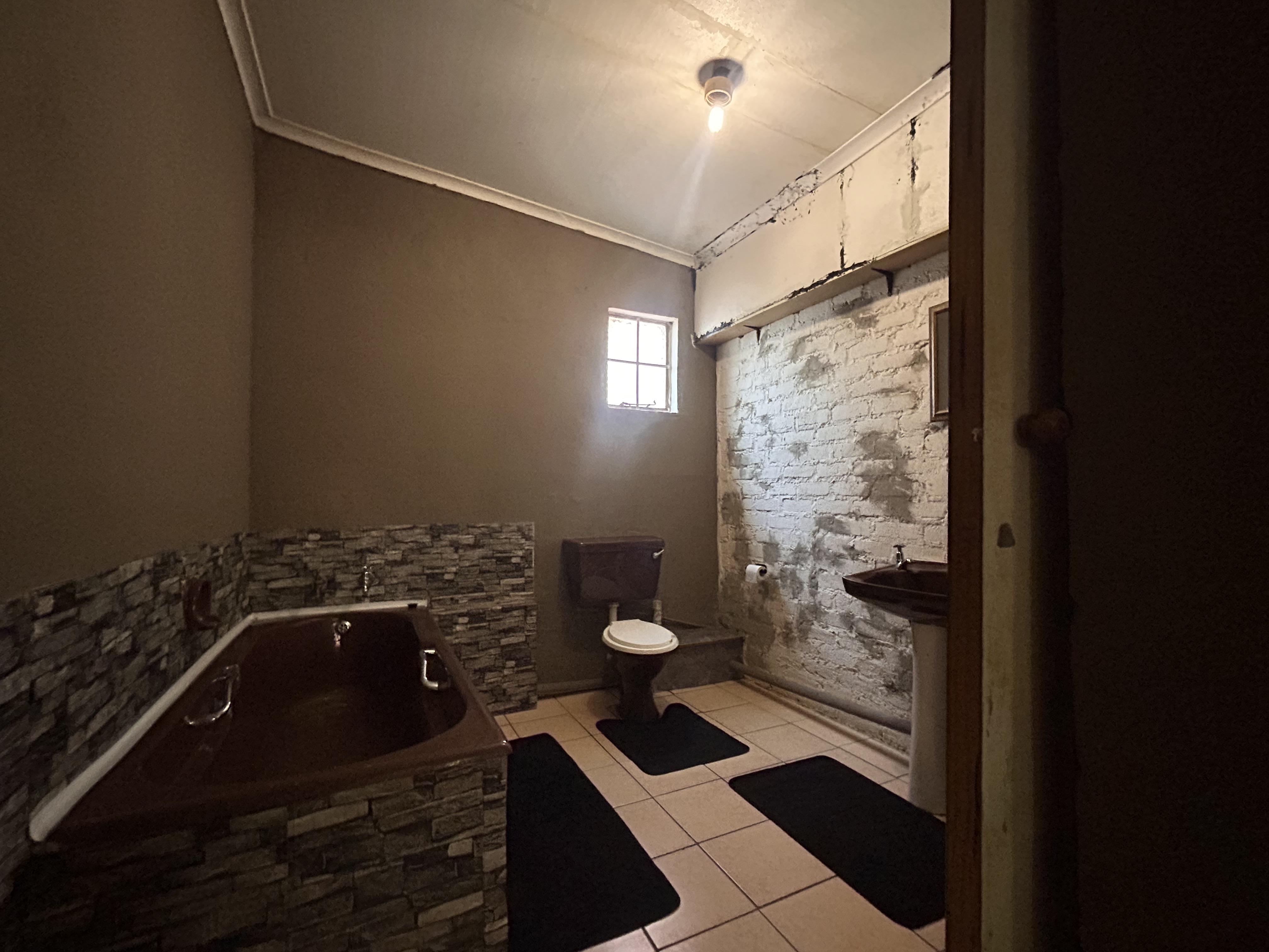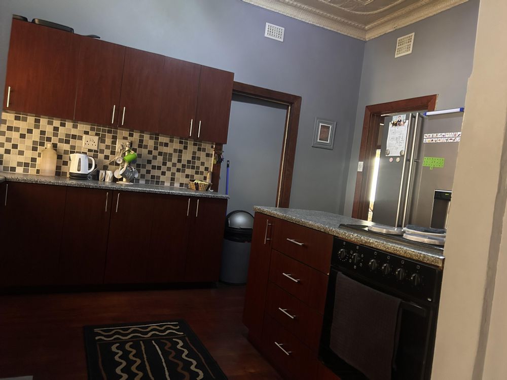 The yard is neat and spacious, with a well-kept garden and paved areas, all secured with perimeter fencing and burglar bars for peace of mind.