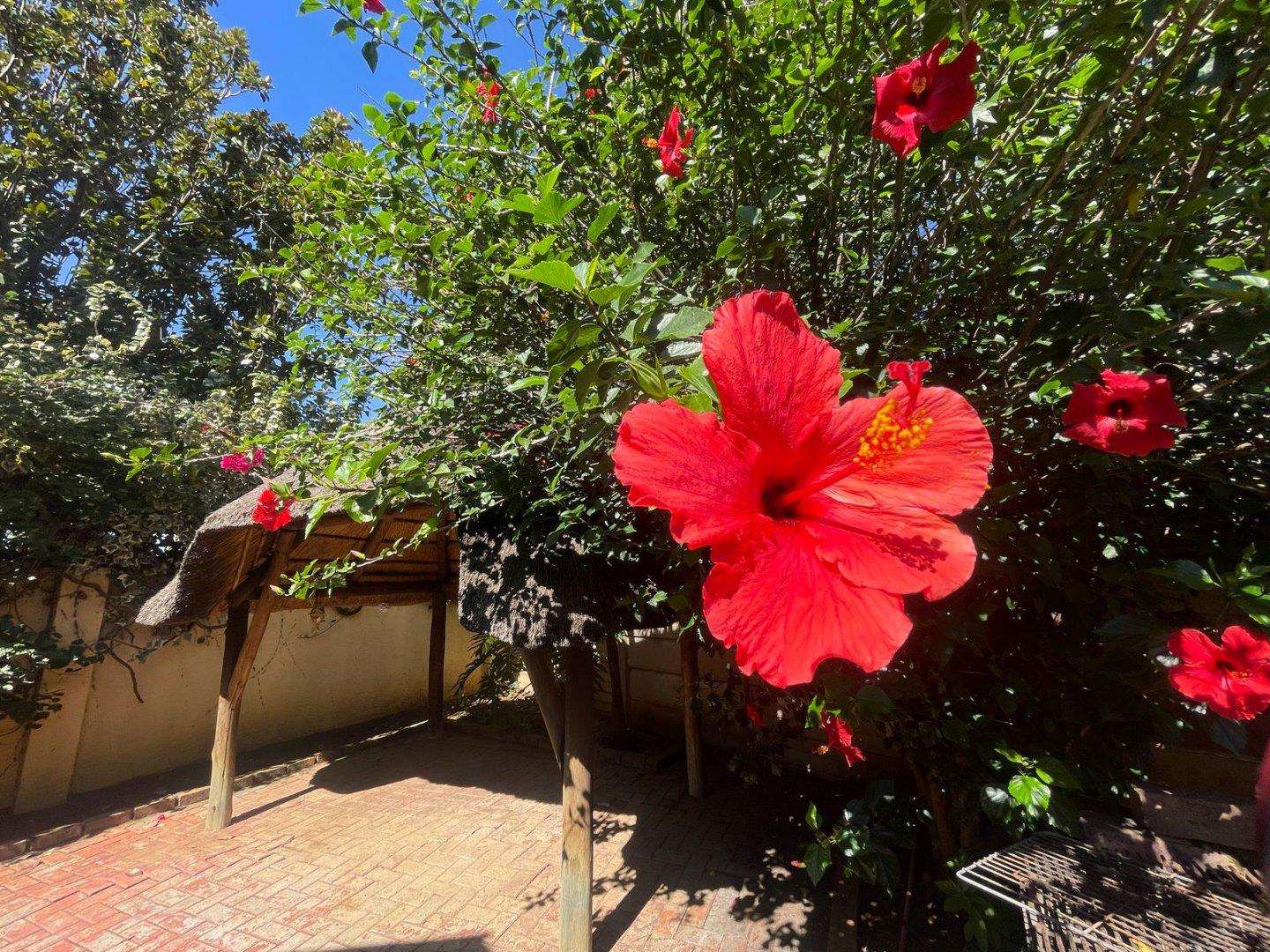 The expansive outdoor entertainment area is a true delight, boasting a lapa and built-in braais, making it ideal for hosting guests. The established garden, complete with a lemon tree and several fruit trees, creates a serene space to relax and enjoy the afternoon sun.