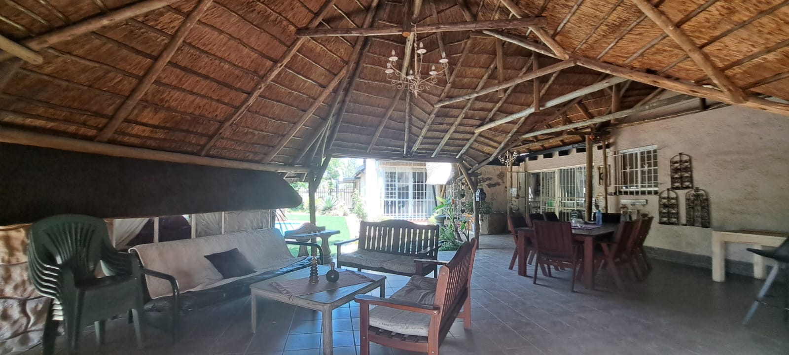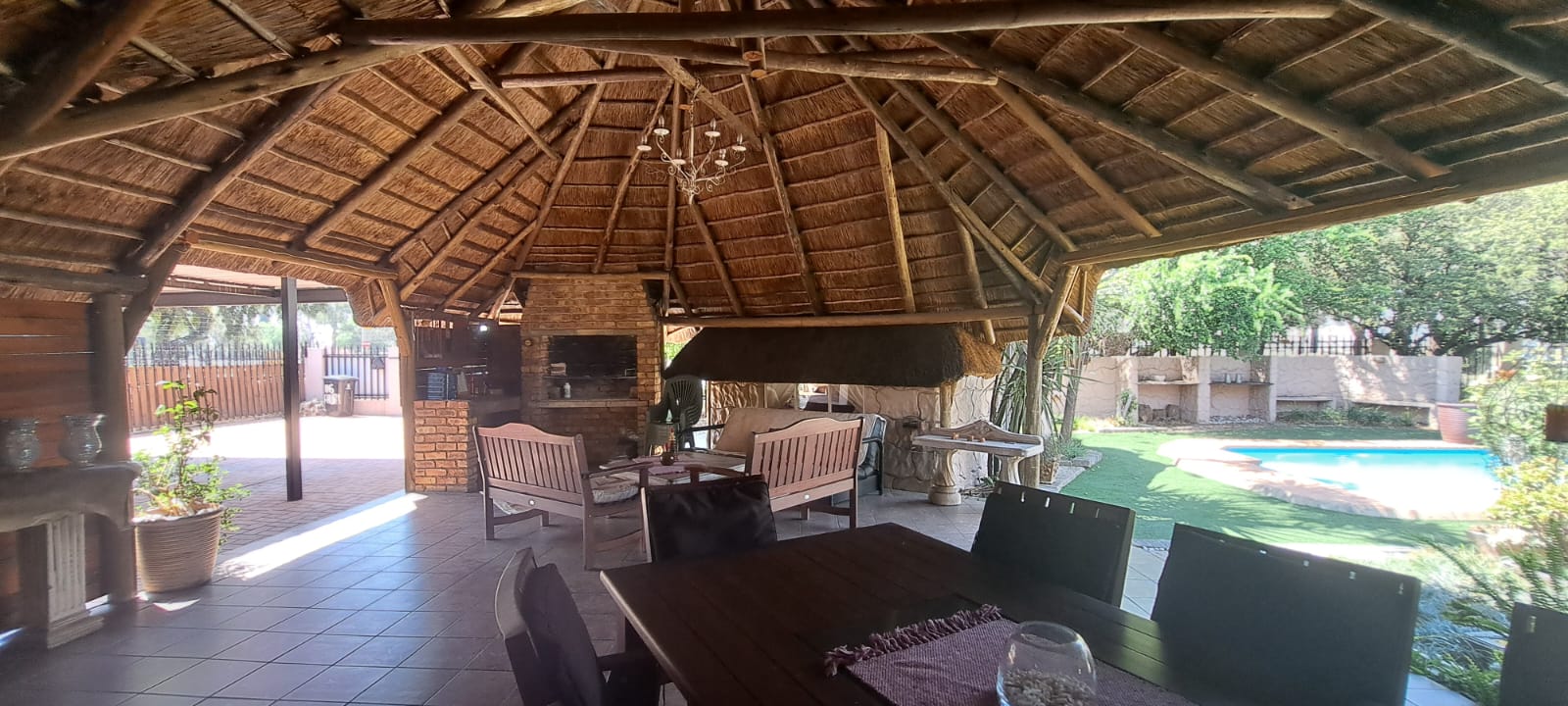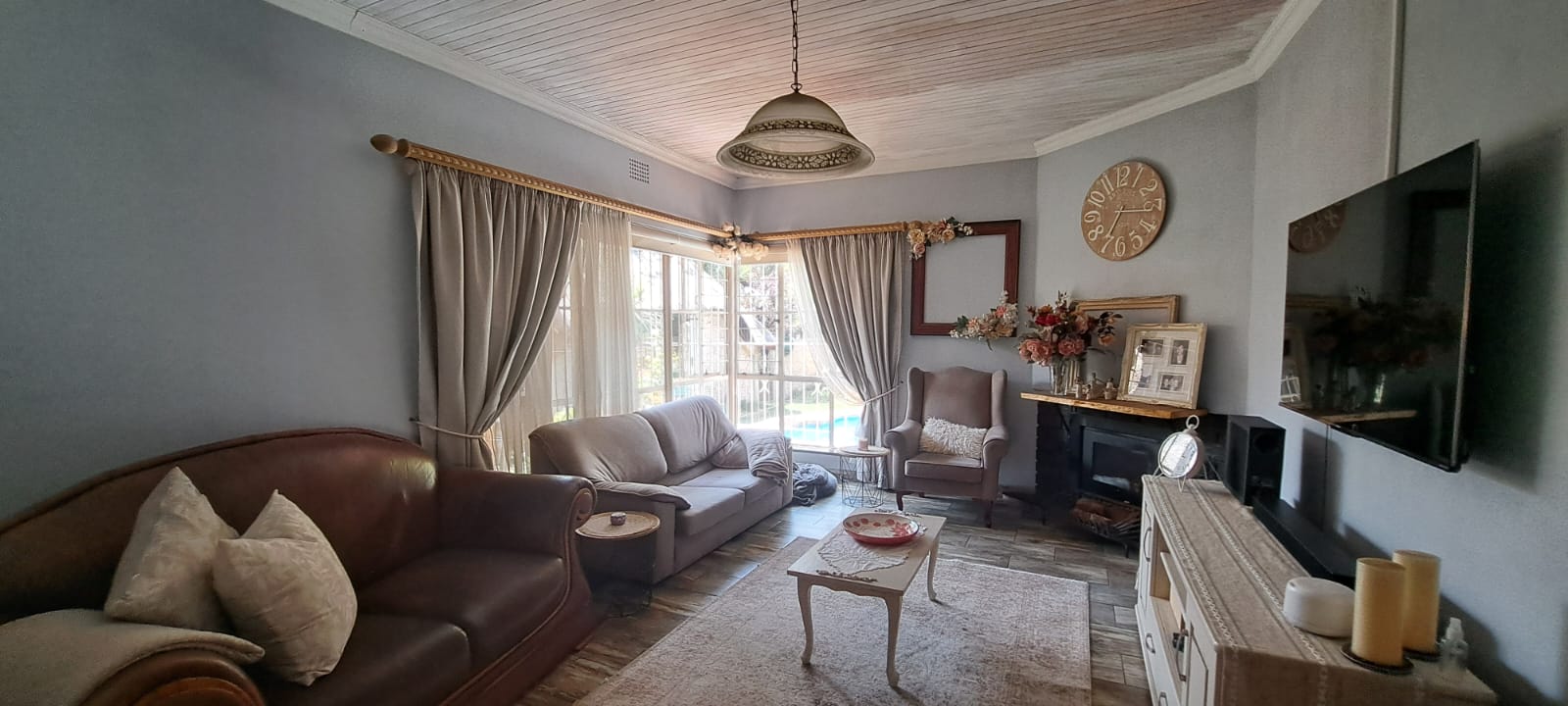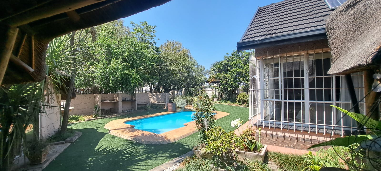 This immaculate property offers space, versatility, and comfort — perfect for an extended family or anyone needing additional accommodation options. Main House Character-filled kitchen with gas stove Open-plan dining and lounge with cozy fireplace Laminated flooring in living areas Spacious passage leading to well-sized bedrooms with built-in cupboards Flatlet Large, carpeted bedroom with ample cupboards Full kitchen, dining, and lounge Full bathroom with bath, shower, basin, and toilet Separate entrance and dedicated carport Wooden Cottage Open-plan kitchen, lounge, and bedroom Air-conditioning for year-round comfort Ideal for single occupant or couple Outdoor & Entertainment Expansive entertainment patio with built-in pizza oven Second patio overlooking newly renovated pool Well-kept garden for a serene setting Security & Parking Electric fencing, outdoor beams, burglar bars, and alarm system Double garage (remote-controlled) plus double carport Paved front yard for easy upkeep Location Sought-after area with excellent access to schools, shops, and major routes A rare find that combines a comfortable family home with extra accommodation options and excellent entertainment spaces. Disclaimer: Mandated Property Group has made every effort to ensure the accuracy of this advertisement. However, all information provided is subject to change without notice. Neither the Seller, the Agent, nor Mandated Property Group accepts any liability for errors, omissions, or misstatements. No warranty is given, either expressly or implied, and interested parties should not rely solely on this information. Prospective buyers are strongly advised to verify all details independently, either with the Agent or through their own inspections and due diligence.