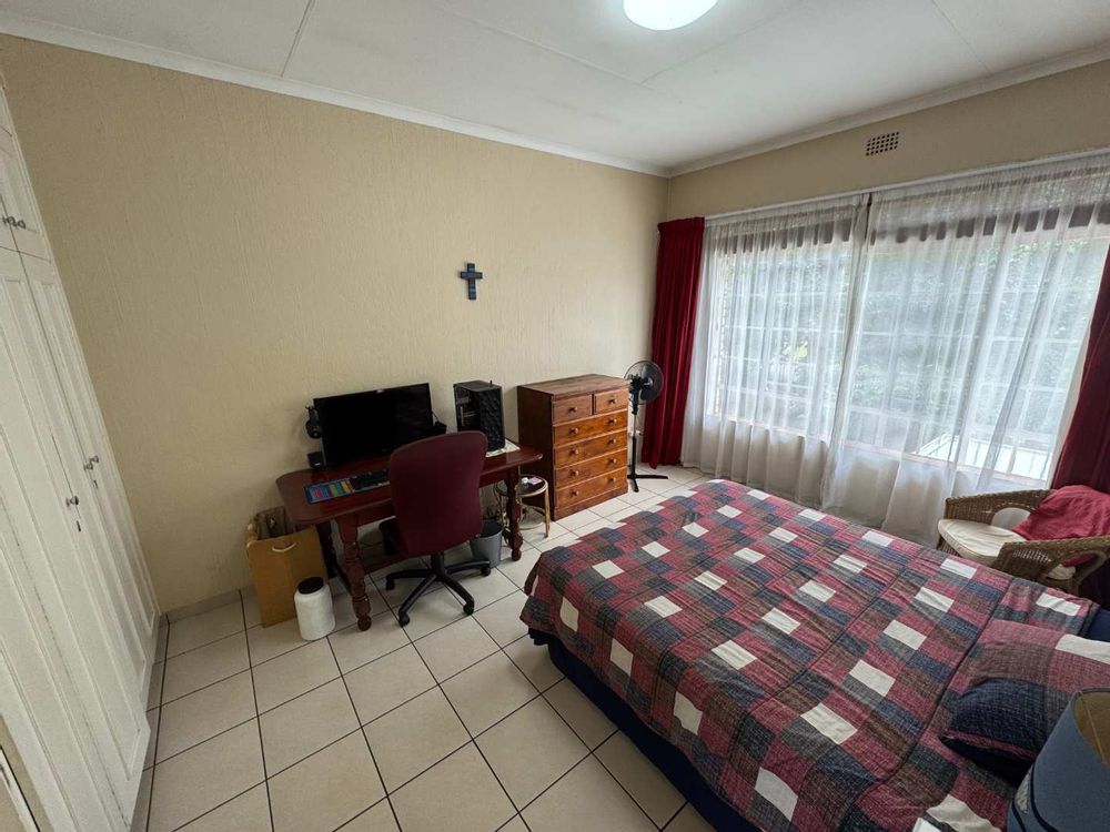 Main bedroom: Tiled, built-in cupboards, ceiling fan, blinds, and full en-suite bathroom