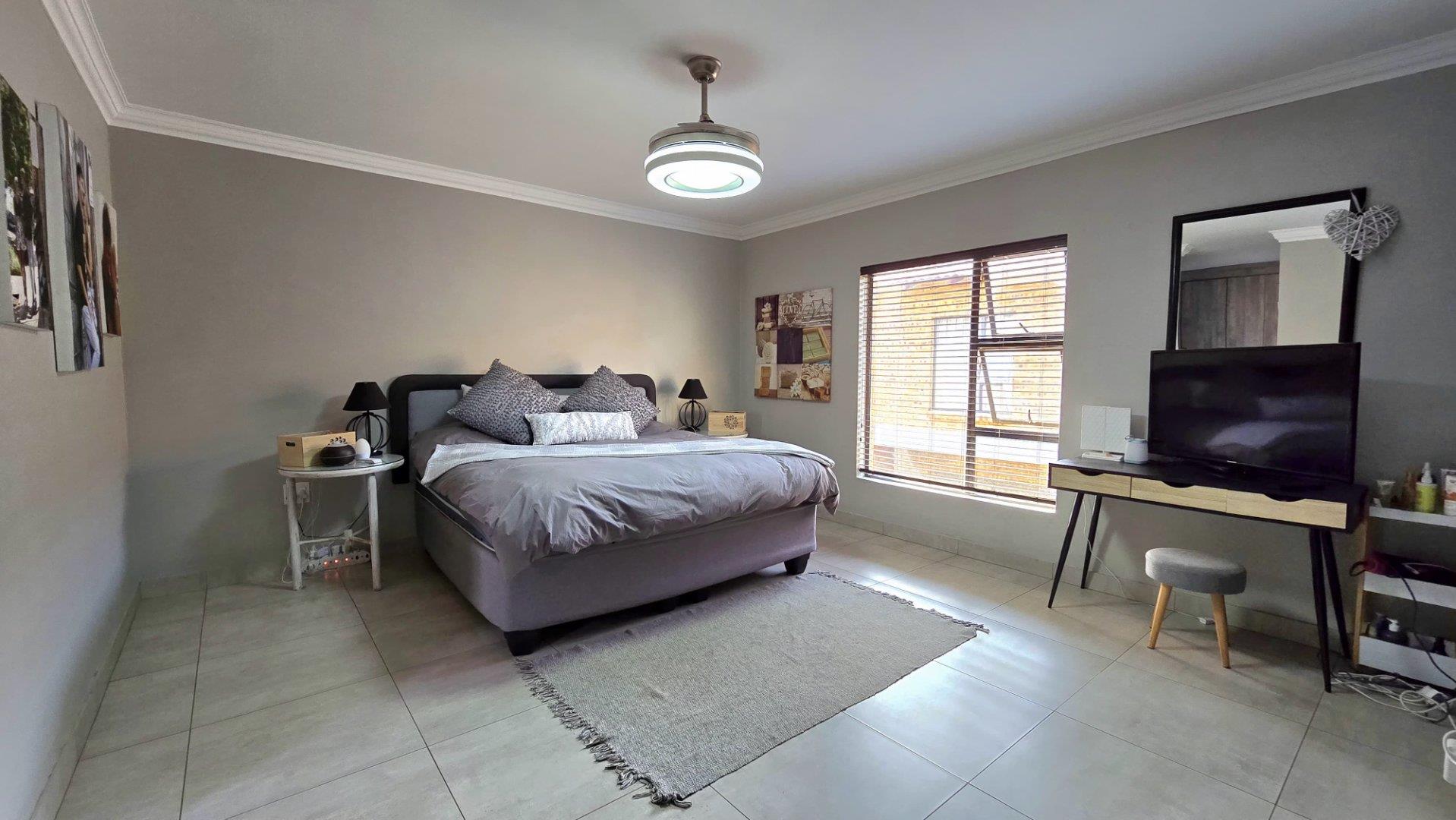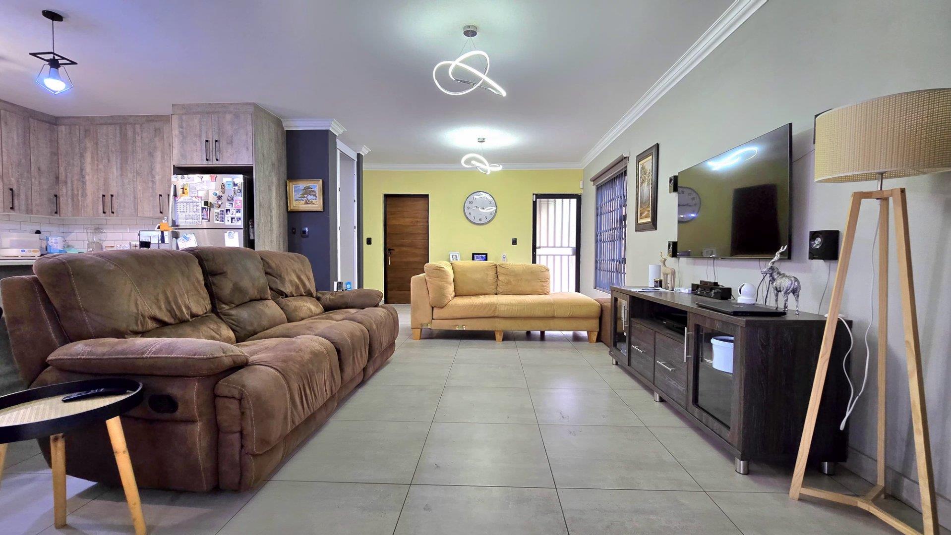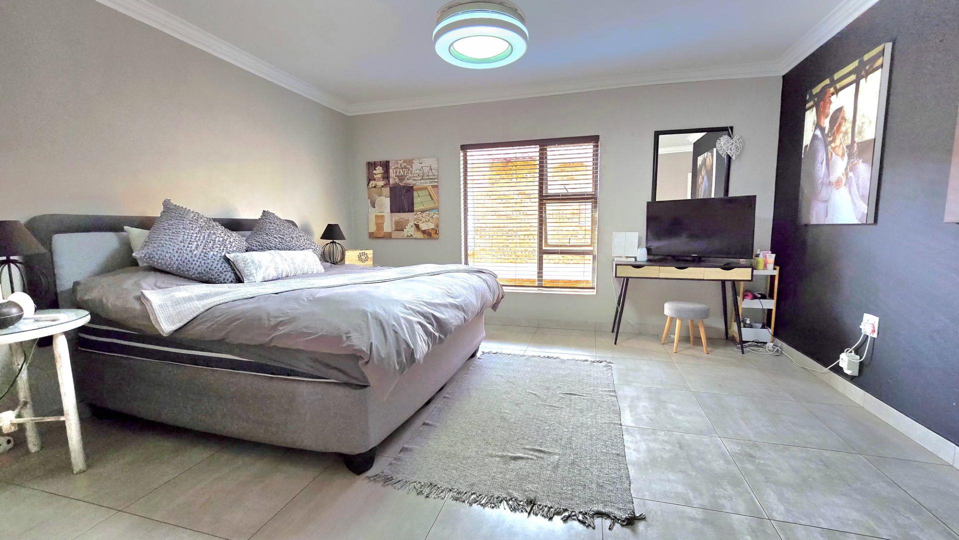 This property showcases spacious living at its finest, with sleek aluminum-framed windows and low-maintenance face brick construction. The intimate complex adds to its charm, while a tiled double garage with direct access to the lounge and garden service passage enhances convenience. Additional parking is available next to the unit, ideal for extra cars or trailers.
