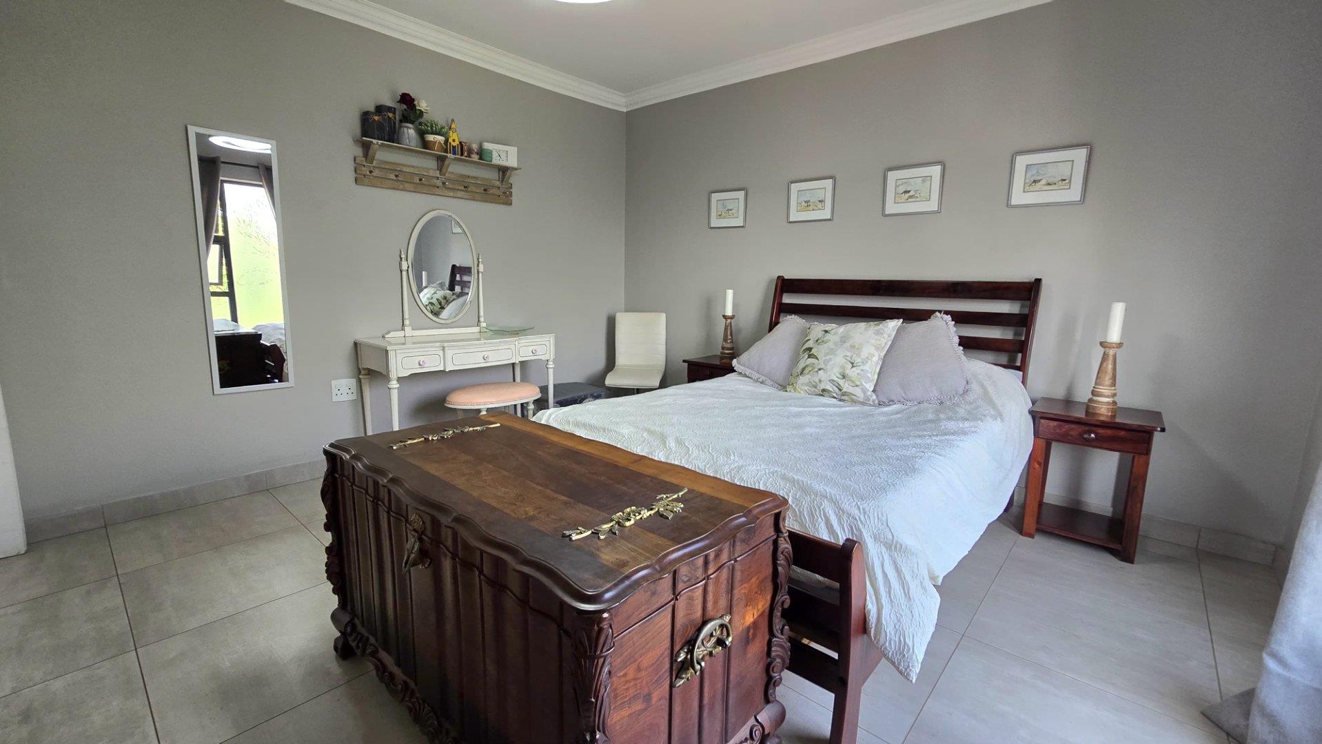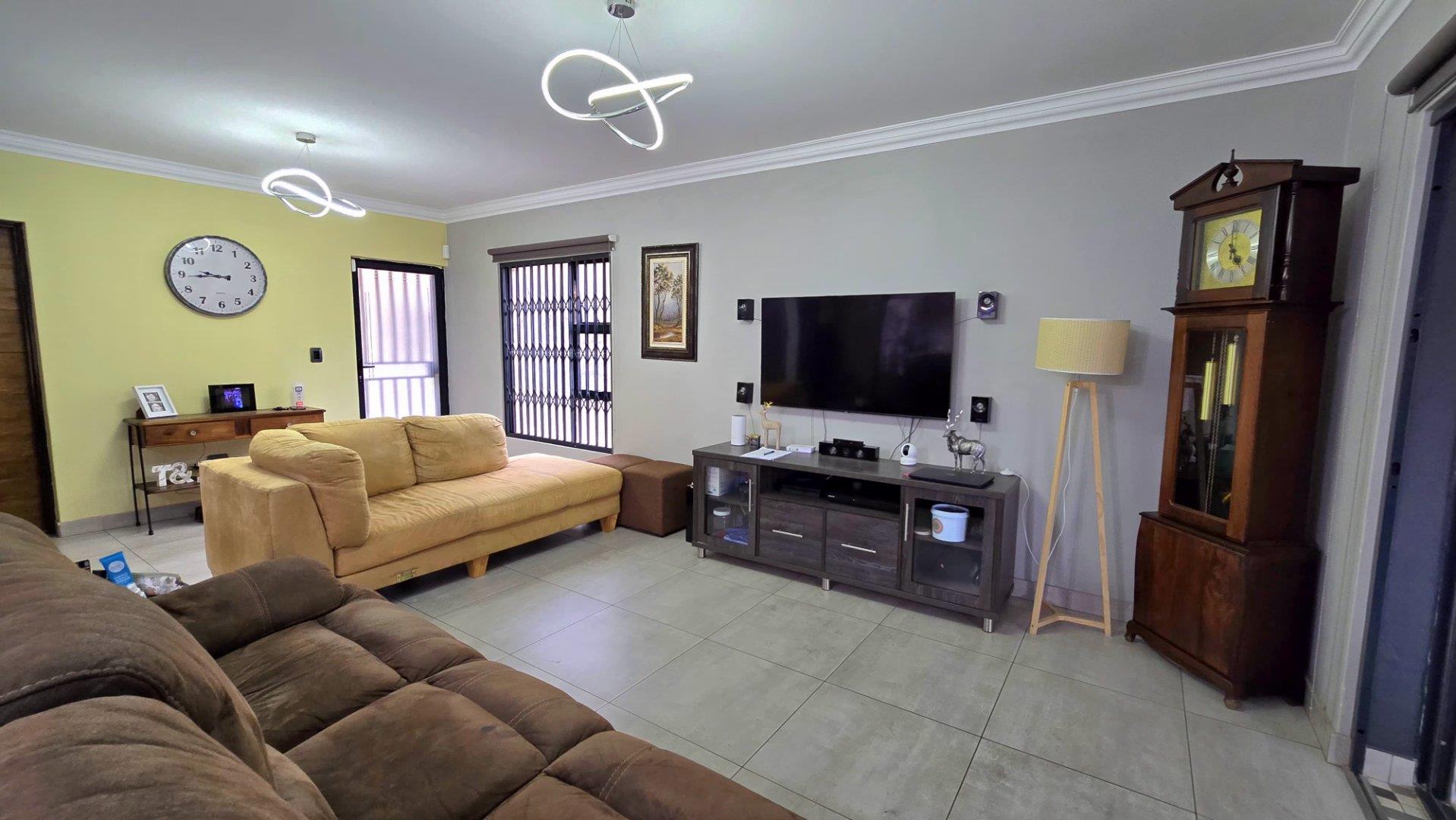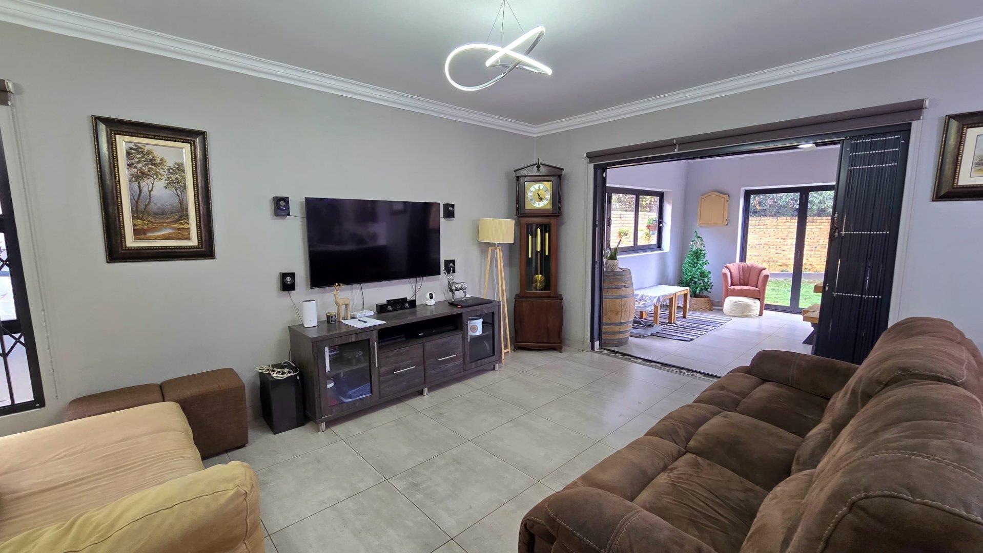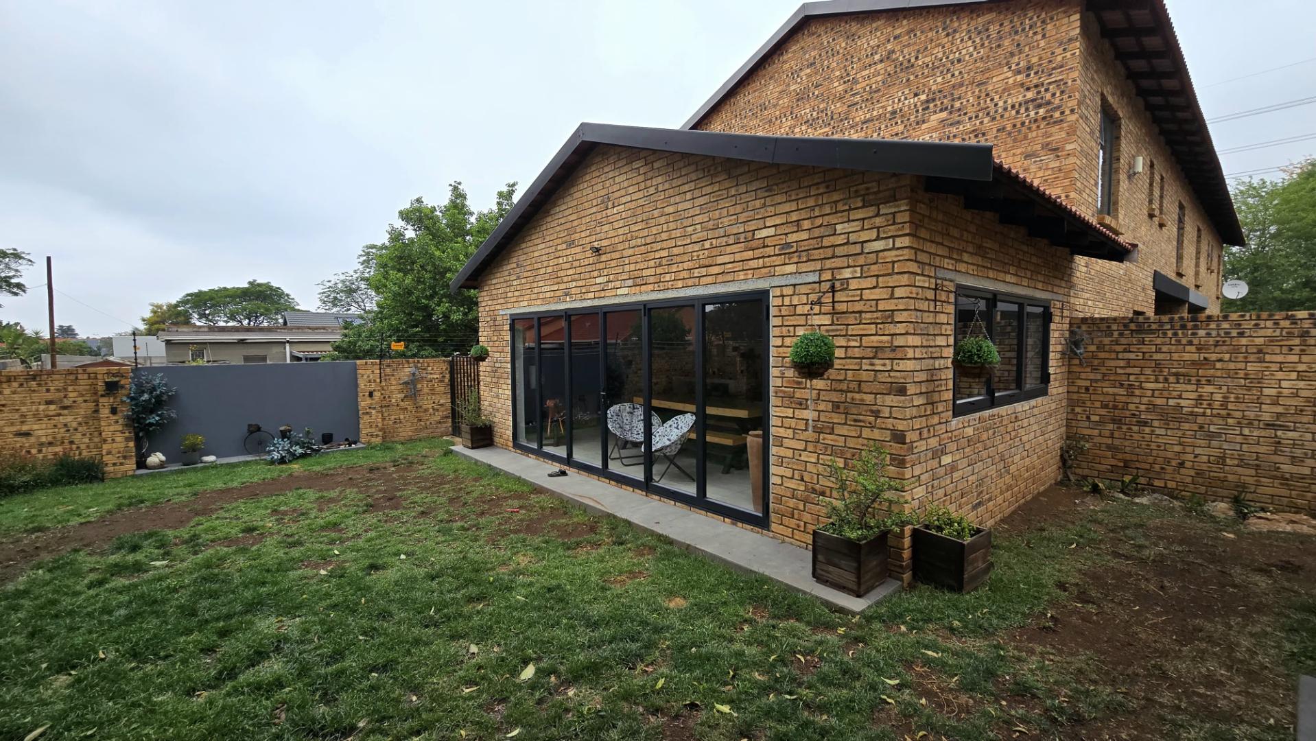 This property showcases spacious living at its finest, with sleek aluminum-framed windows and low-maintenance face brick construction. The intimate complex adds to its charm, while a tiled double garage with direct access to the lounge and garden service passage enhances convenience. Additional parking is available next to the unit, ideal for extra cars or trailers.
