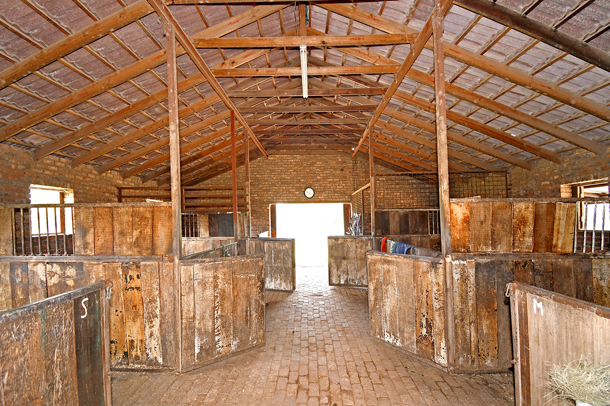 - Six-stable barn with a tack room, feed room & equipment storage