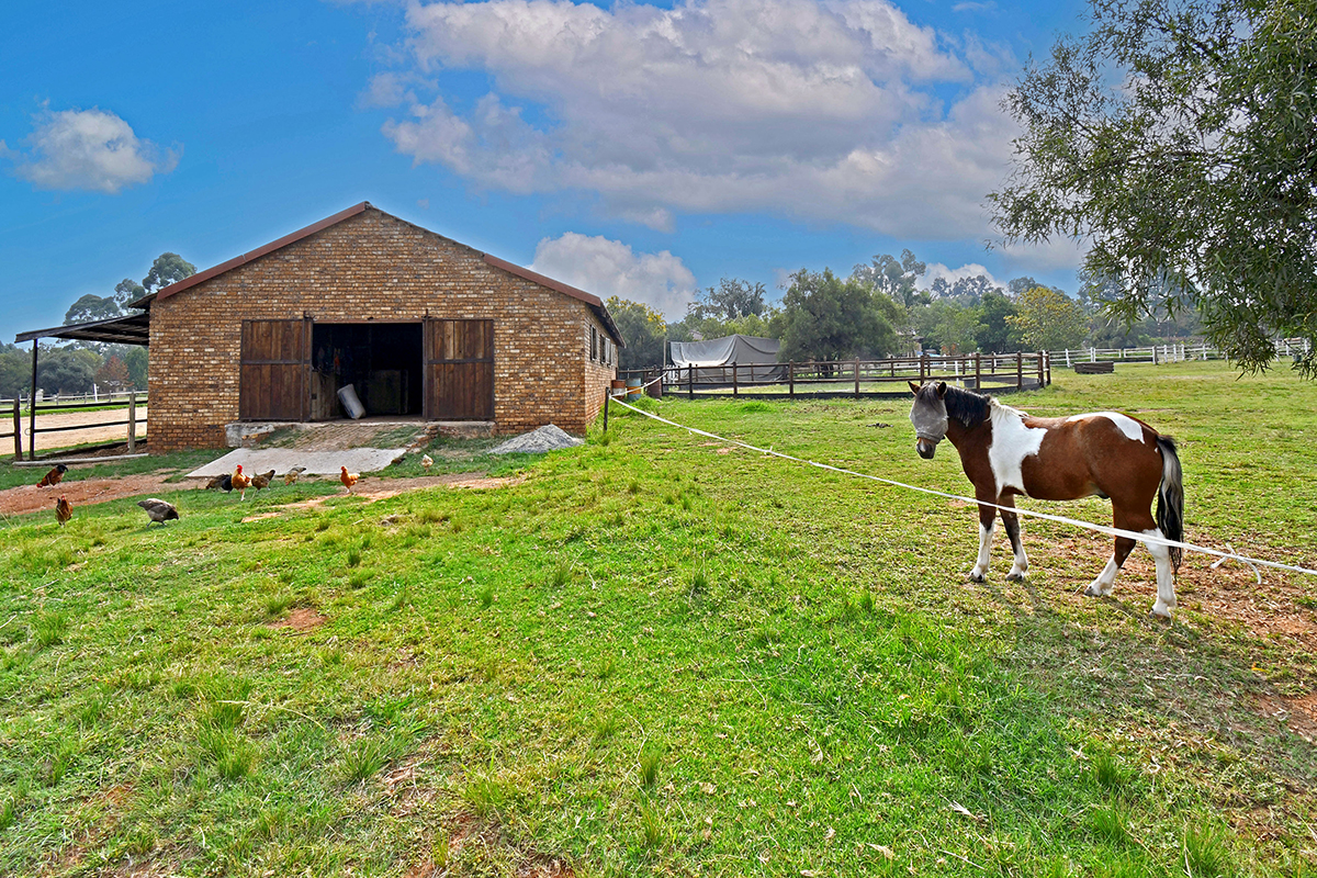 Randjesfontein estate regulations require either a main residence of at least 250m2 with stables or modifications to the existing barn to meet the minimum building requirement. This presents a fantastic opportunity to expand and customize the property to suit your needs while maintaining its equestrian charm.