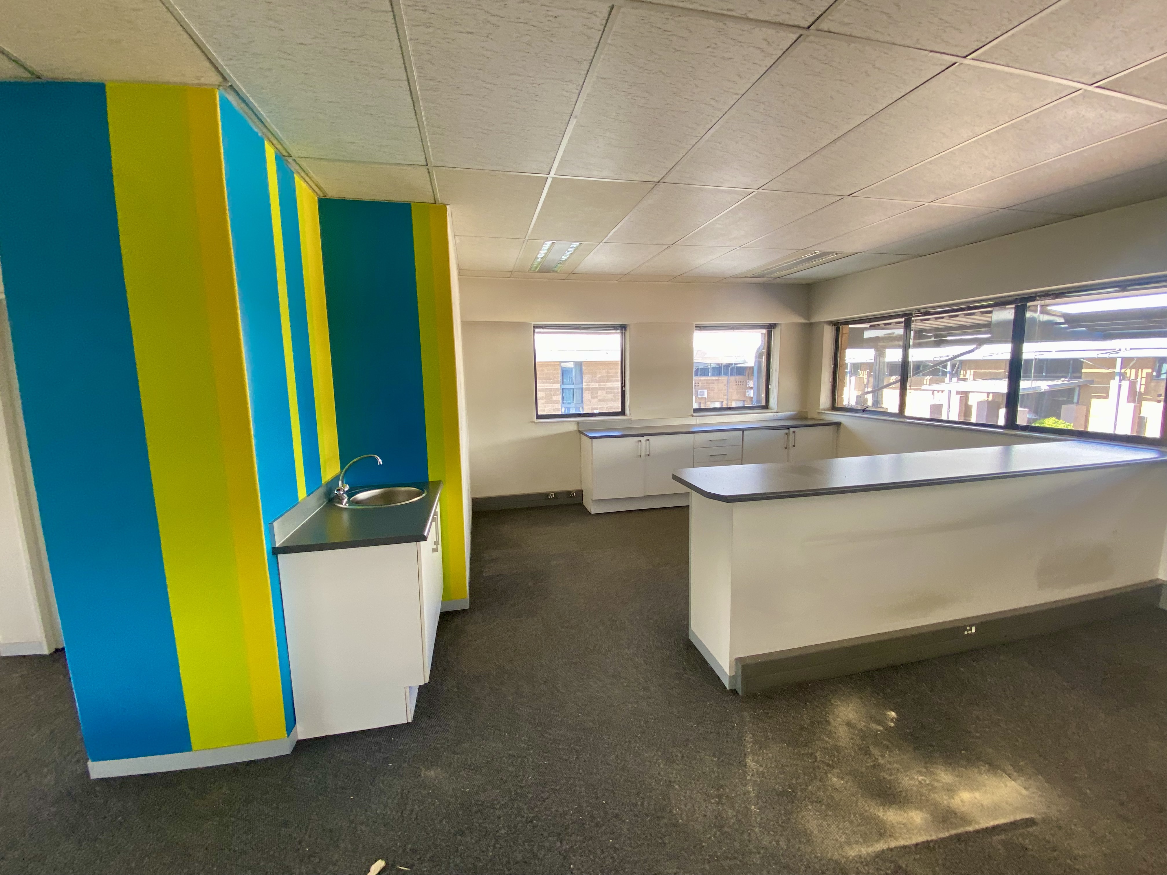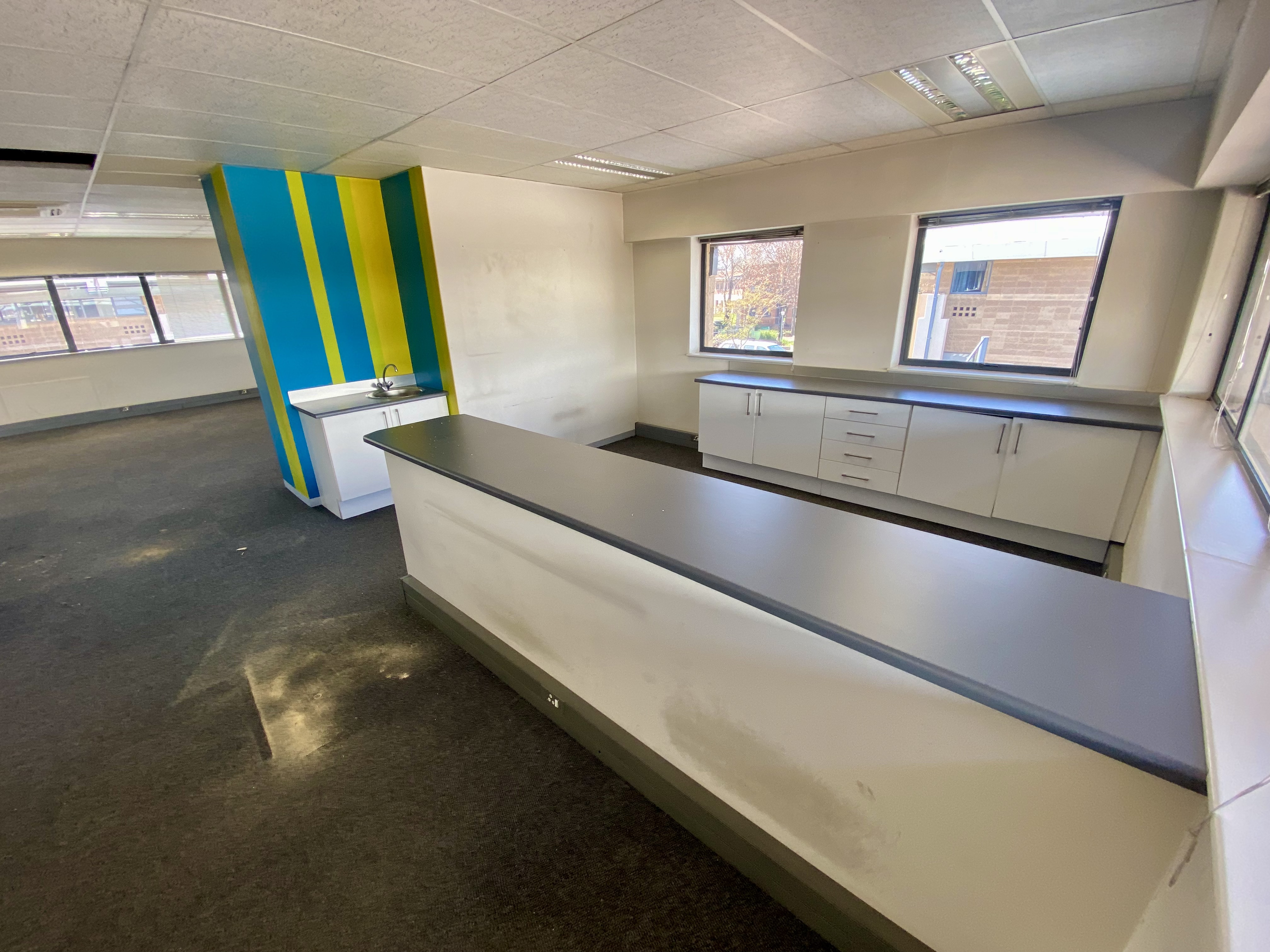 This bright and well-fitted office features a spacious open-plan work area, a large kitchen, multiple private offices, and boardroom/meeting rooms.