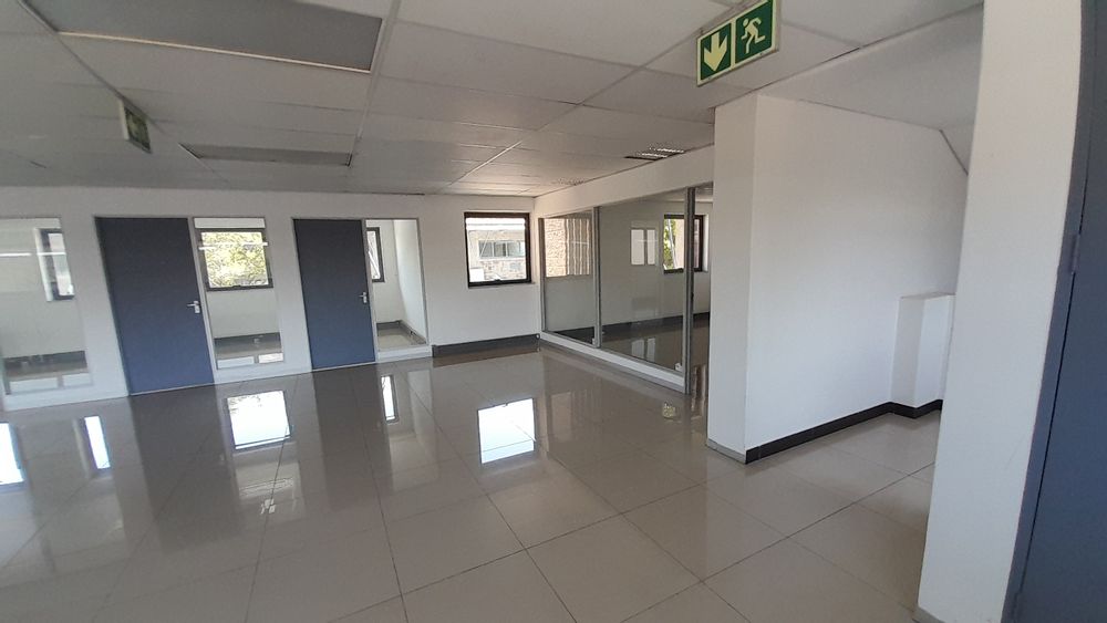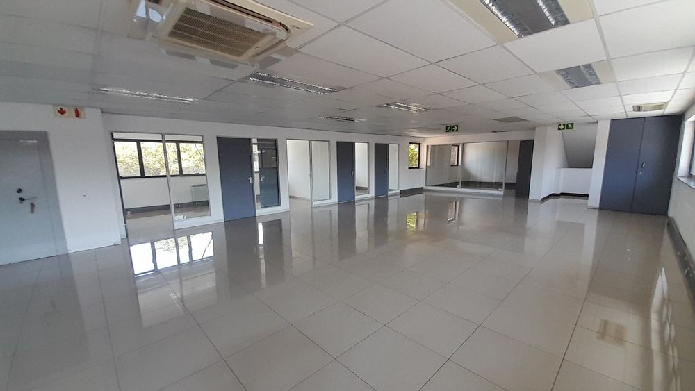 This 302m first floor office space is located in Block D within the secure and established Central Park in Randjespark. The unit offers a distinctive layout featuring a tiled open plan workspace, 2 closed offices, 1 boardroom, an internal kitchen, and 2 internal ablutions. A standout feature is the secure walk-in safe, ideal for use as a strong room, archive, or specialised storage area. Wall-mounted air conditioning units ensure a comfortable working environment throughout. This space is well-suited for businesses seeking a functional office with a unique design element.