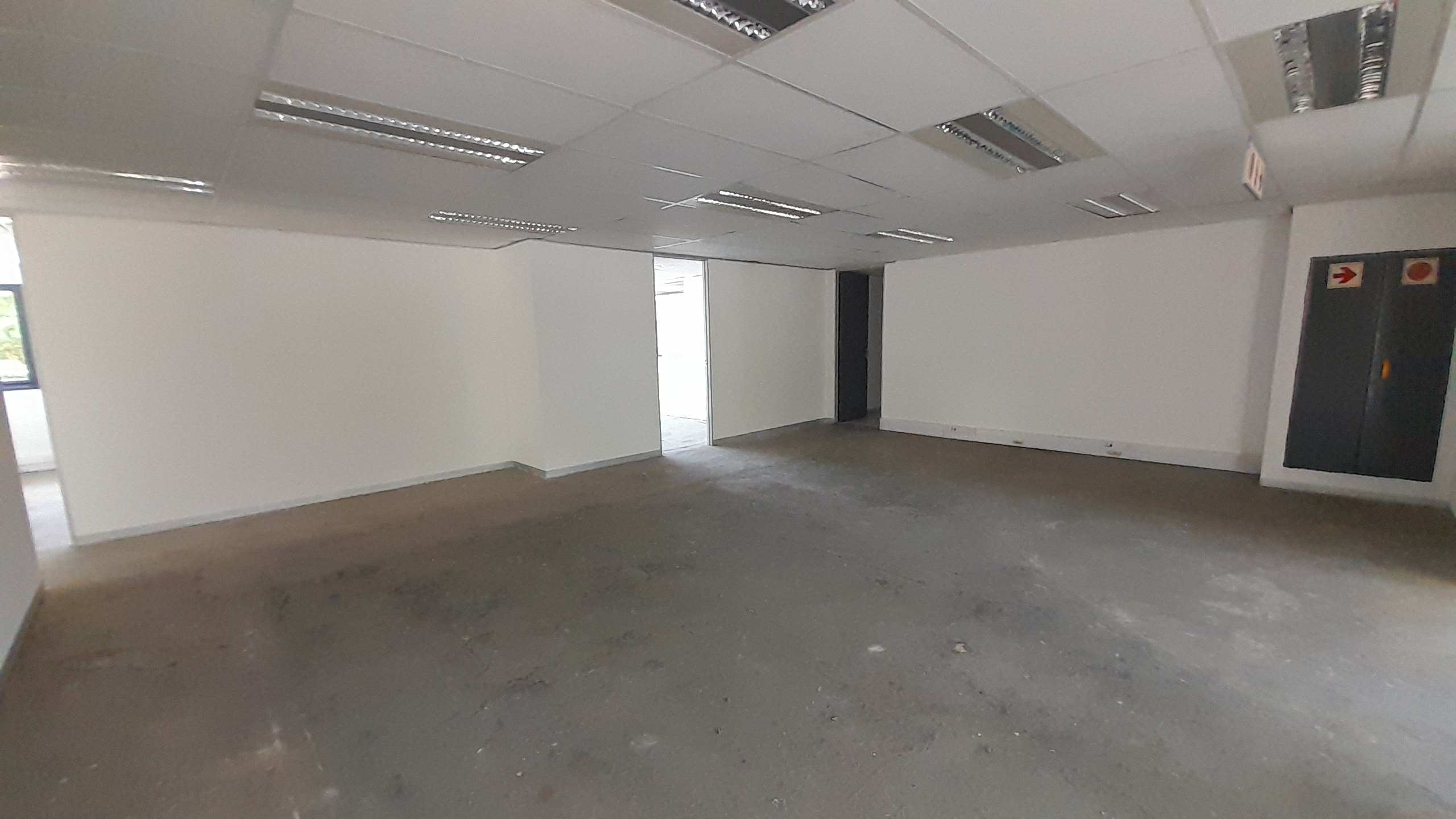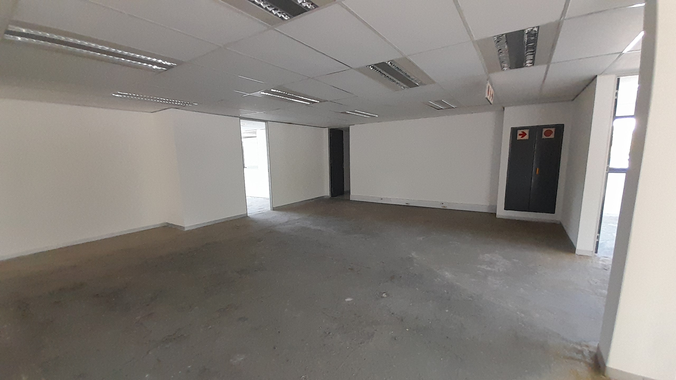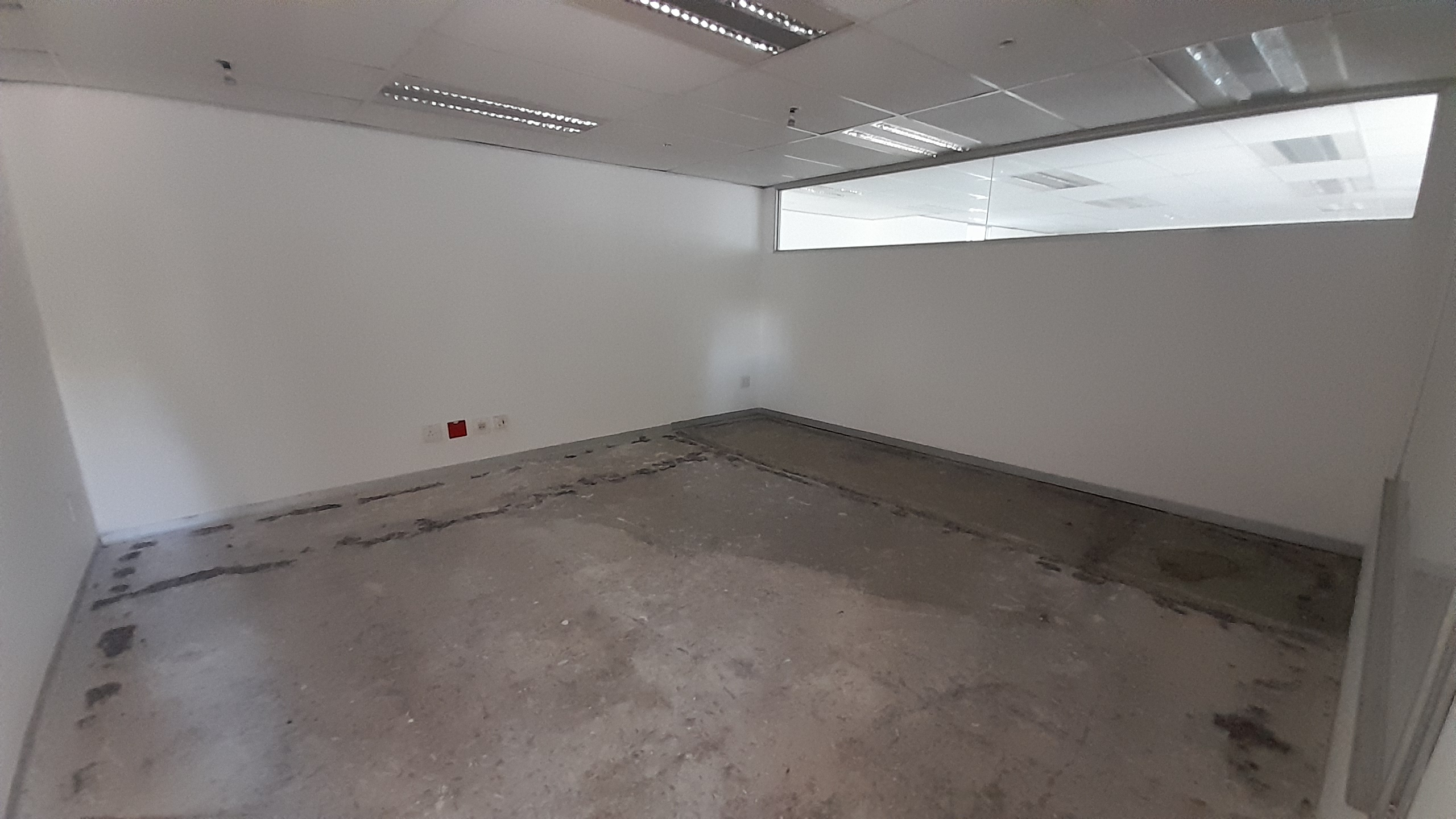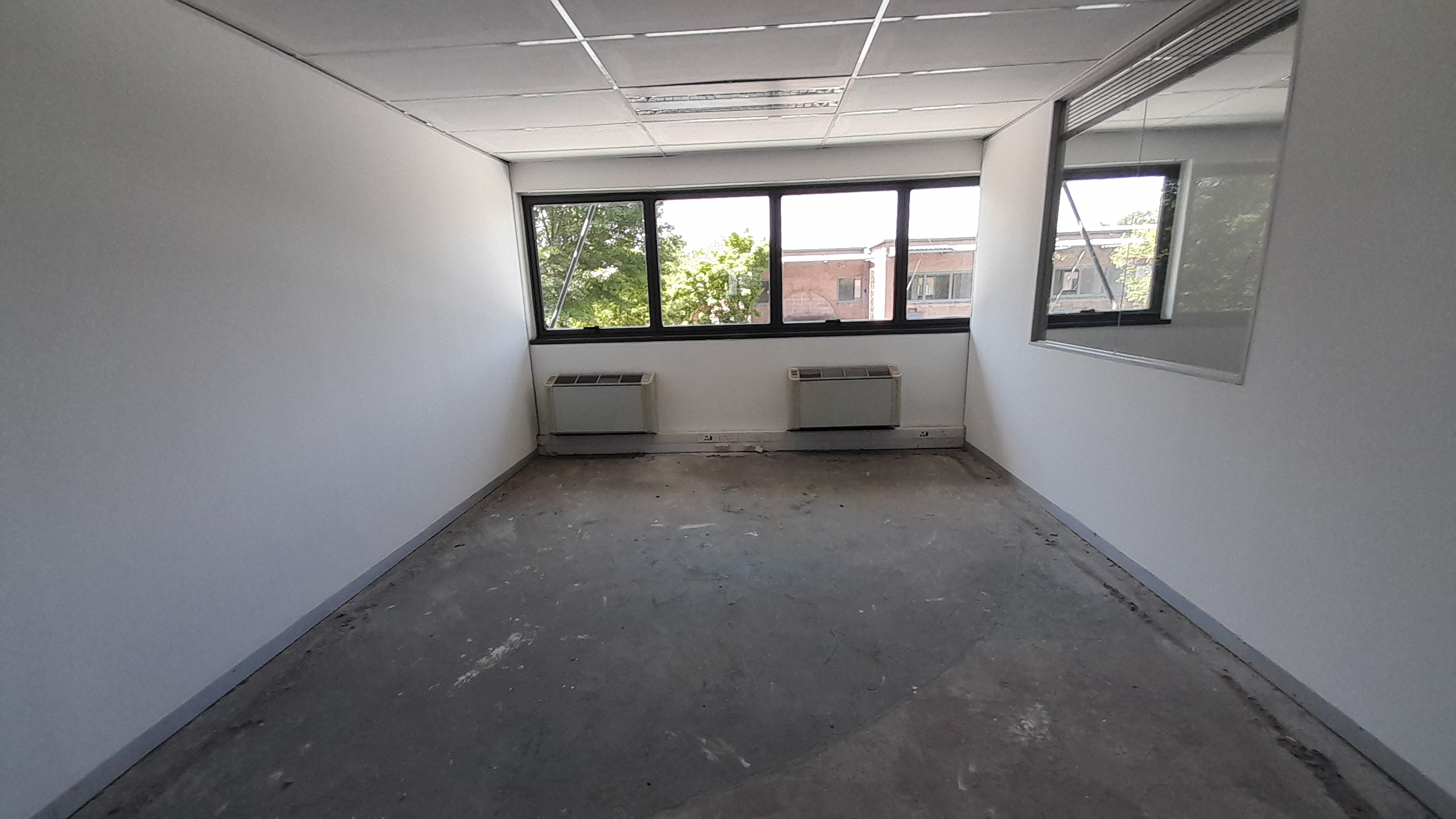 This 483m first floor office space in Block C at Central Park offers a versatile white box layout, ideal for tenants seeking a space they can customise to their exact requirements. The unit comprises a reception area, 1 boardroom, 1 internal kitchen, 5 closed offices, 2 internal ablutions, 2 open plan work areas, and a server or storage room. The absence of flooring allows for tailored finishes, while wall-mounted air conditioning units provide climate control throughout.