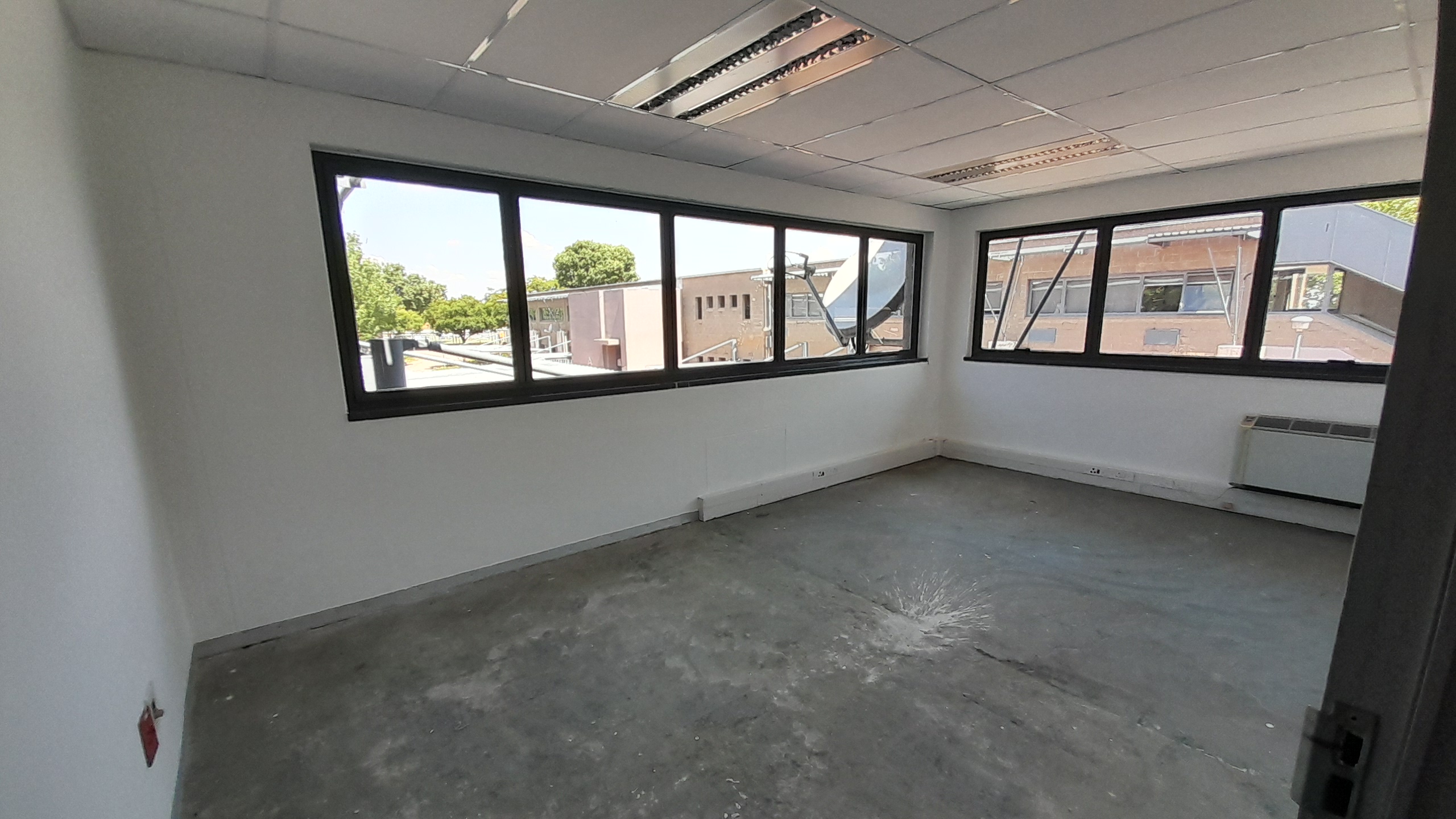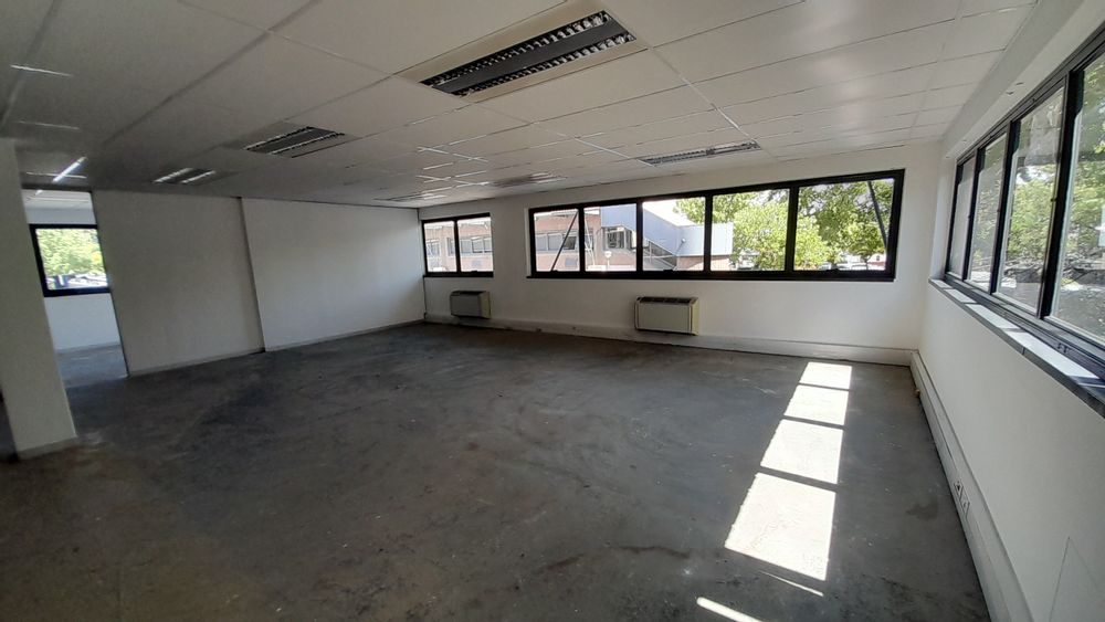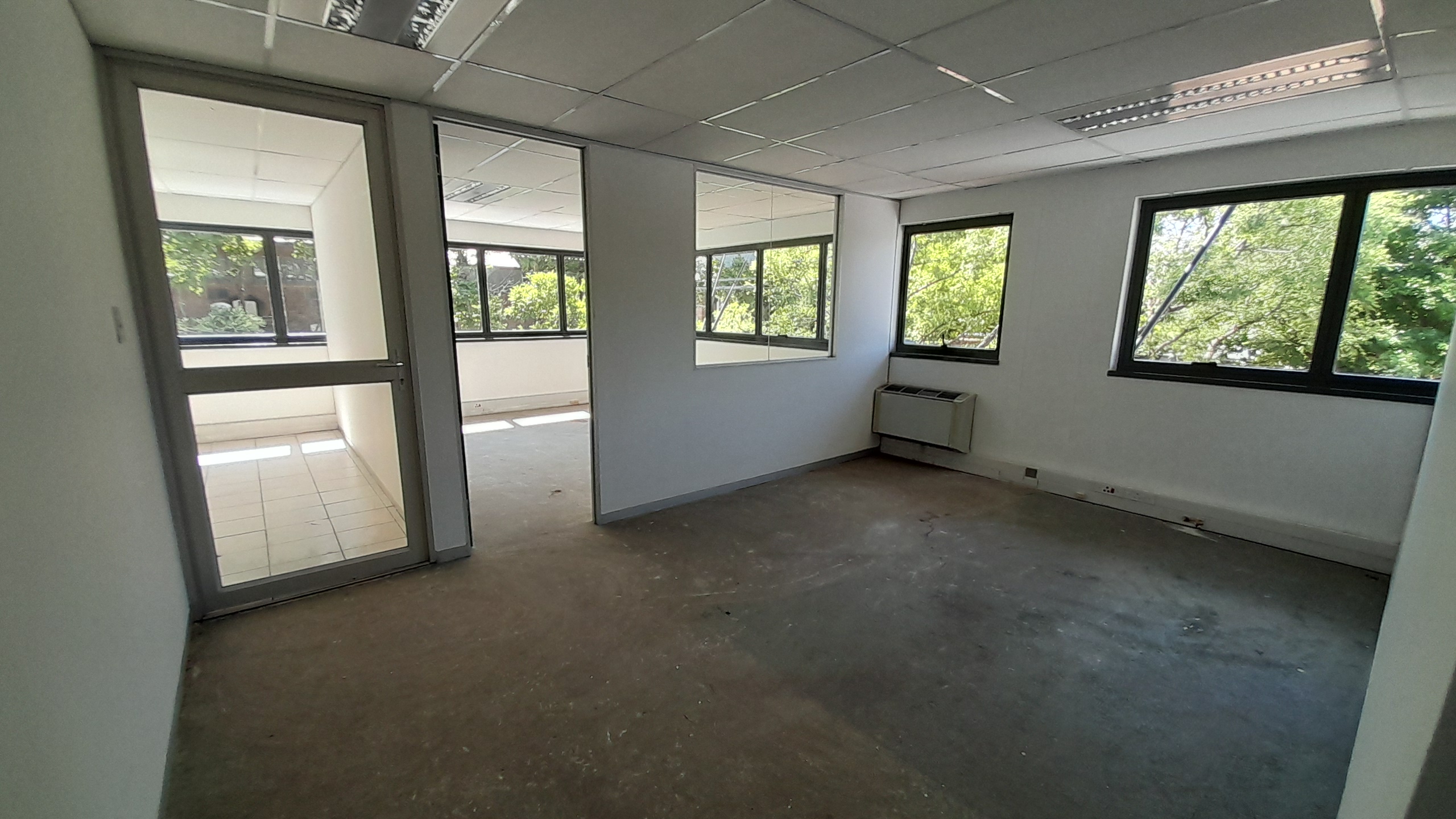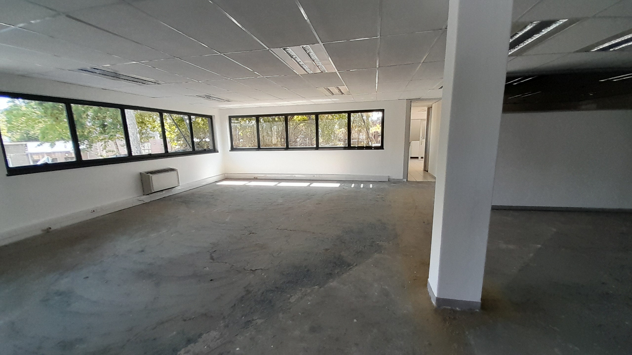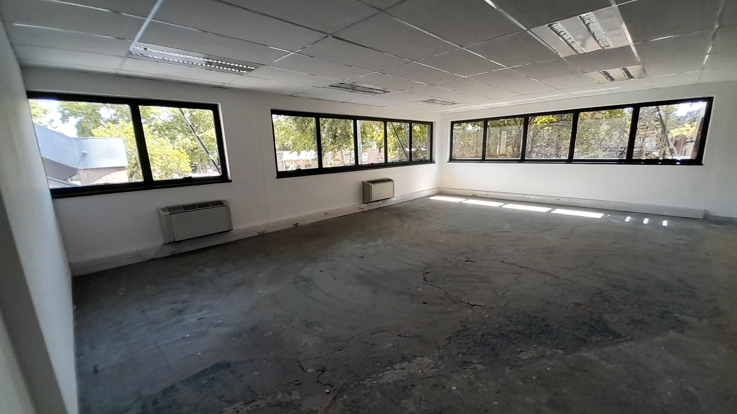 This 483m first floor office space in Block C at Central Park offers a versatile white box layout, ideal for tenants seeking a space they can customise to their exact requirements. The unit comprises a reception area, 1 boardroom, 1 internal kitchen, 5 closed offices, 2 internal ablutions, 2 open plan work areas, and a server or storage room. The absence of flooring allows for tailored finishes, while wall-mounted air conditioning units provide climate control throughout.