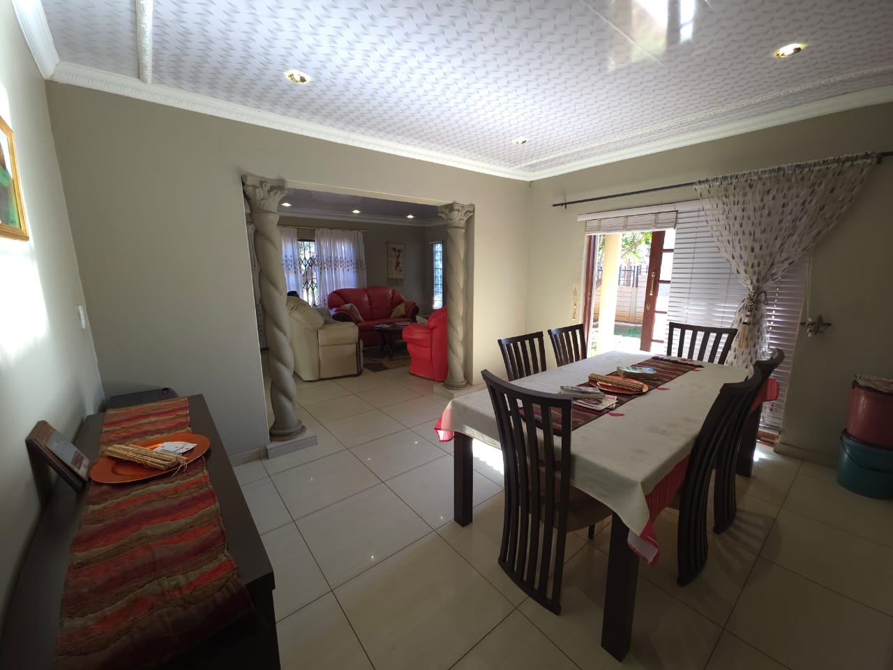 Security is well taken care of with burglar bars all around the house, a fully fenced yard, and a double garage with an electric door, plus additional parking space for up to 4 vehicles. The property is completed with a beautifully maintained garden, making it an ideal family retreat.