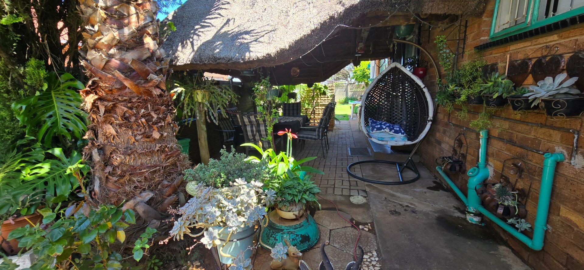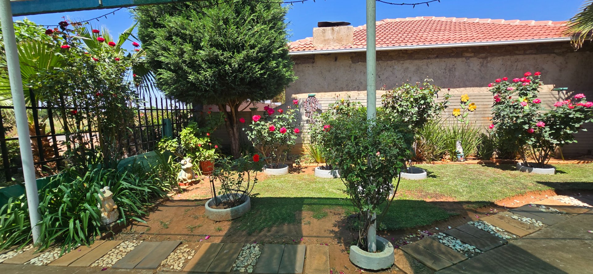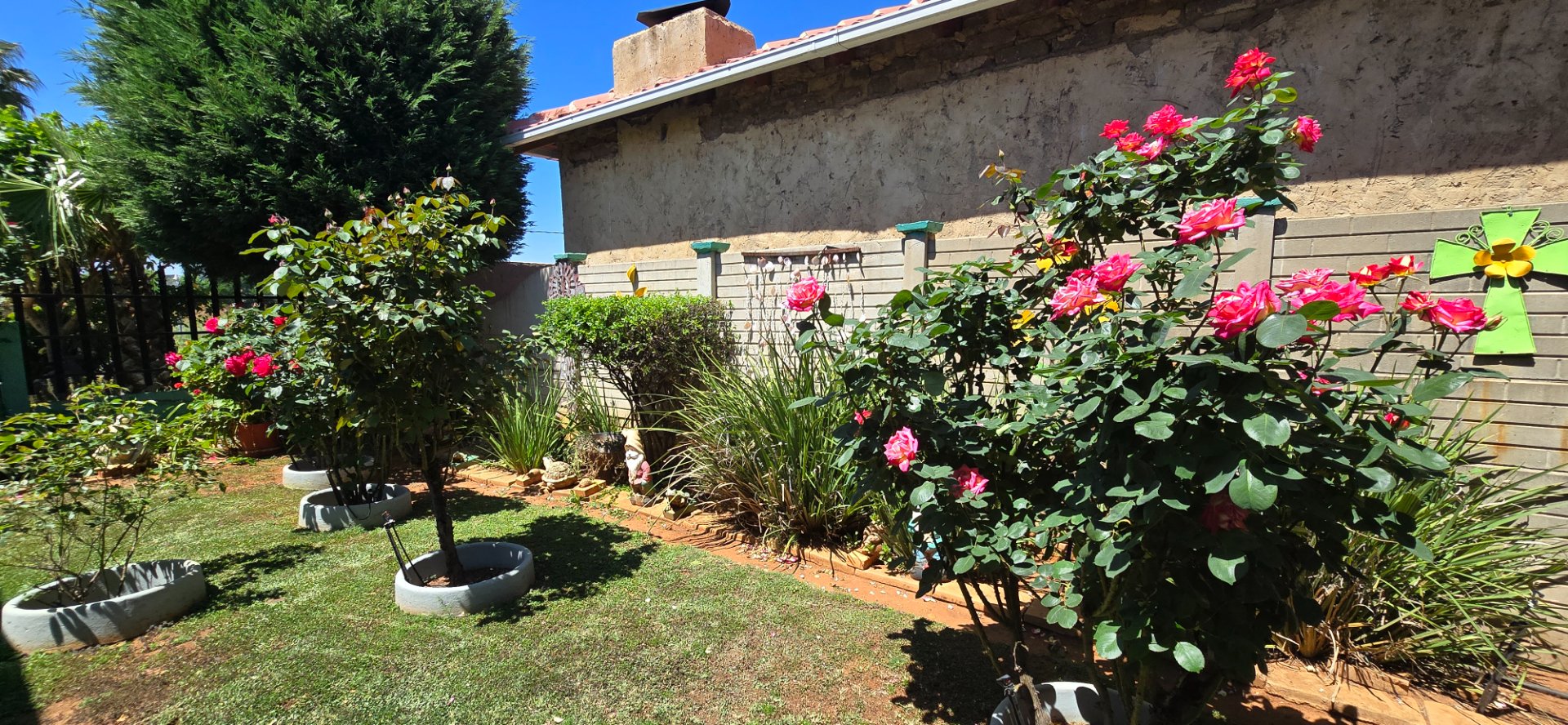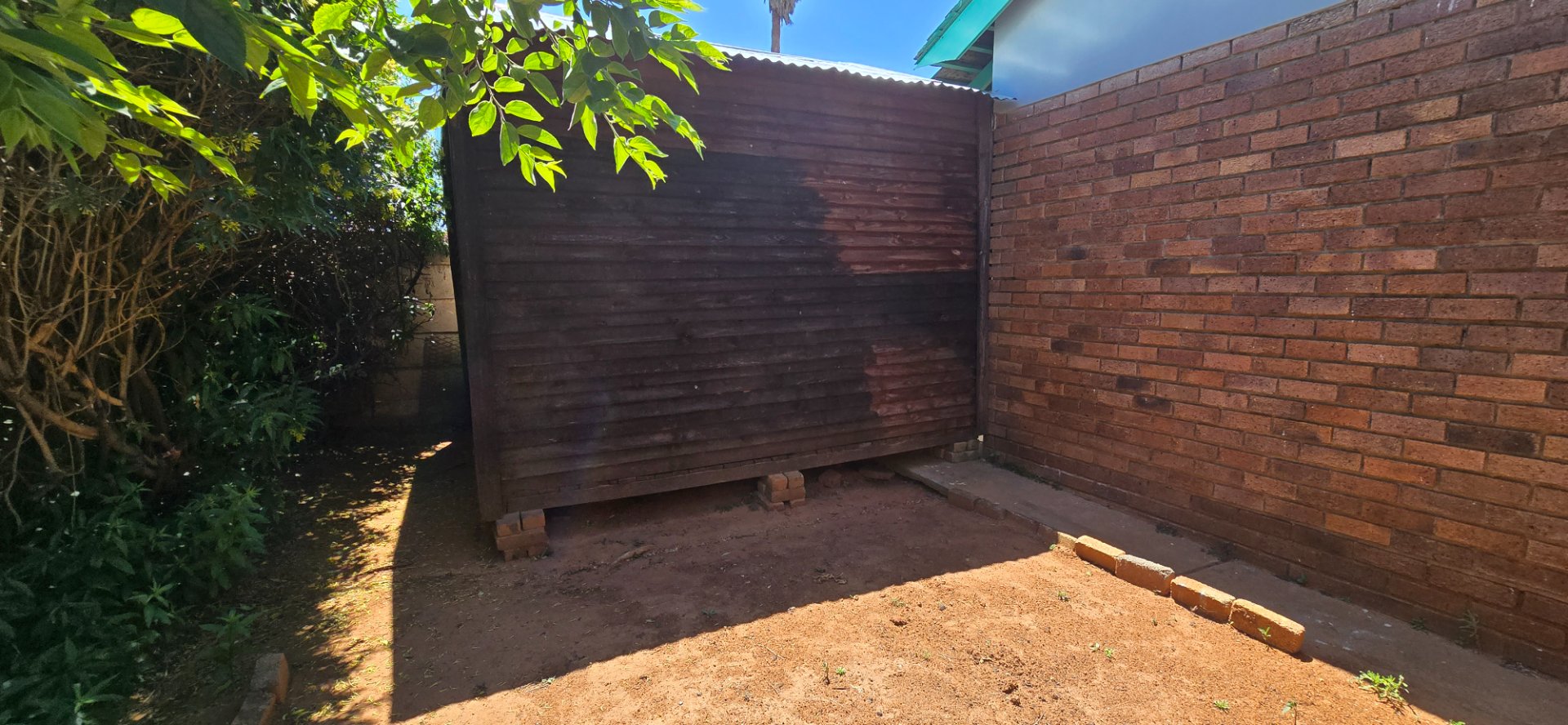 Lovely, irrigated garden with wooden shed, outside braai, lapa and outside toilet