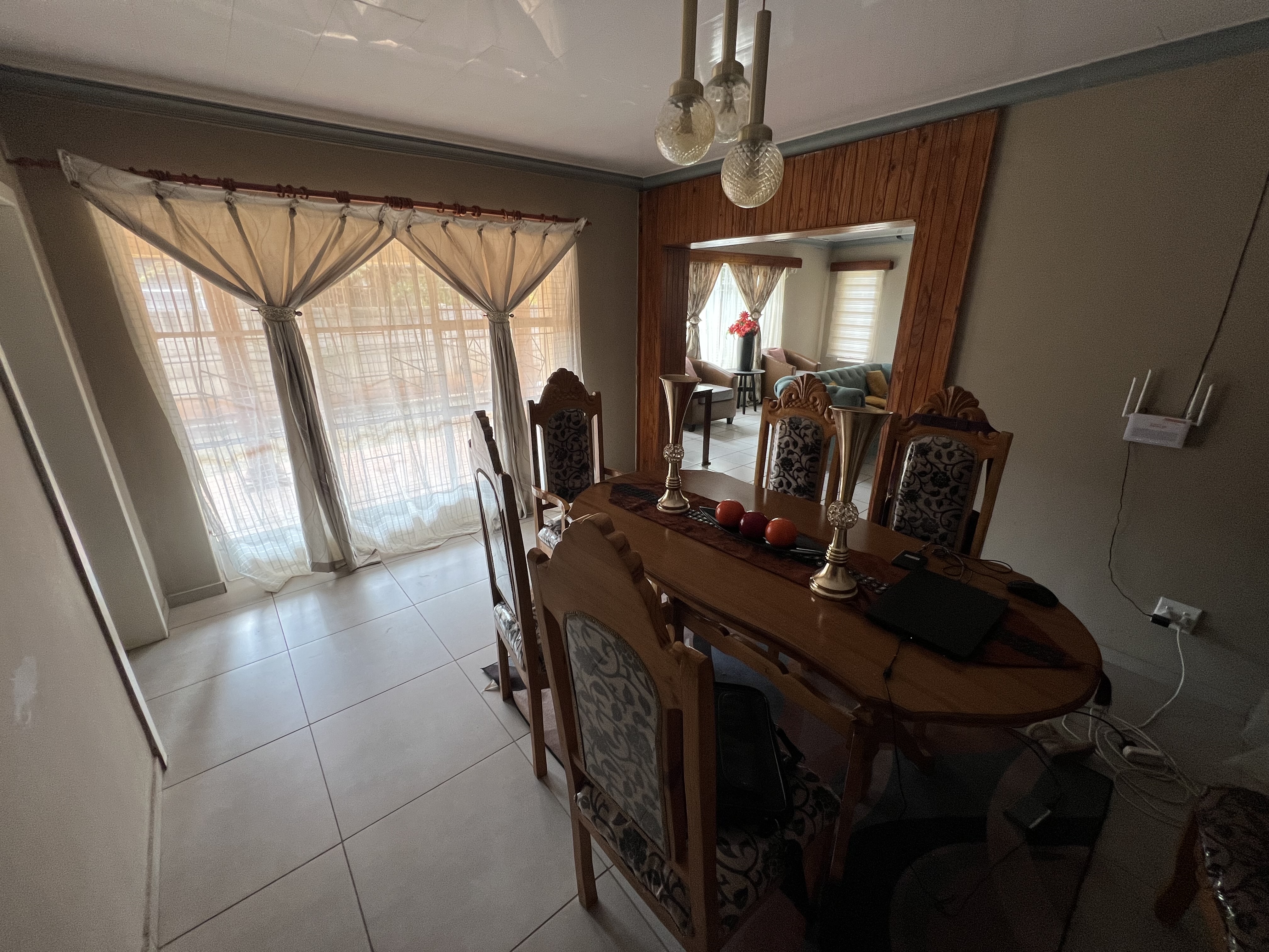 This home boasts a Hollywood garage providing secure parking and easy access. With burglar bars installed for added security, you can feel at ease knowing your loved ones and belongings are safe. The property is also designed with modern aesthetics in mind, featuring a durable tile roof and exterior walls that enhance its contemporary appeal.