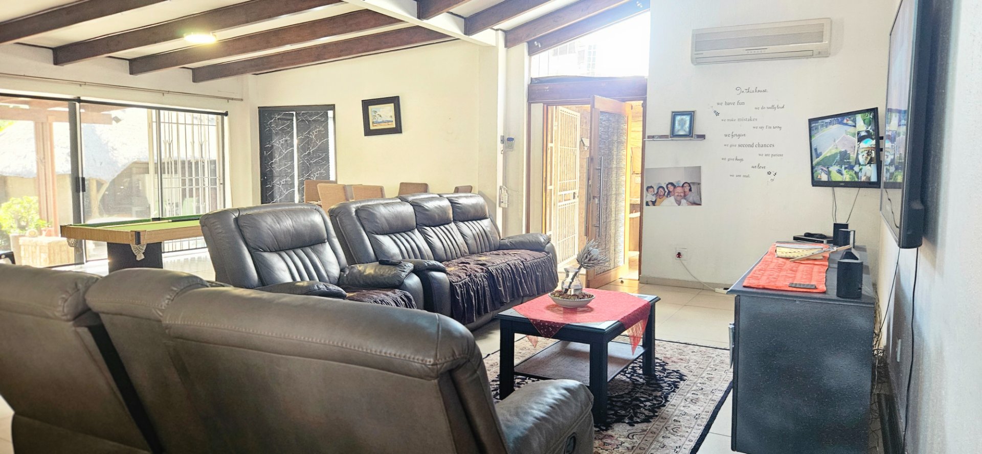Security is outstanding with high walls, electric fencing, an alarm system, security gates inside the home, heavy-duty security bars, and Trellidoors. The property includes fibre, a 2,000L JoJo rainwater tank, and CCTV with 10 cameras, with the full CCTV setup included in the sale. Parking is excellent with two motorized gates, 3 covered parking bays with garage access at one gate, plus space for 4 additional vehicles under roof at other enterance. Conveniently located close to all amenities and public transport, this home is a rare gem offering secure luxury living with exceptional entertainment and income potential. Come view your dream home!