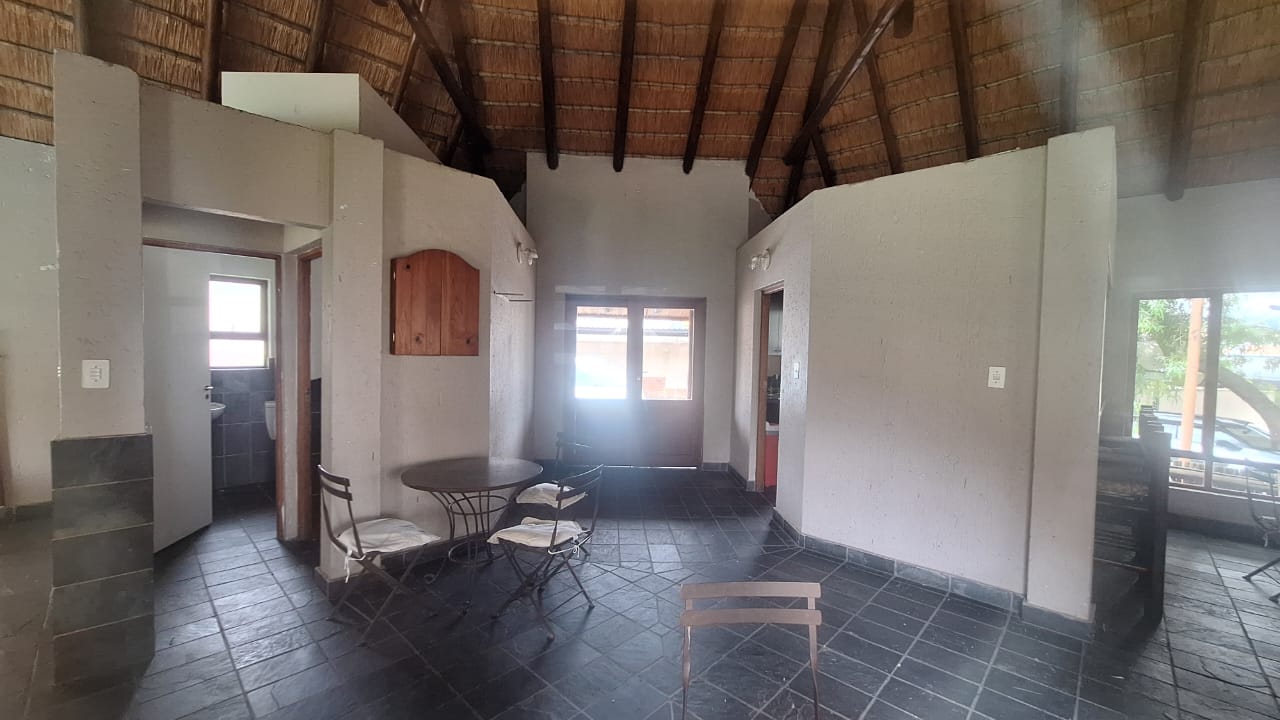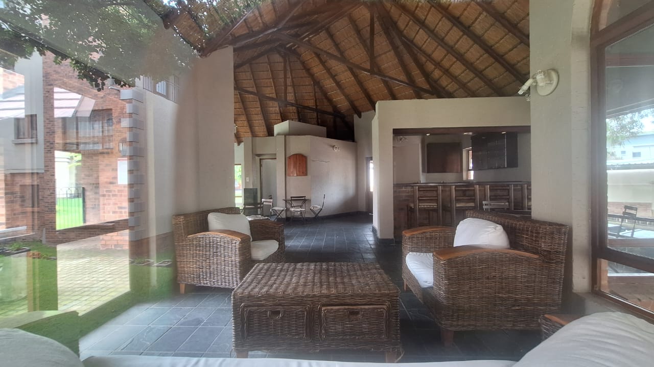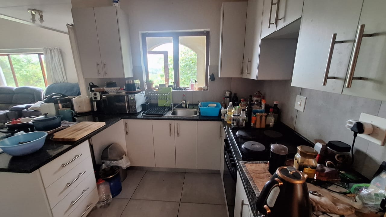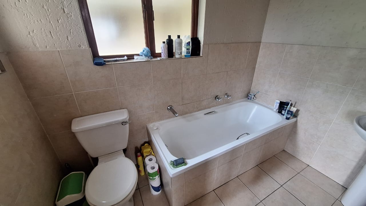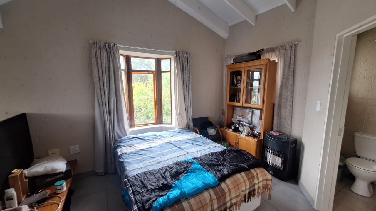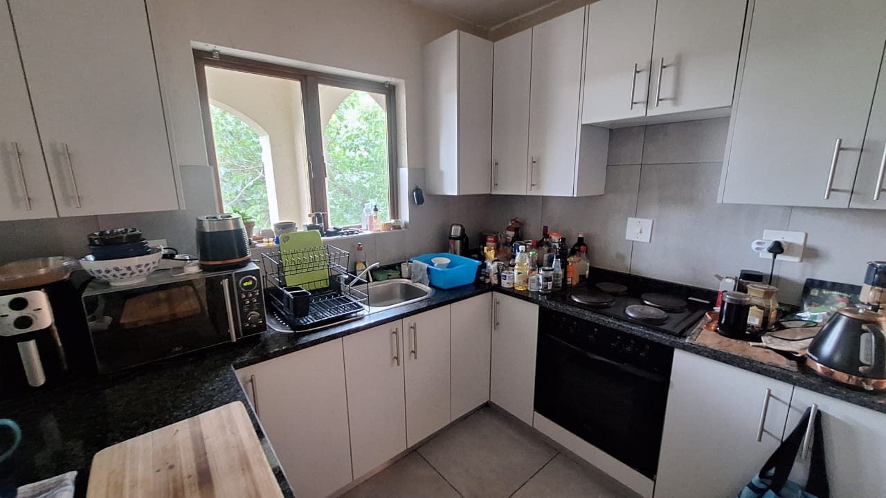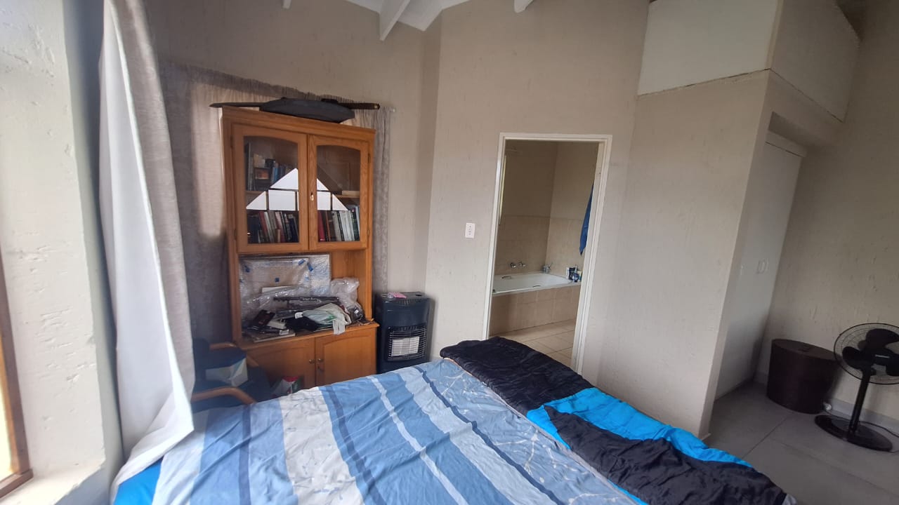 The open - plan lounge area creates a warm living space and flows out onto a charming balcony - ideal for enjoying your morning coffee or unwinding after a long day. Upstairs , you will find a spacious loft - style main bedroom offering privacy and comfort.The bedroom includes generous built - in cupboards for ample storage and an en -suite bathroom fitted with a bath { with curtain rail } , basin and toilet.