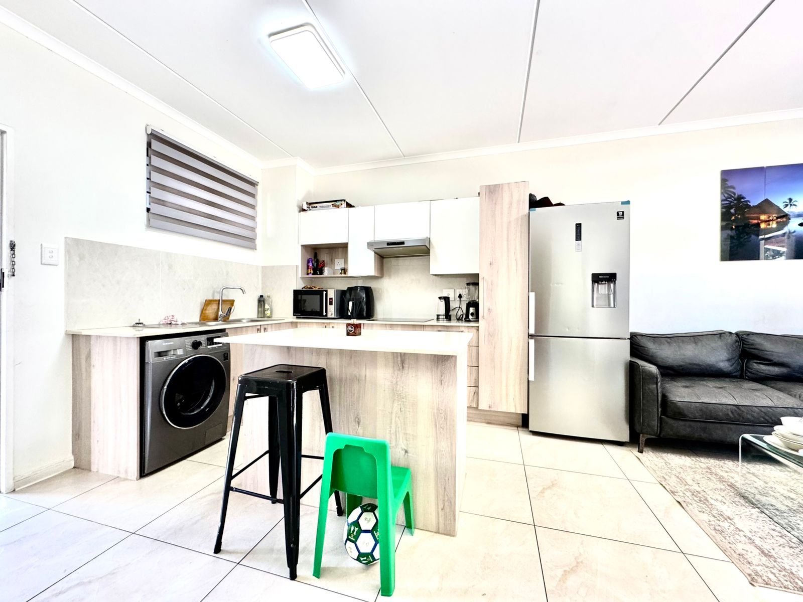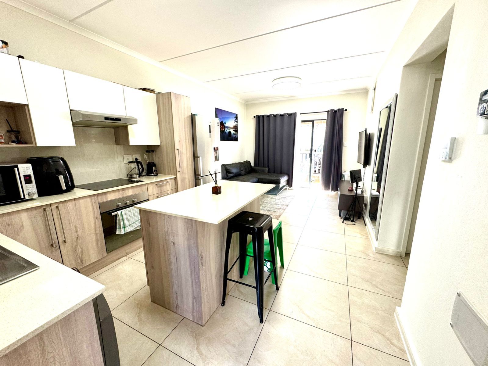 Step into a stylish open-plan layout featuring a modern kitchen with a center island, ample space for a fridge, and plumbing for a washing machine. The spacious lounge is perfect for relaxing or entertaining, while large windows invite natural light and views of your private, low-maintenance garden – the ideal spot for morning coffee or weekend unwinding.