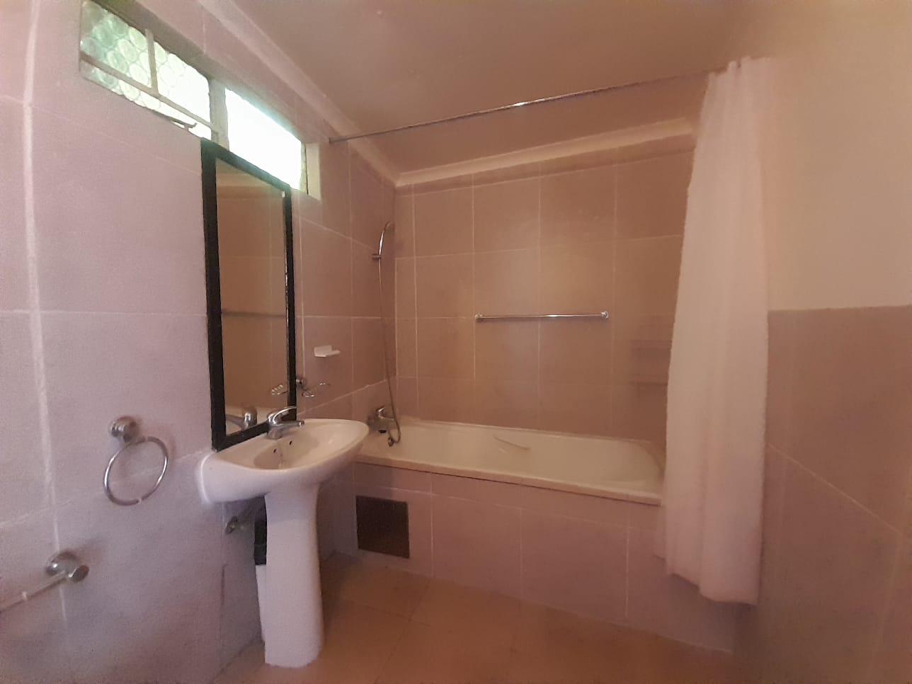 A well-sized kitchen fitted with ample cupboards, a breakfast nook, and space for a double-door fridge