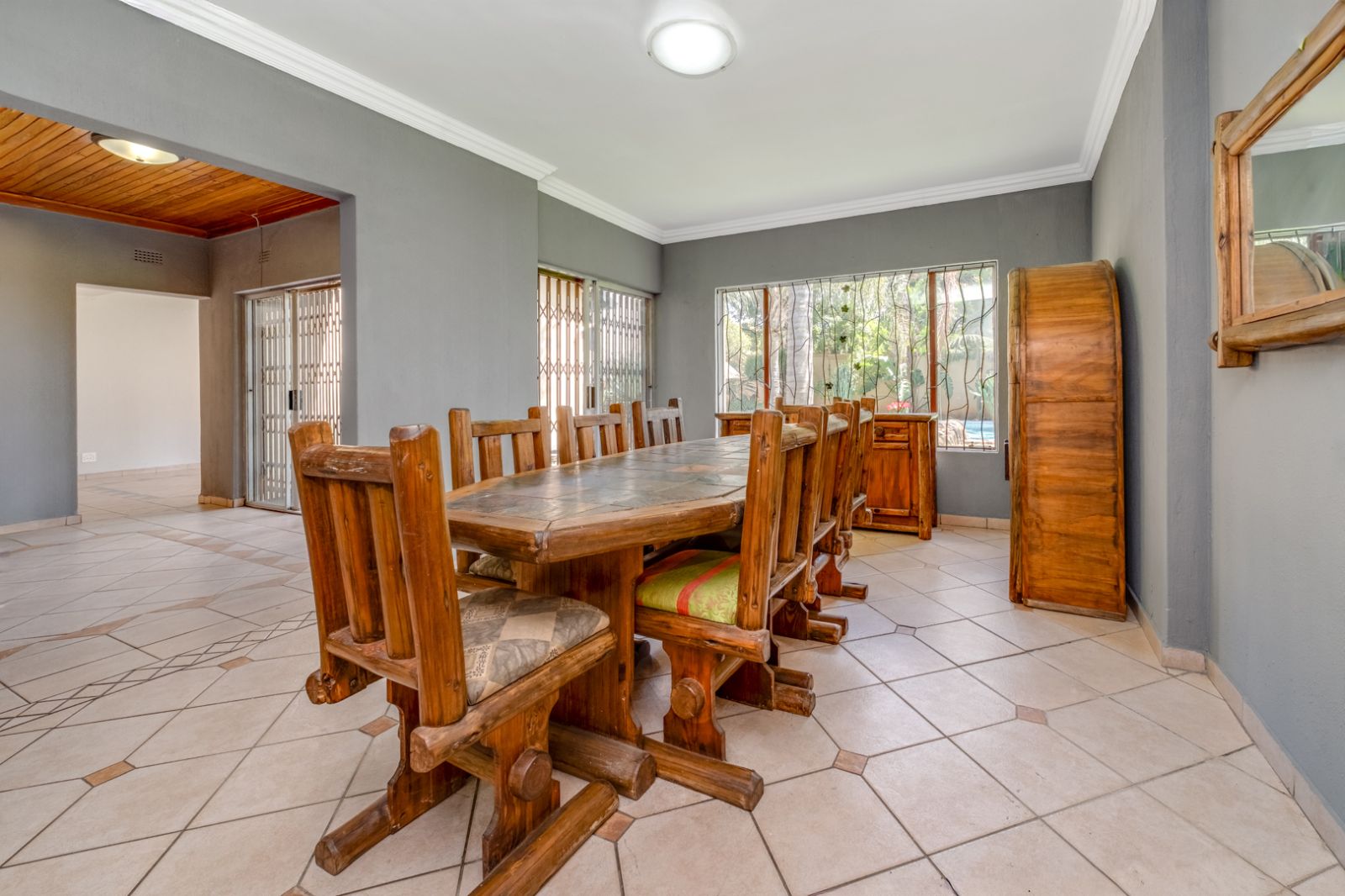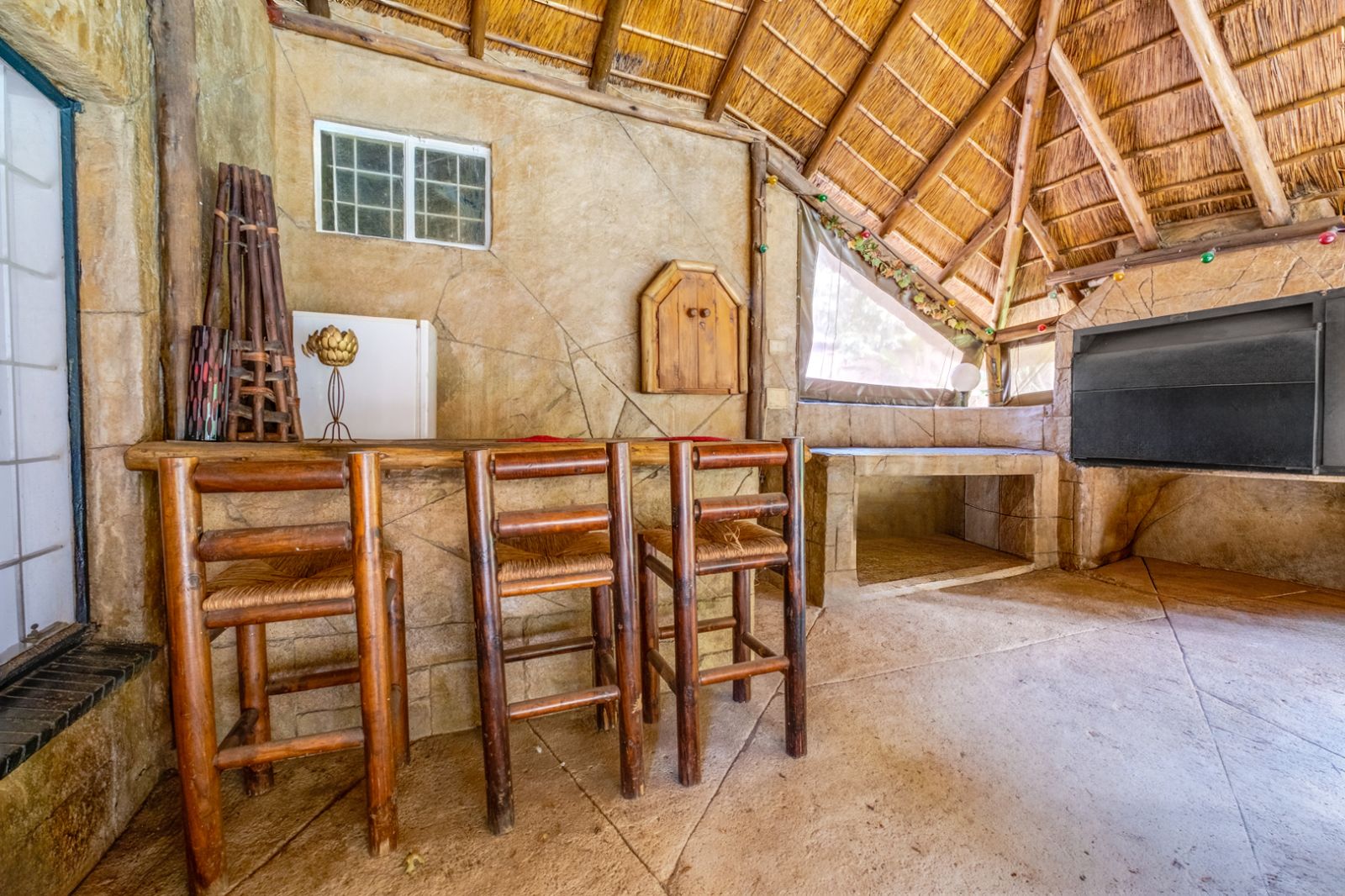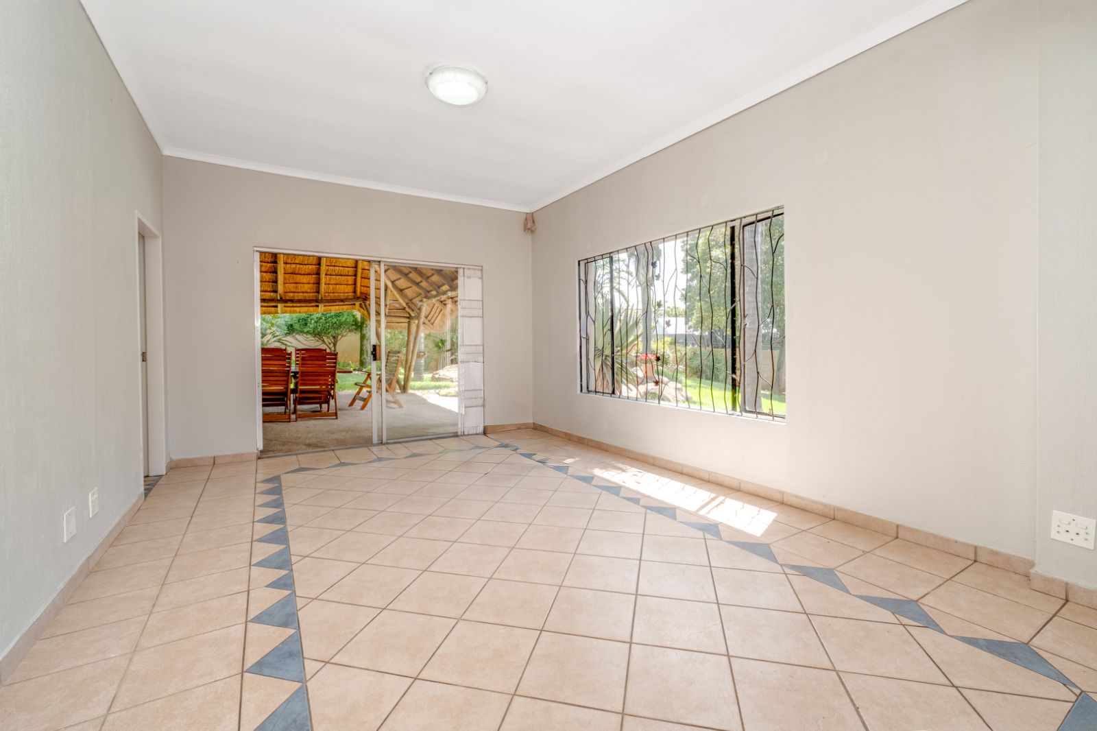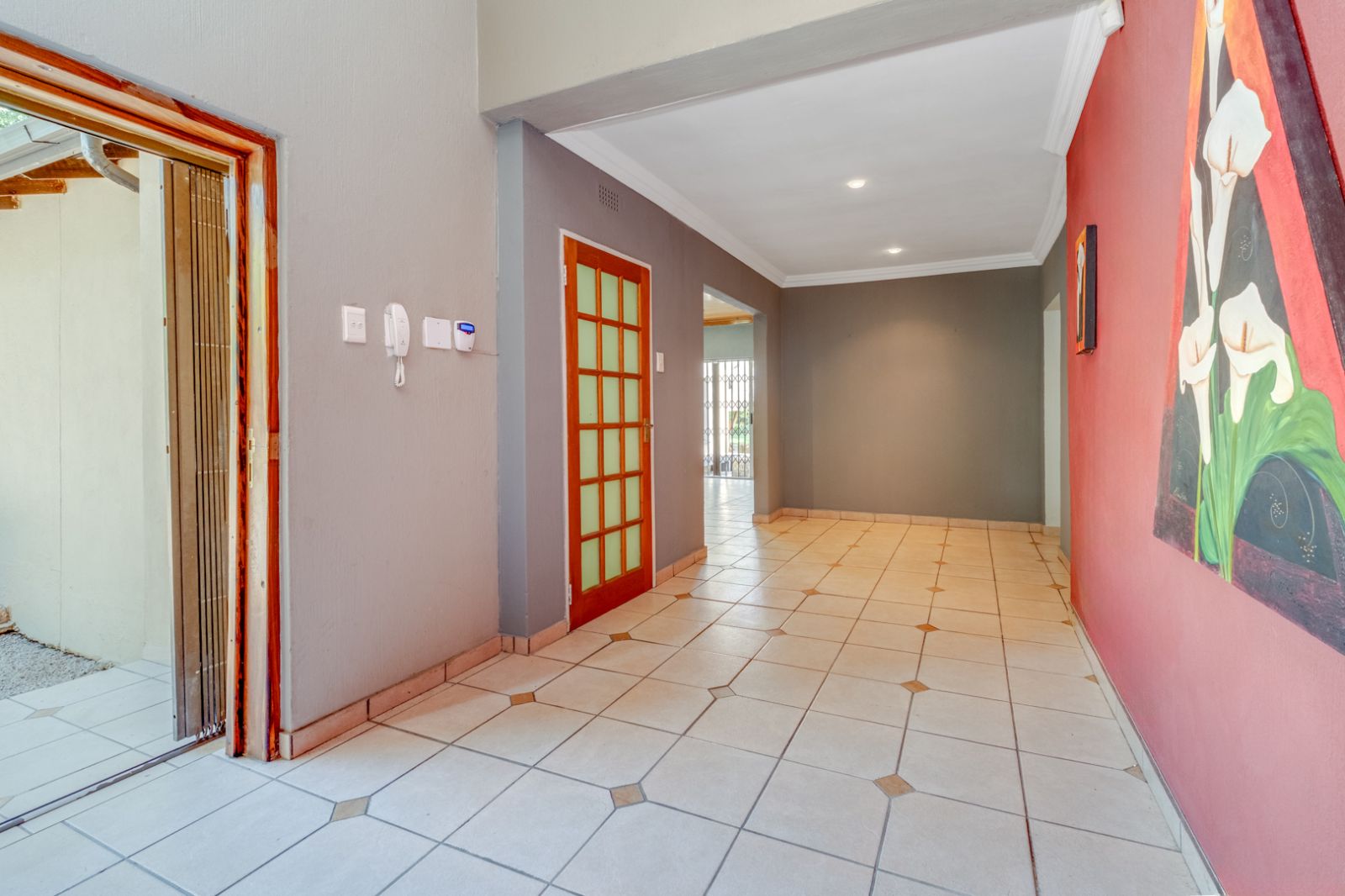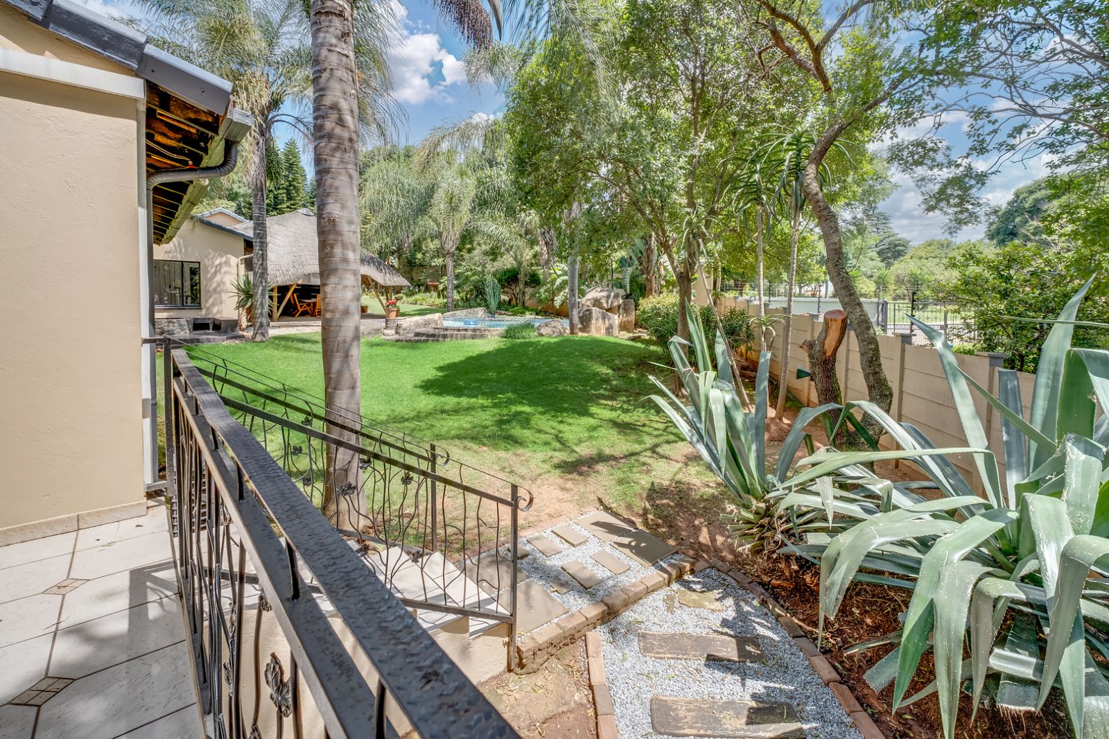 A standout feature of the property is the bespoke entertainment wing, offering a fully equipped bar, jacuzzi, and gas/wood built-in braai — an ideal setting for hosting in style. Outdoor living is equally impressive, with a resort-style pool, boma, and an elegant Lapa fitted with built-in electric braai with rotisserie, all set within a beautifully landscaped garden enhanced by tranquil water features.
