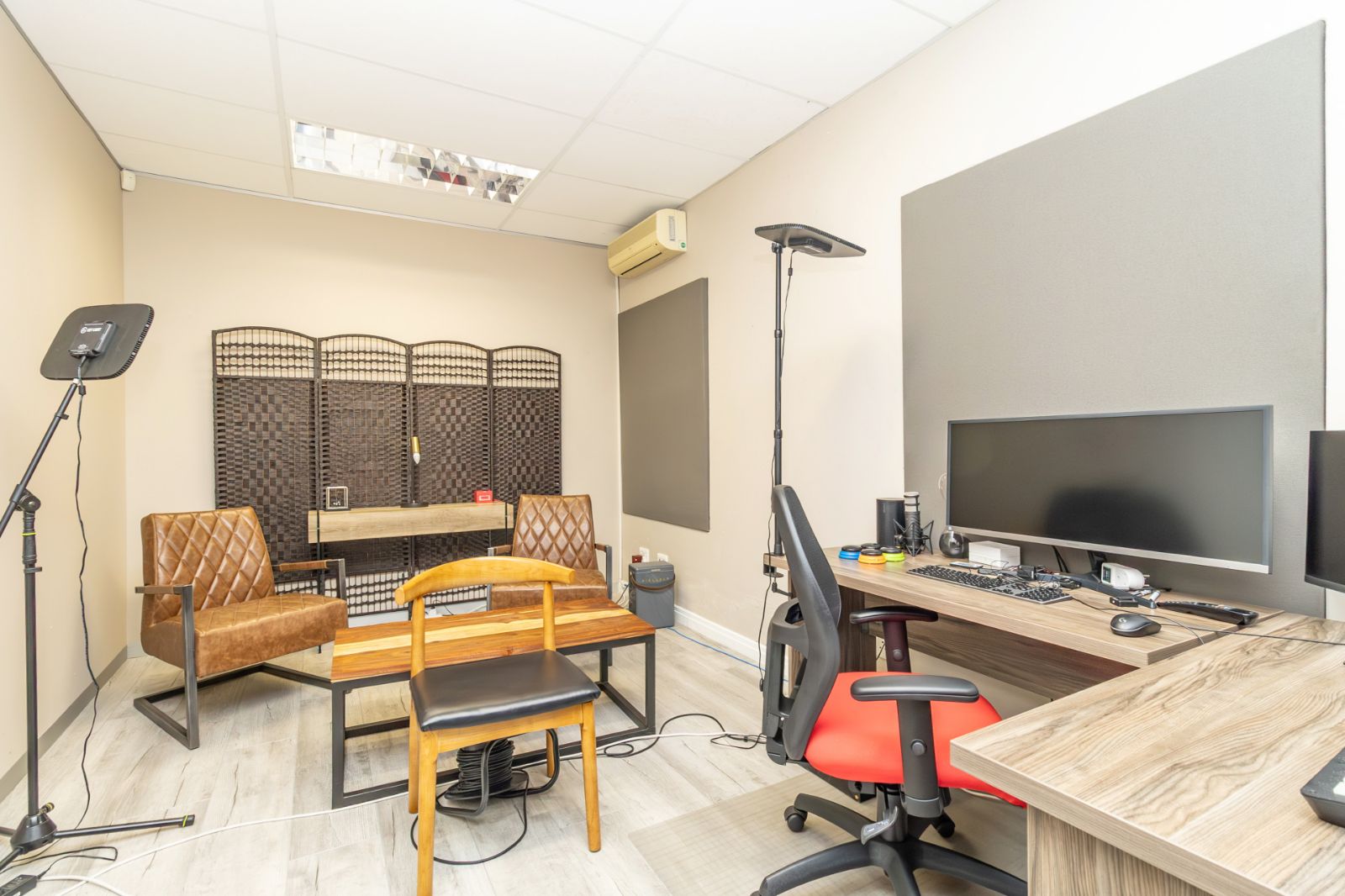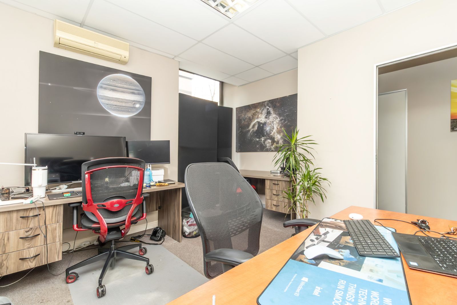 The office features a welcoming reception area, a spacious boardroom, open-plan work areas, and private offices – all designed with modern finishes to support productivity and comfort. Large windows allow for plenty of natural light, creating a bright and inspiring workspace.
