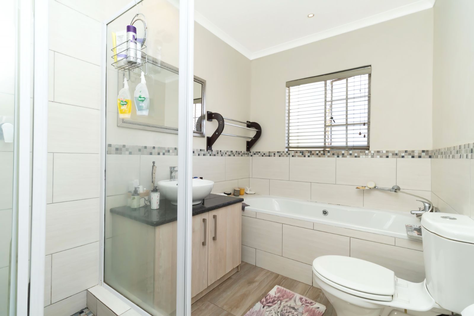There are three bedrooms and two bathrooms. The main bedroom has a modern en-suite bathroom with a shower, a bath, vanity and toilet. Two other bedrooms share a second bathroom with a bath, basin and toilet.