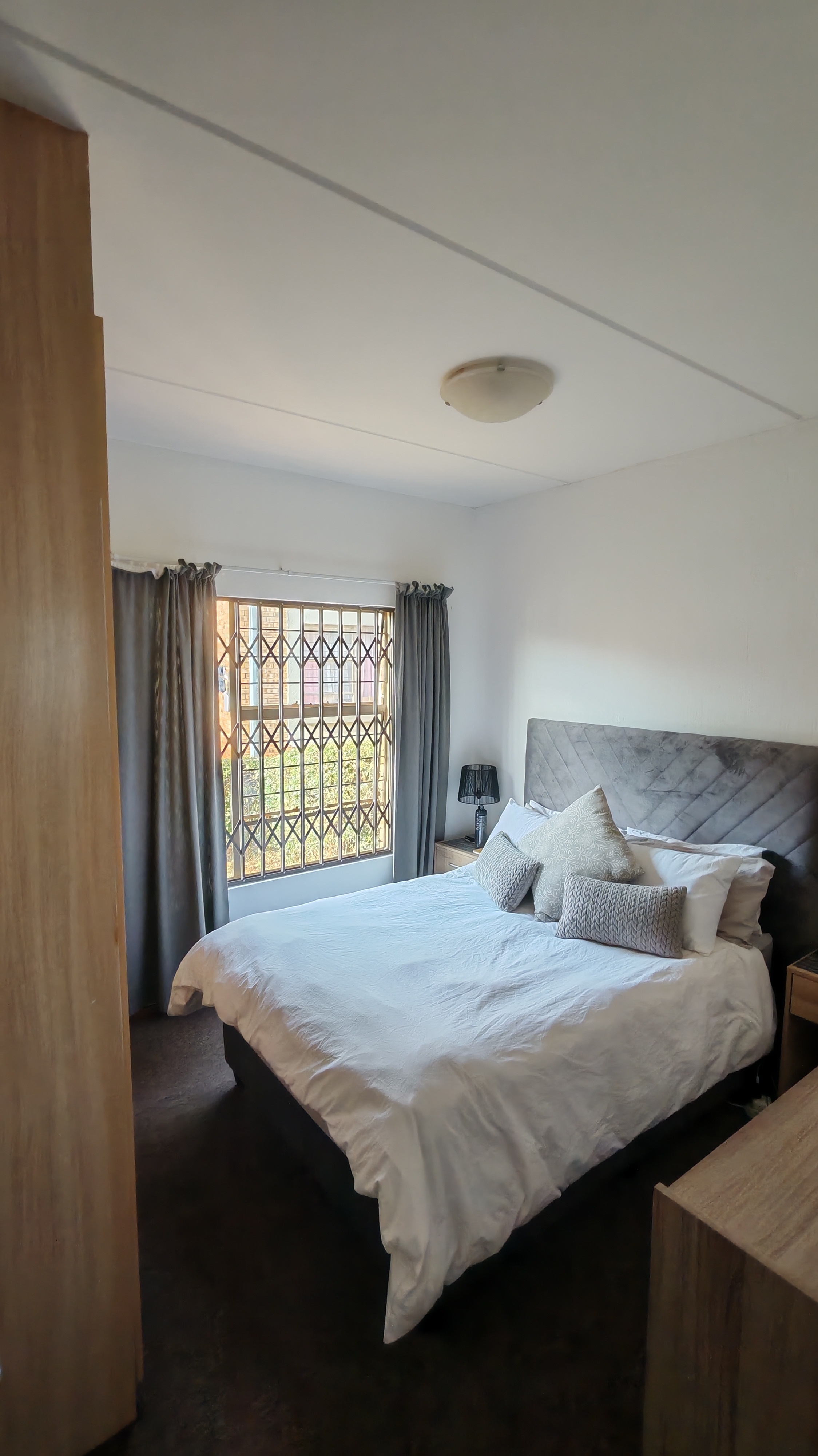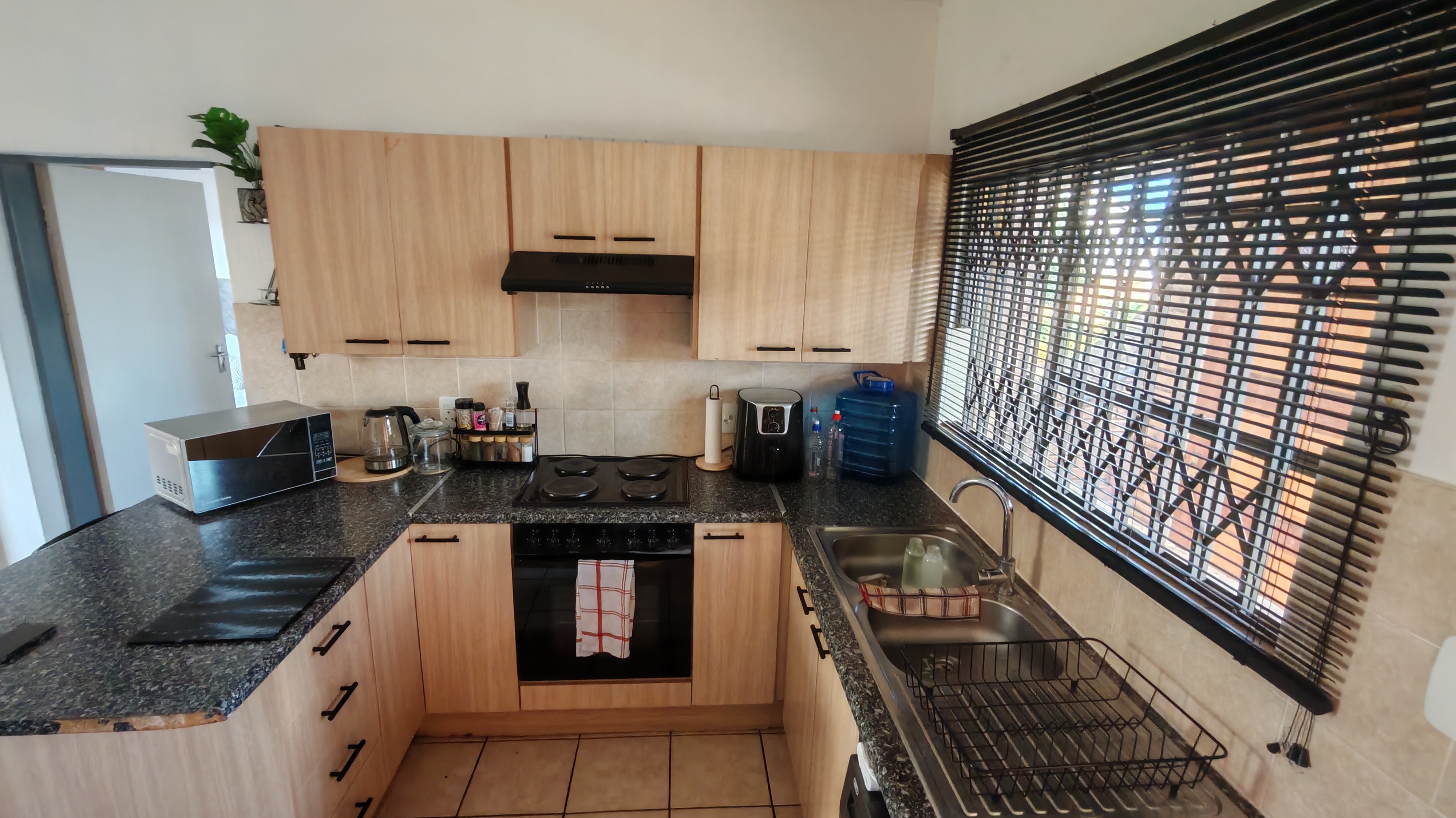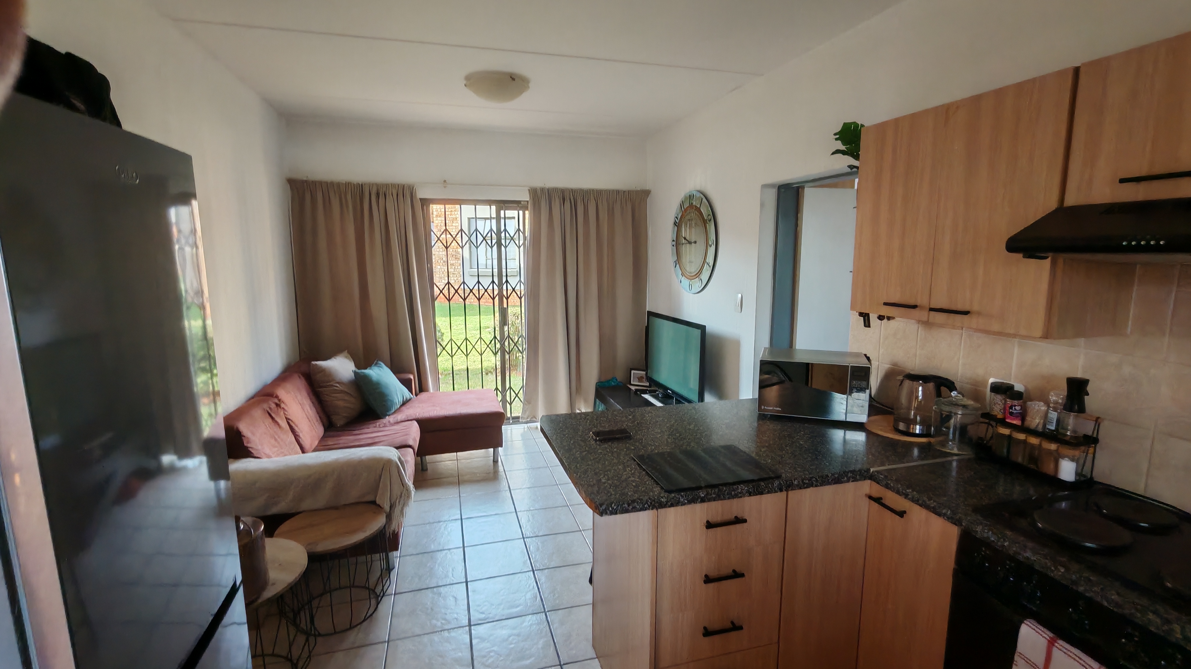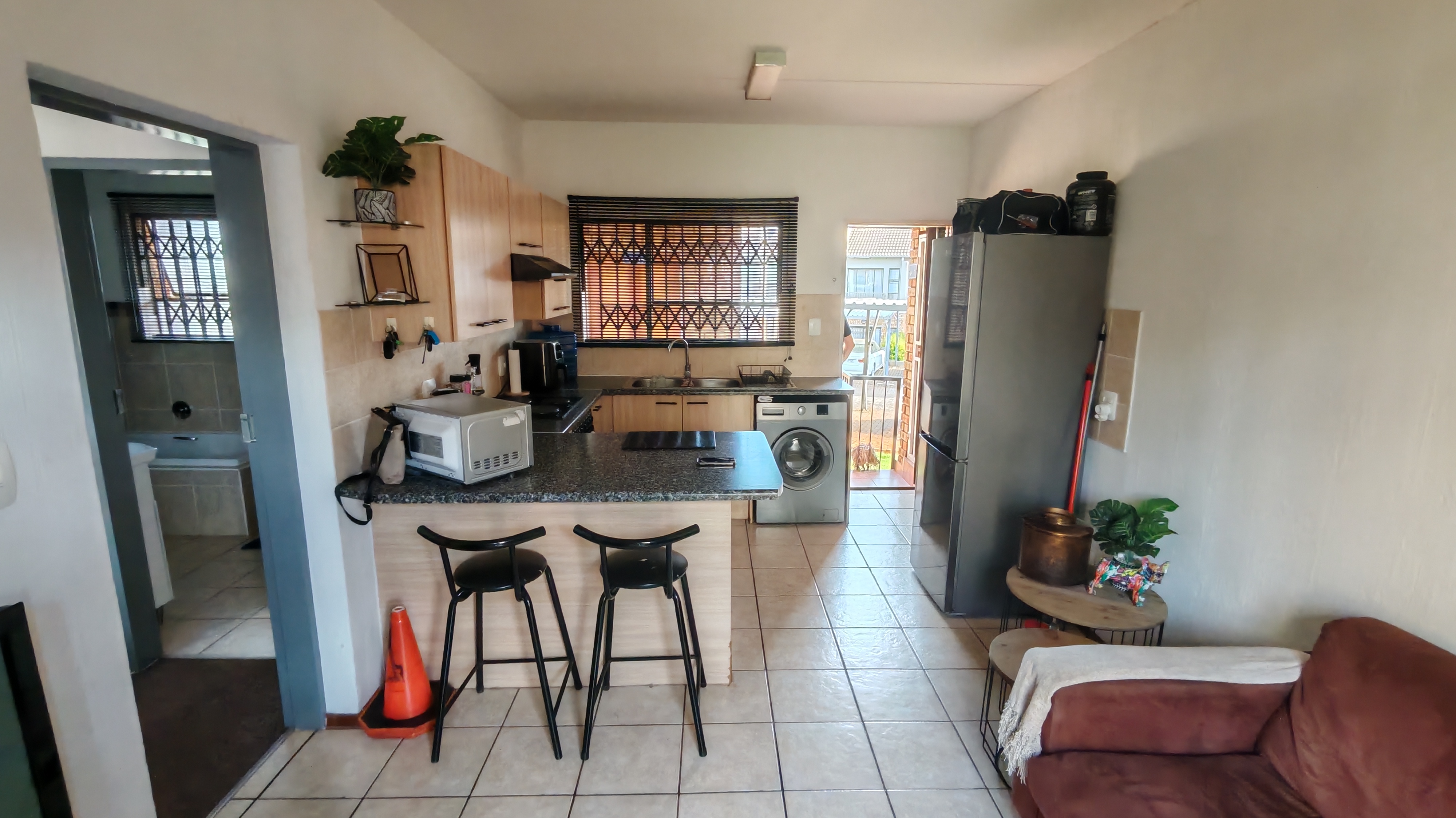 This is a safe, secure ground-floor unit, a 1-bedroom and 1-bathroom apartment in Rangeview, Krugersdorp.