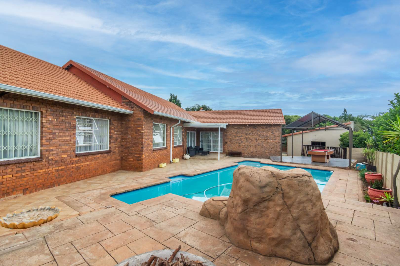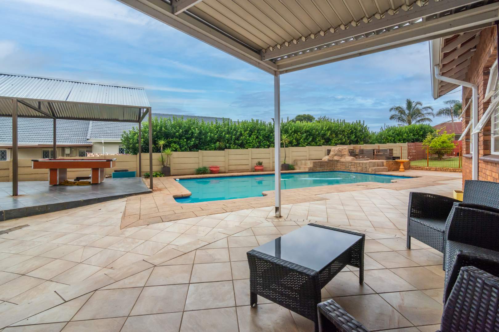 There is a double garage, carport suited for 4 cars and additional covered parking. This parking can be used as a external workshop or converted to a flatlet.