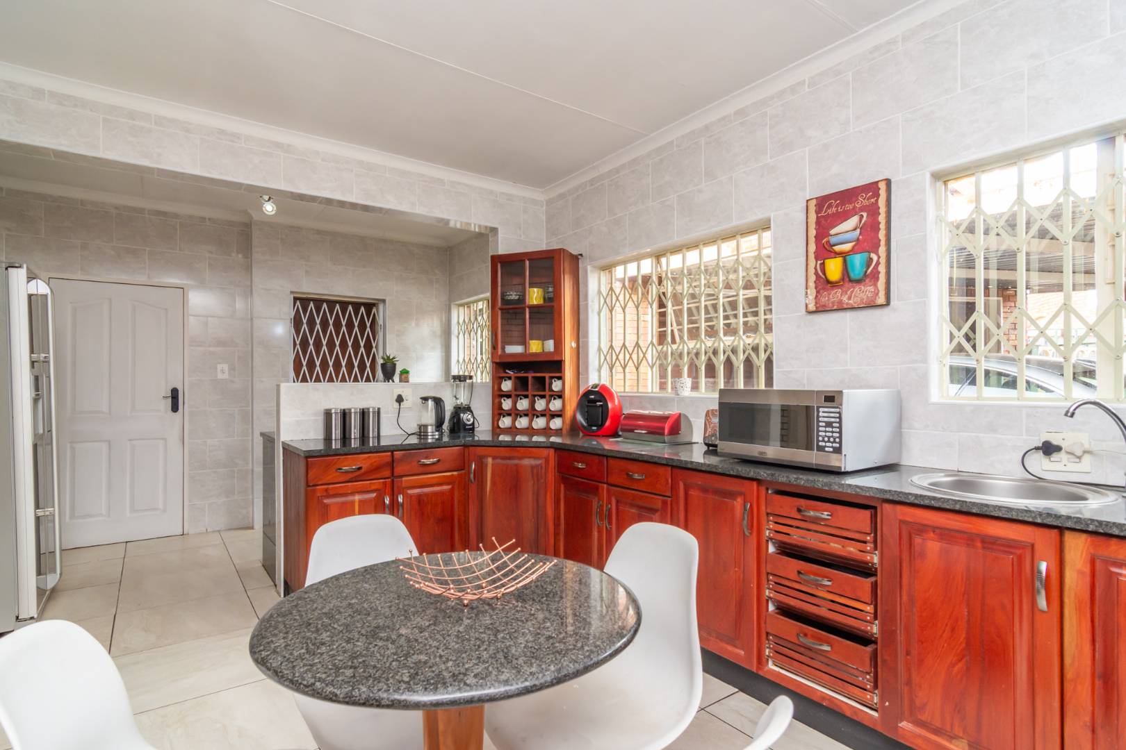 4 bedrooms with built in cupboards. All tiled.