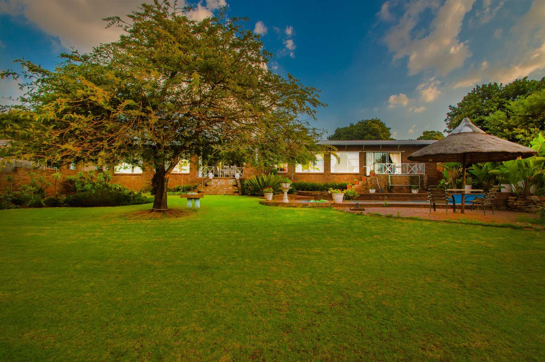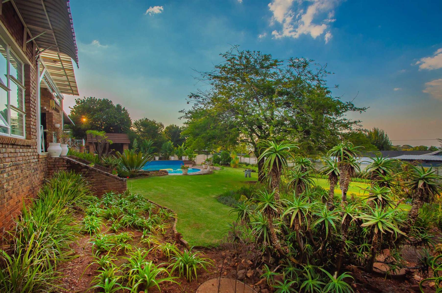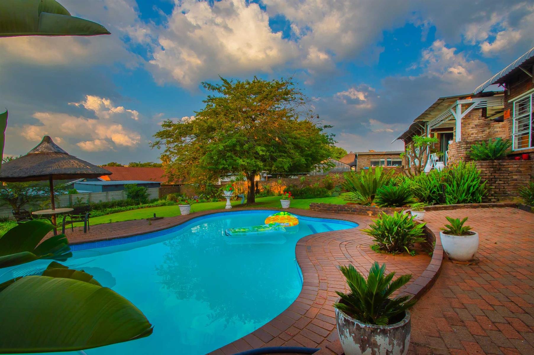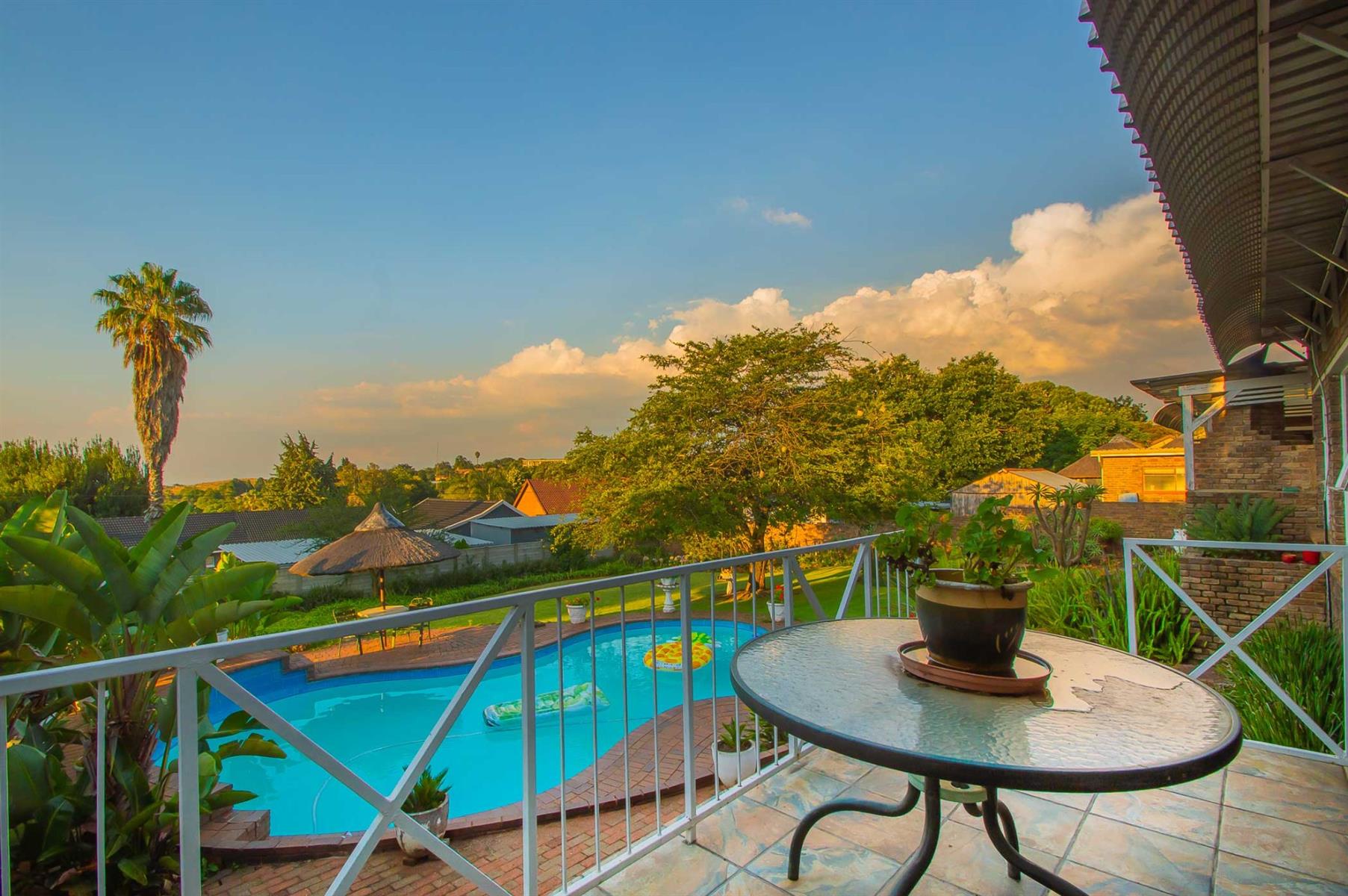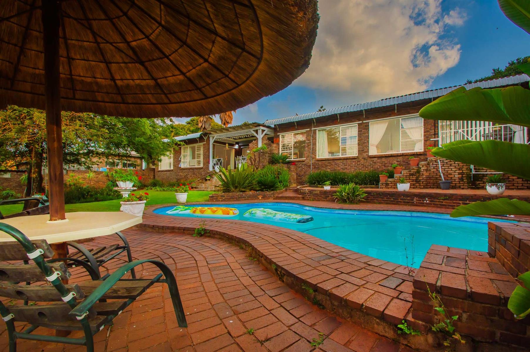 Additional features include a small tiled lapa next to the pool, a storage area beneath the main bedroom patio, and exceptionally neat domestic quarters with a separate shower and toilet.