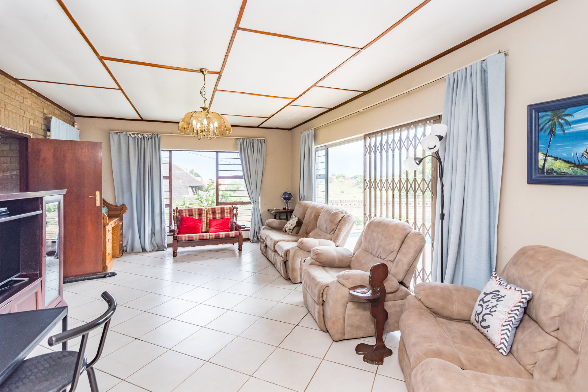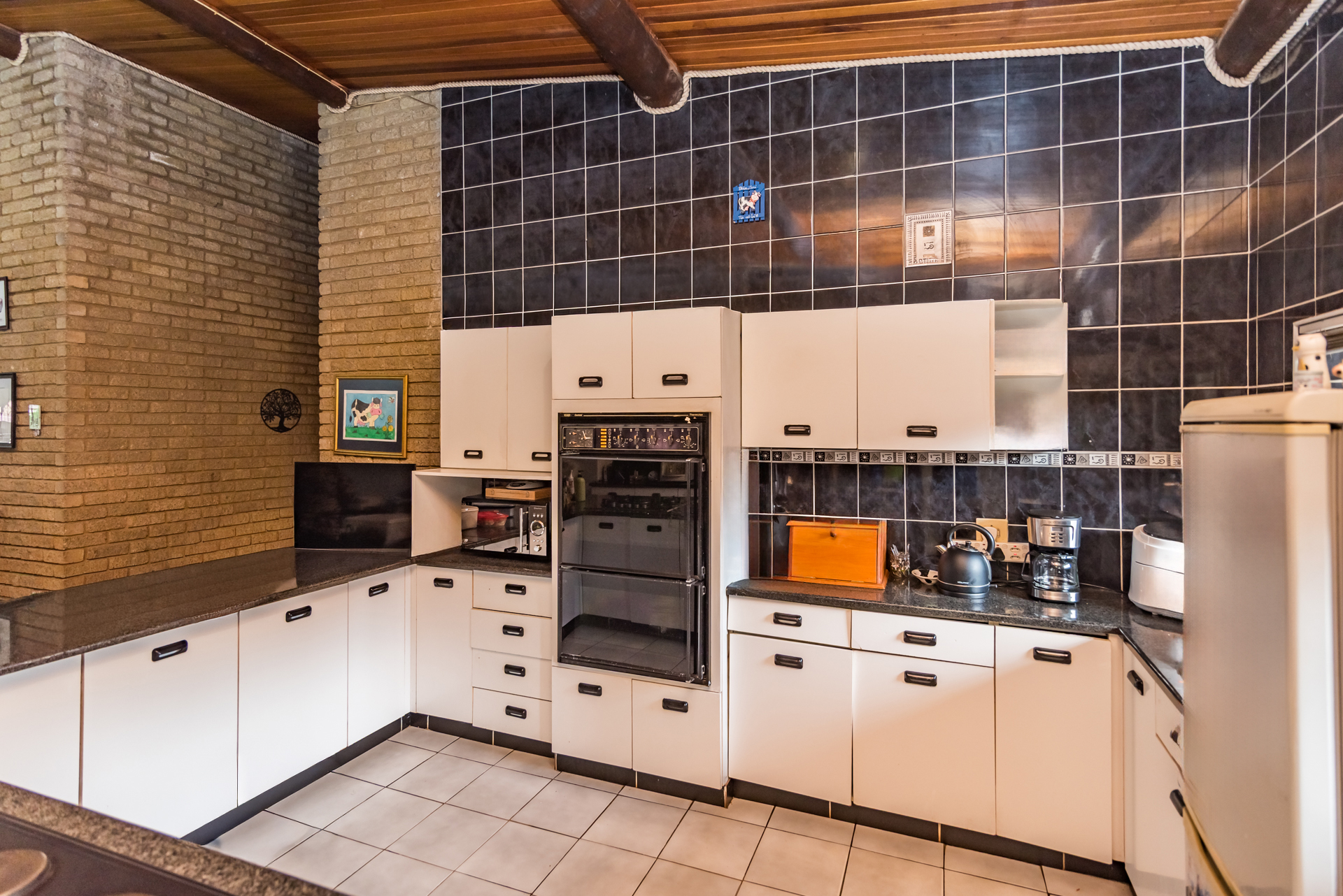 The large open-plan kitchen is complemented by a separate scullery, offering both practicality and ample workspace. Additional features include outside domestic quarters, double automated garages, and a carport, ensuring secure and convenient parking.