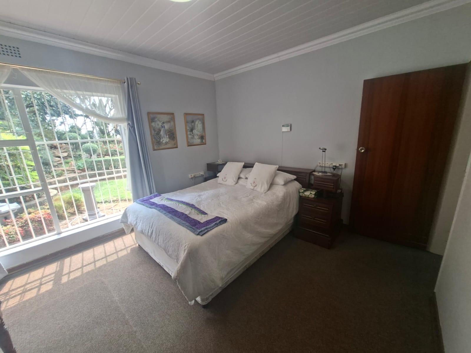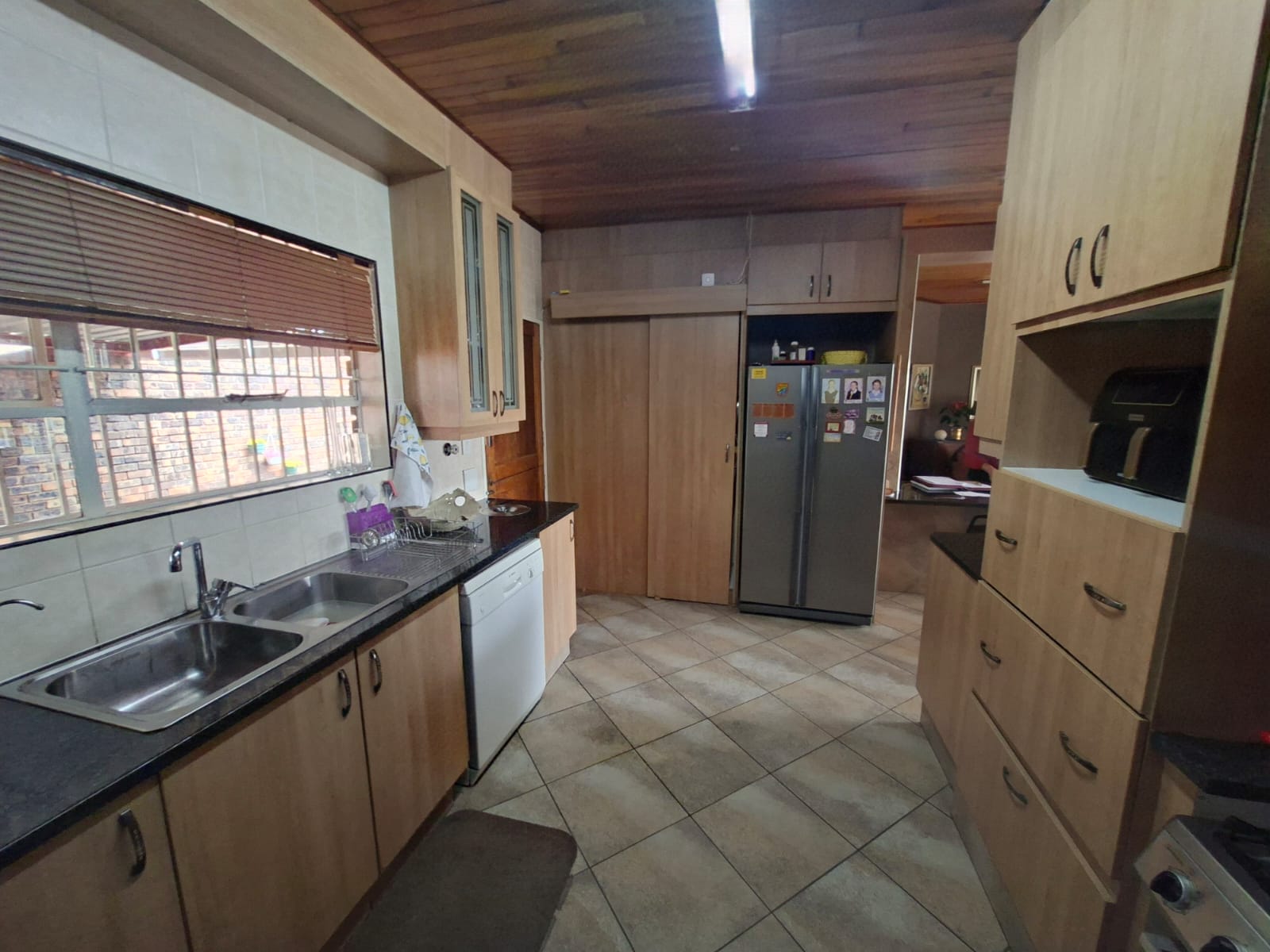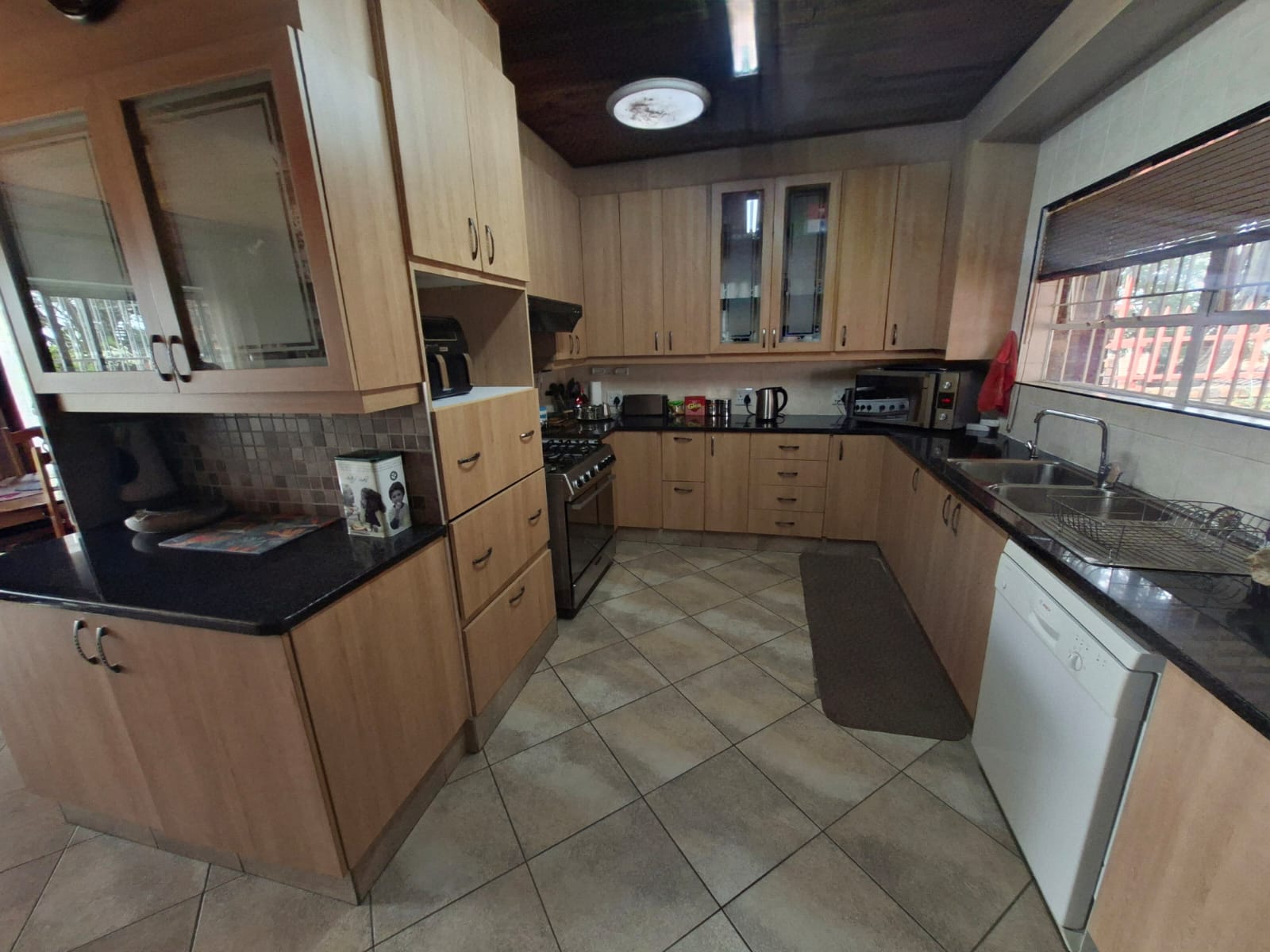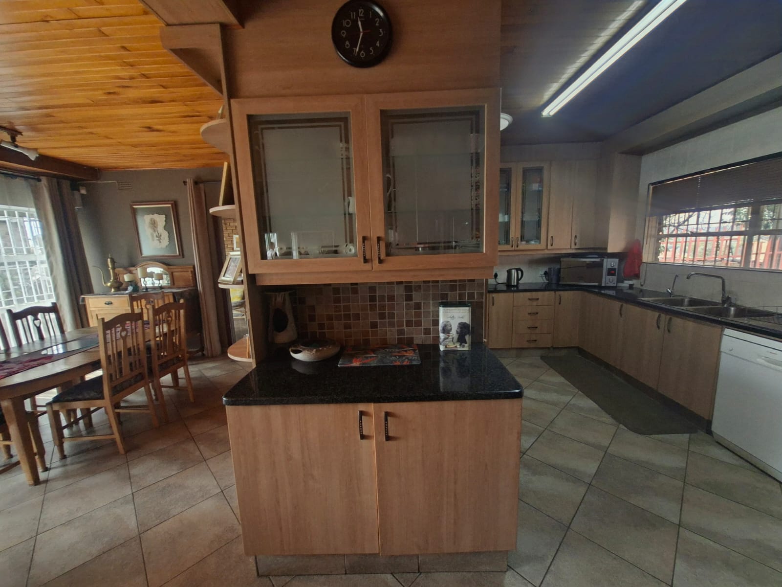 The property further includes a dedicated laundry area, storeroom, and staff quarters for added convenience. Entertaining is a delight, with sliding doors from the dining room opening onto a covered patio, while the lounge leads out to an expansive, landscaped garden. A thatched lapa with a built-in braai crowns this outdoor space, offering magnificent views.