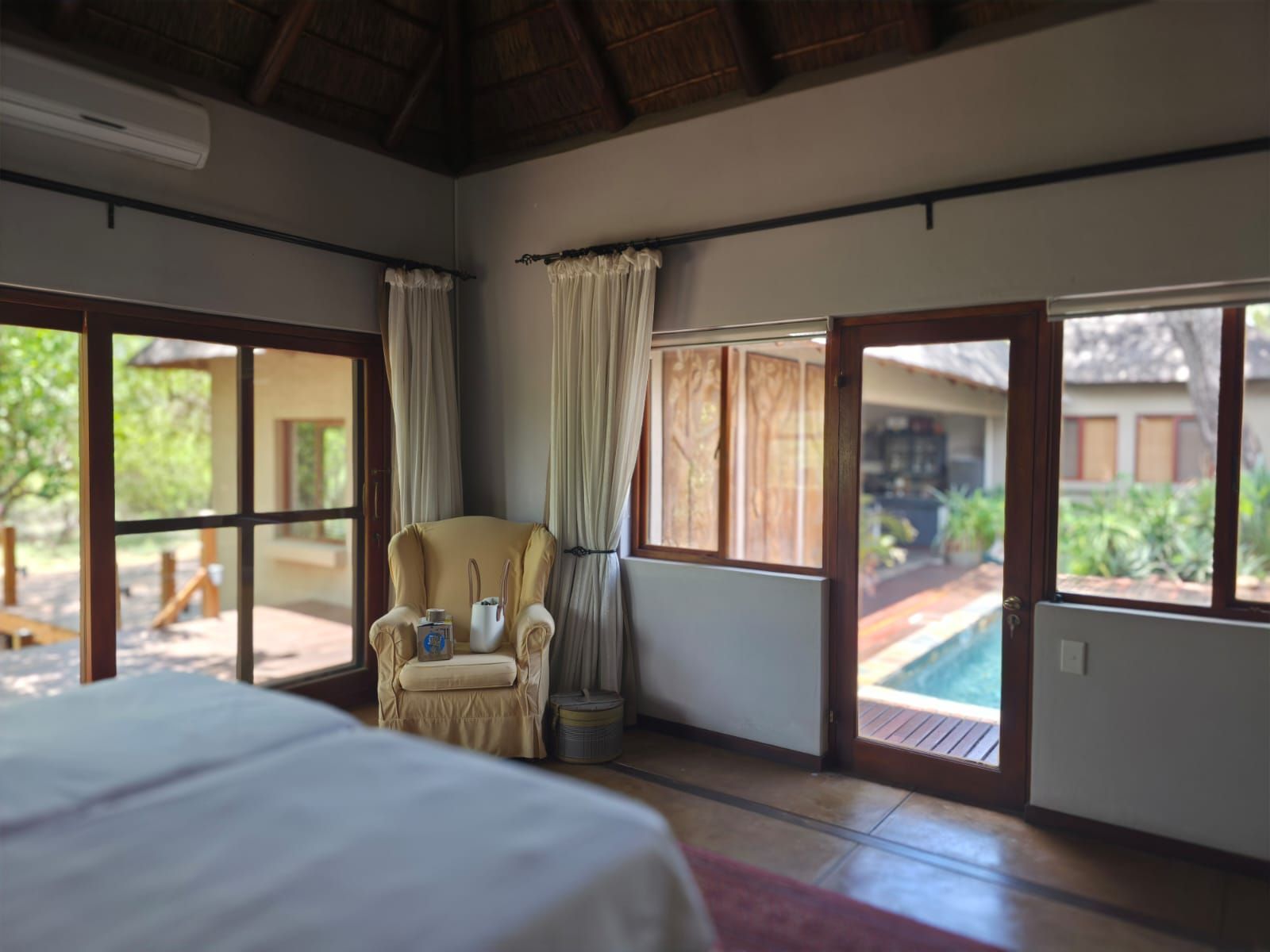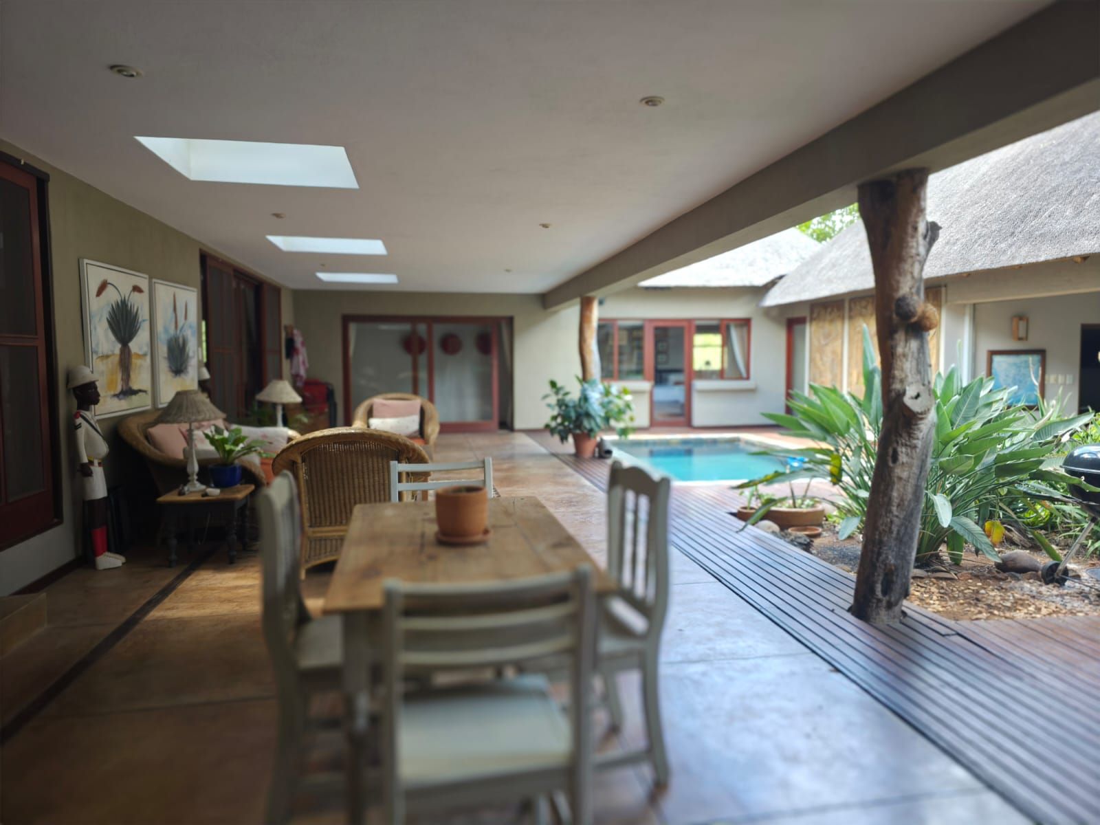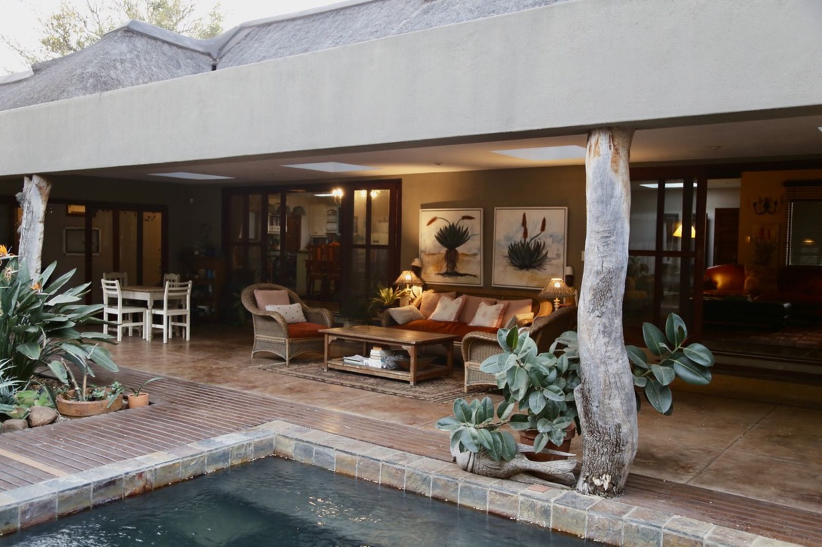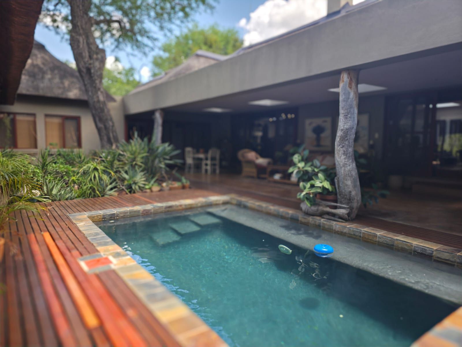 A sparkling pool completes the outdoor experience, offering a refreshing escape on warm Lowveld days.