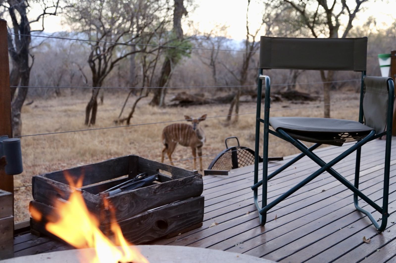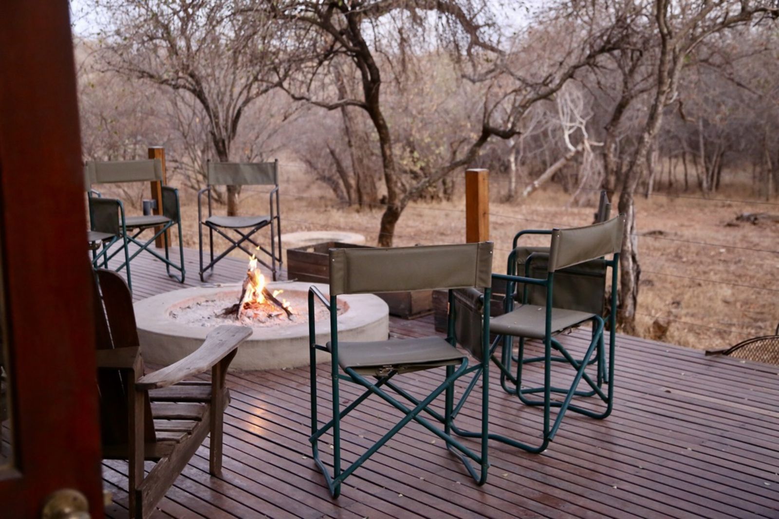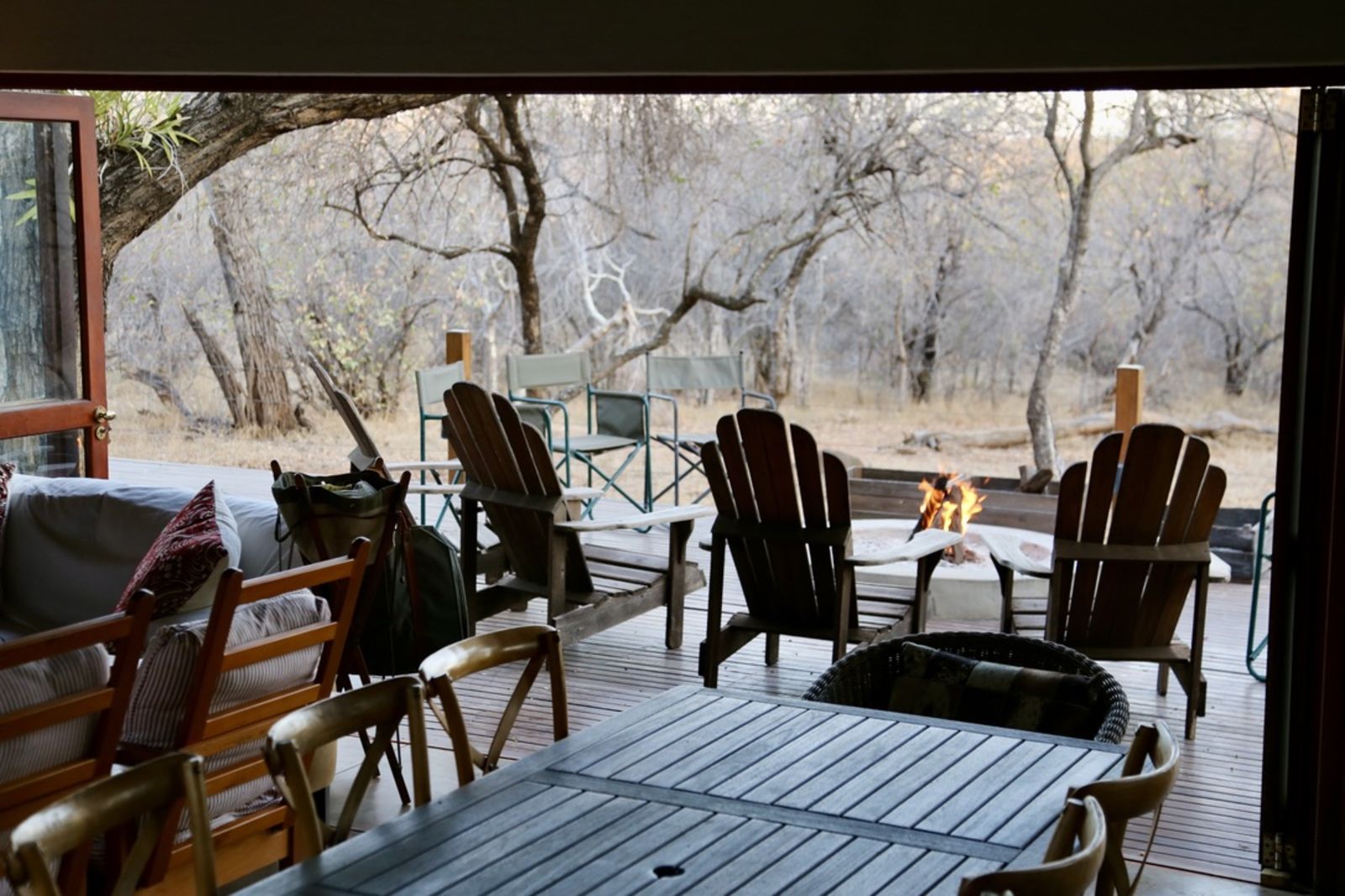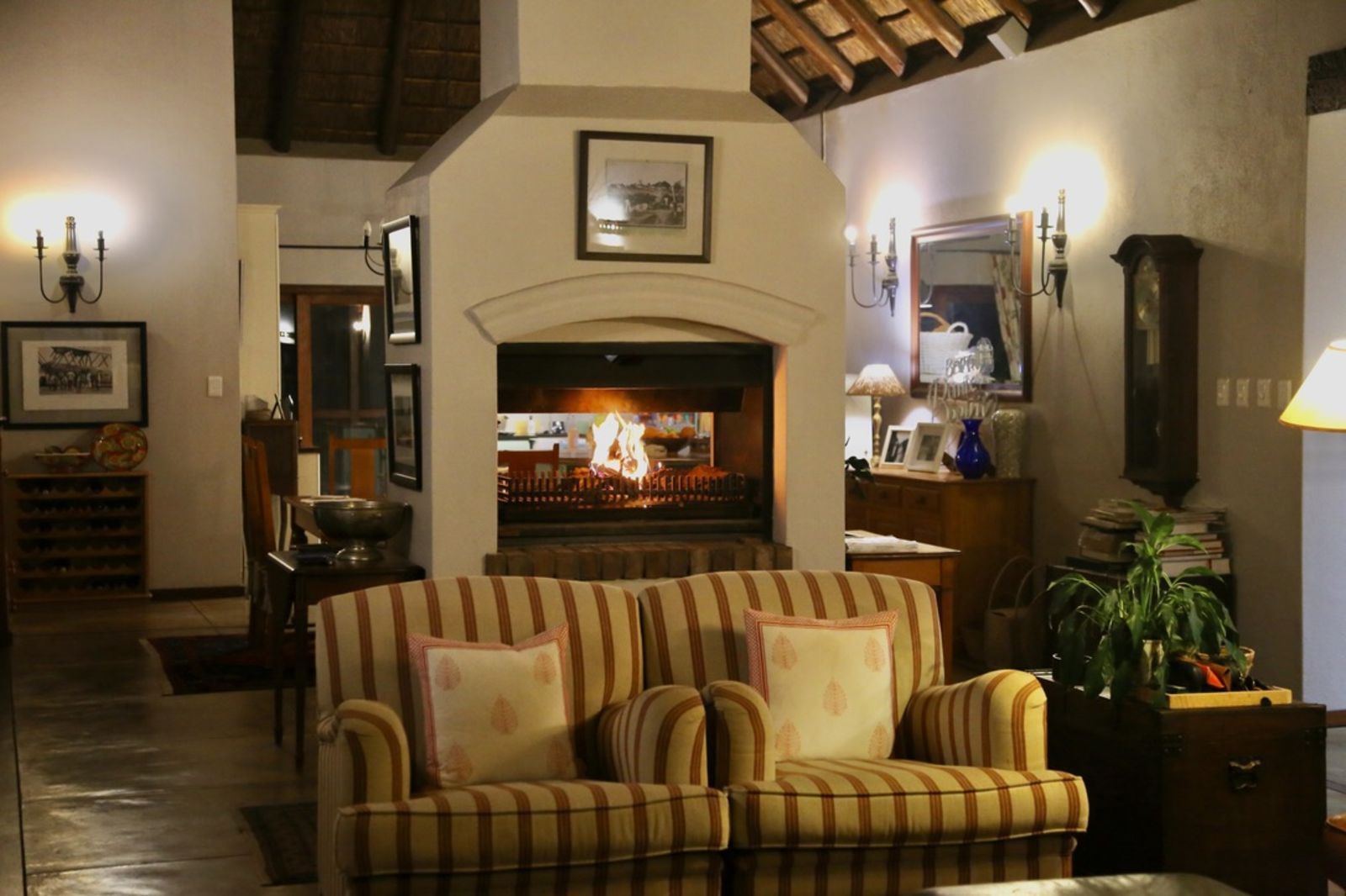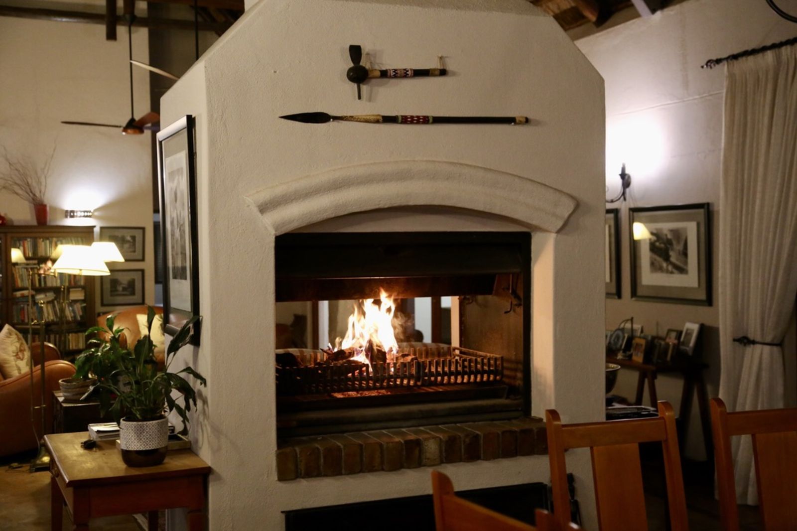Stacking doors open onto a generous outdoor entertainment area featuring an outside fireplace and sweeping bushveld vistas — the ideal setting for gatherings under the stars.