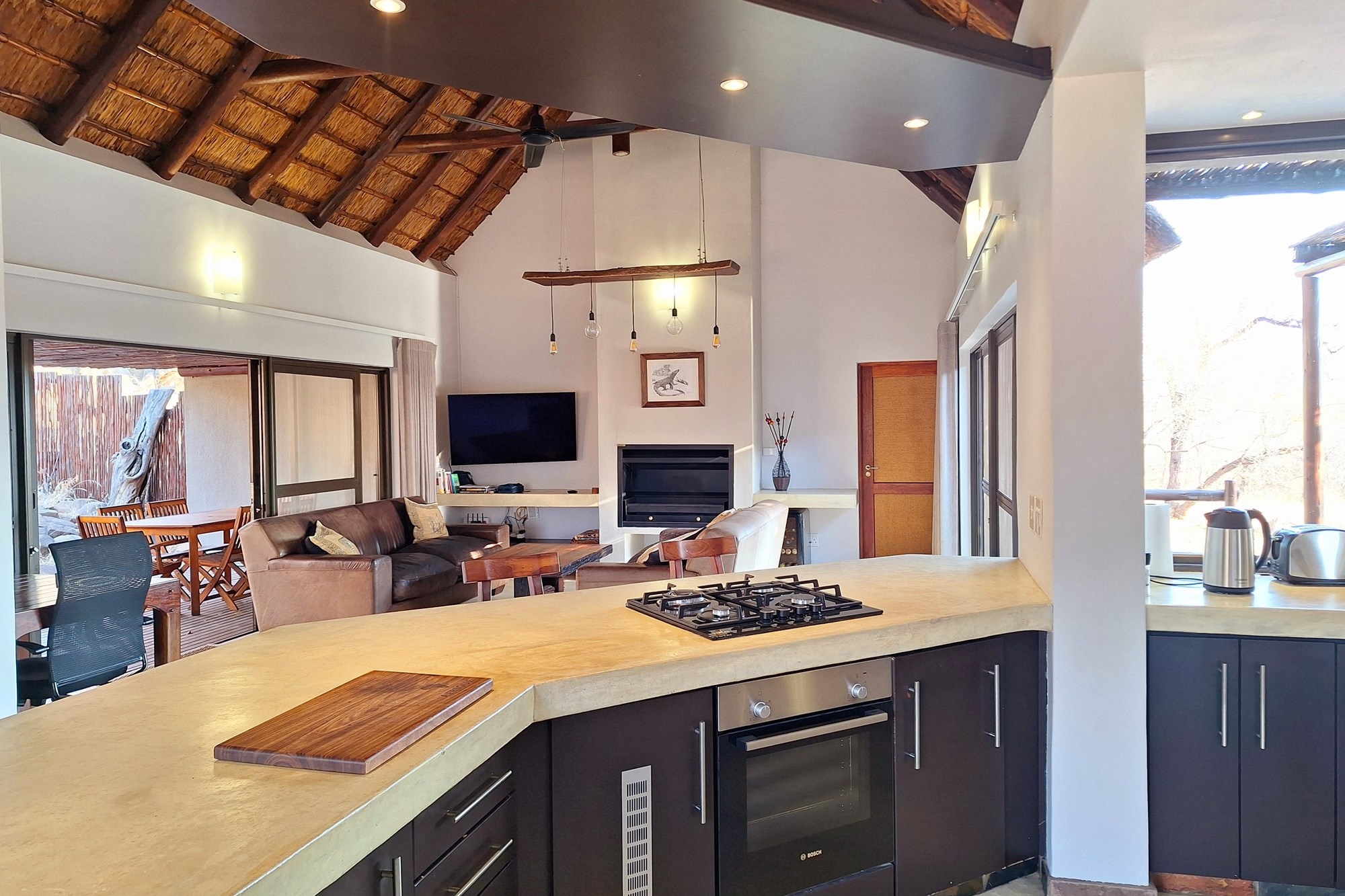 *Minimum 30 day rental* Welcome to your dream holiday home nestled within the serene beauty of Raptors View Wildlife Estate in Hoedspruit, Limpopo, South Africa. This brand-new rental opportunity, offers three spacious bedrooms (all windows and doors have mosquito screens) and two elegantly designed bathrooms, epitomizing modern comfort and style. Stepping into this bushveld home, you`ll be captivated by its seamless blend of contemporary design and natural surroundings. Super fast fibre optic broadband makes remote work a breeze.