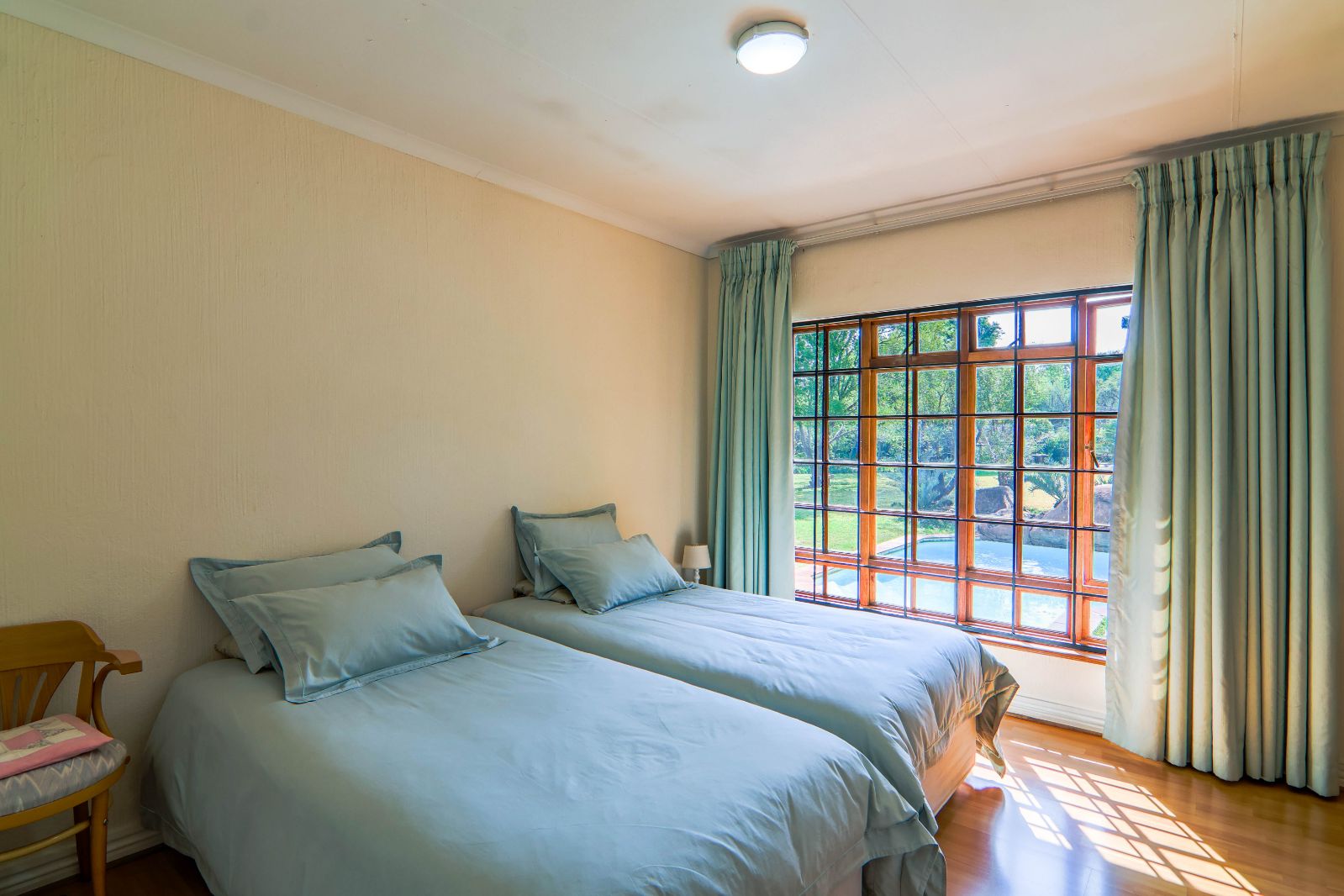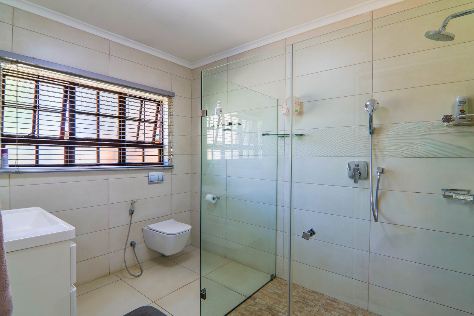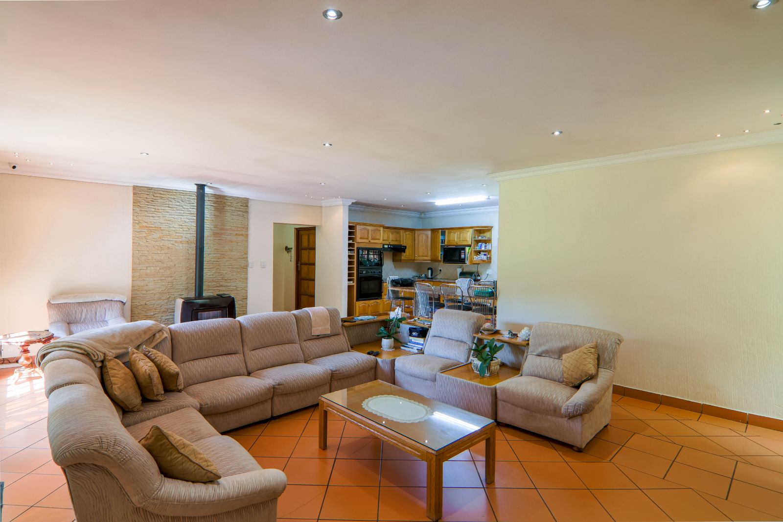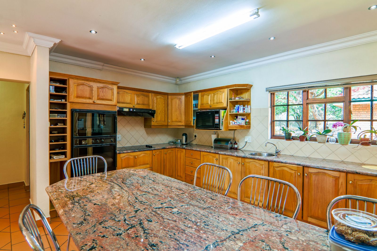 The open-plan kitchen is positioned next to the family room and leads directly to a beautiful braai area, an entertainer’s dream. The kitchen is well-equipped with both an electric and gas stove, oven, and prep bowl. A separate scullery provides ample space for all your appliances and includes a laundry basin. Adjacent to the kitchen is a versatile storeroom that can be used for multiple purposes.