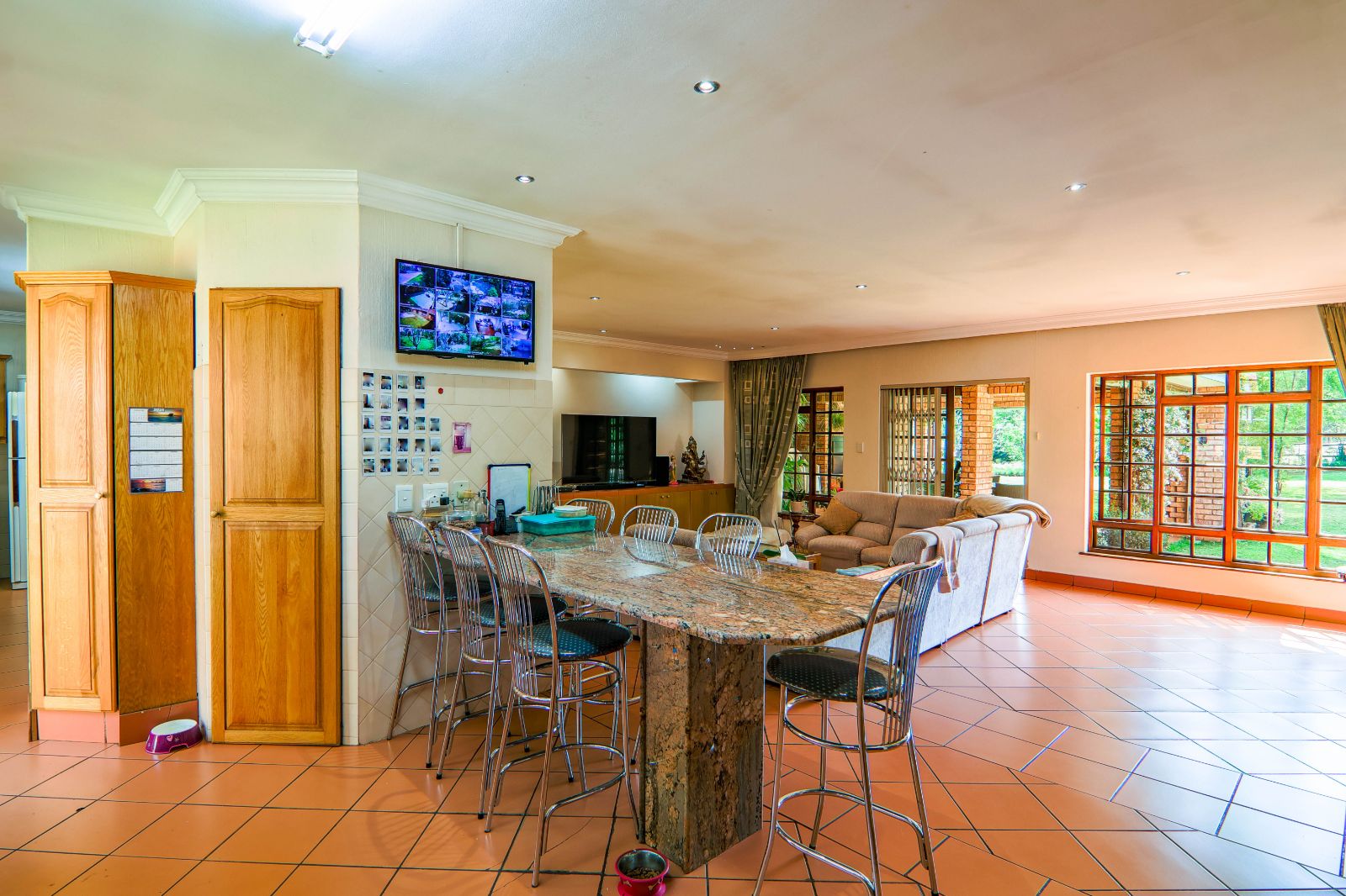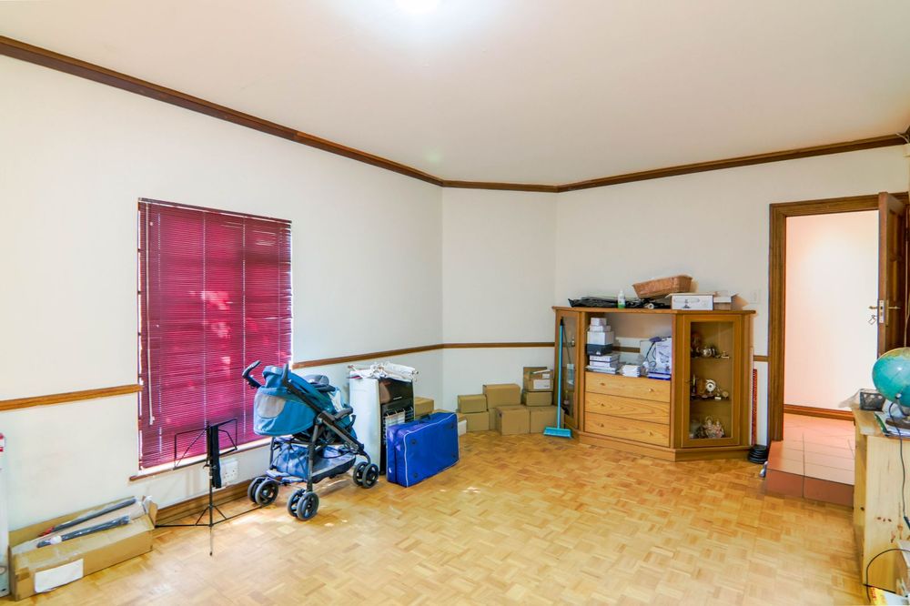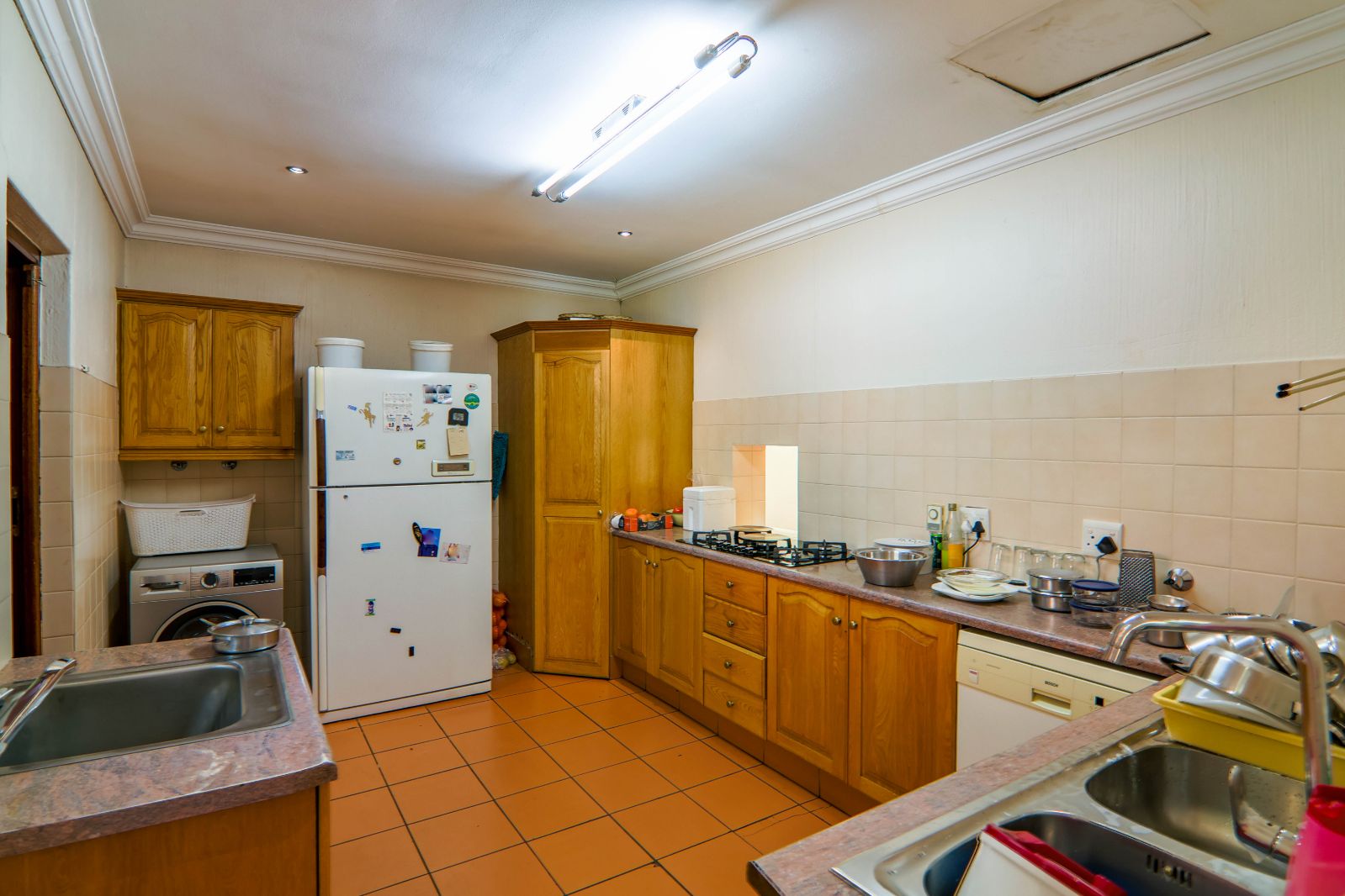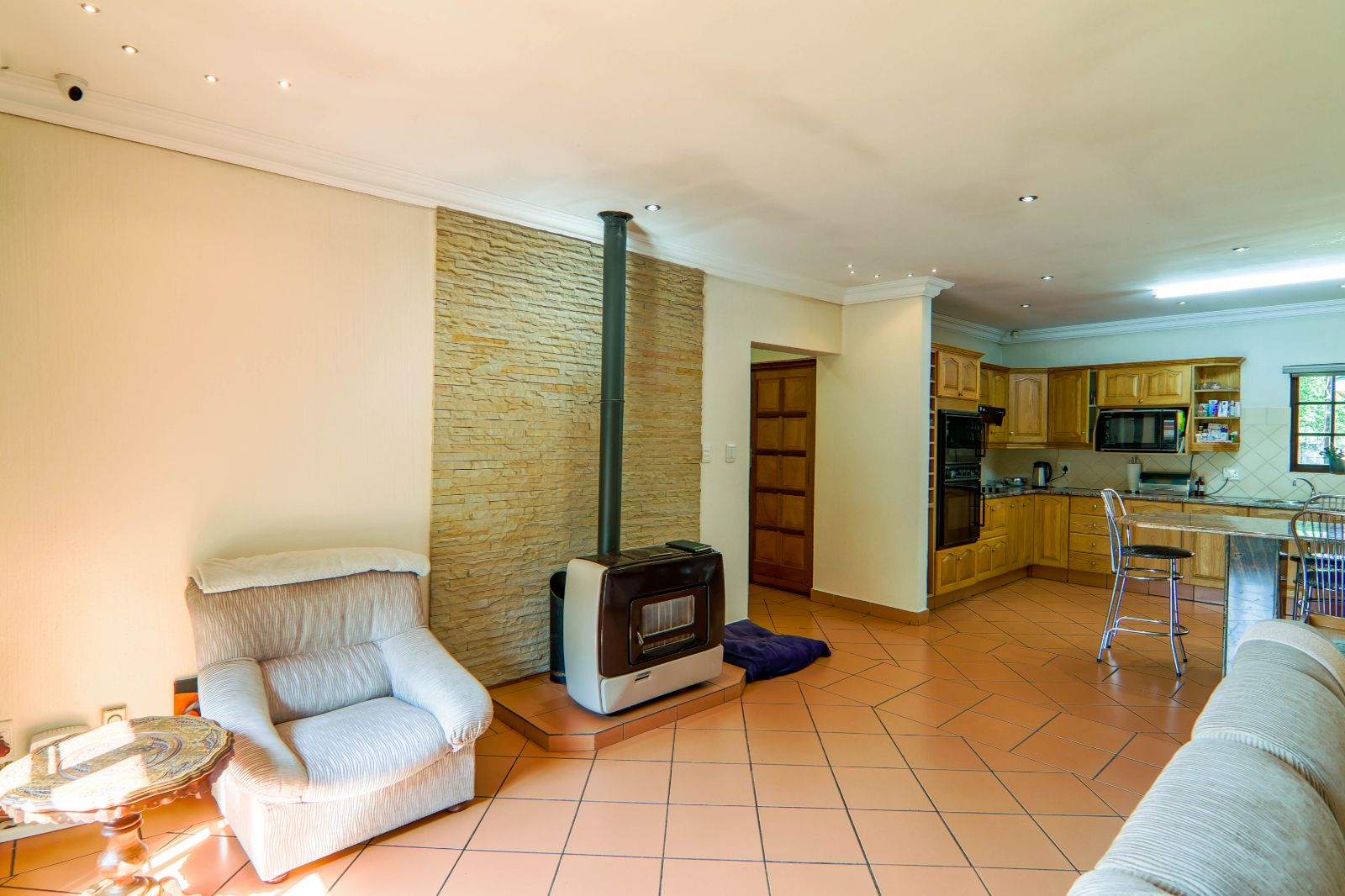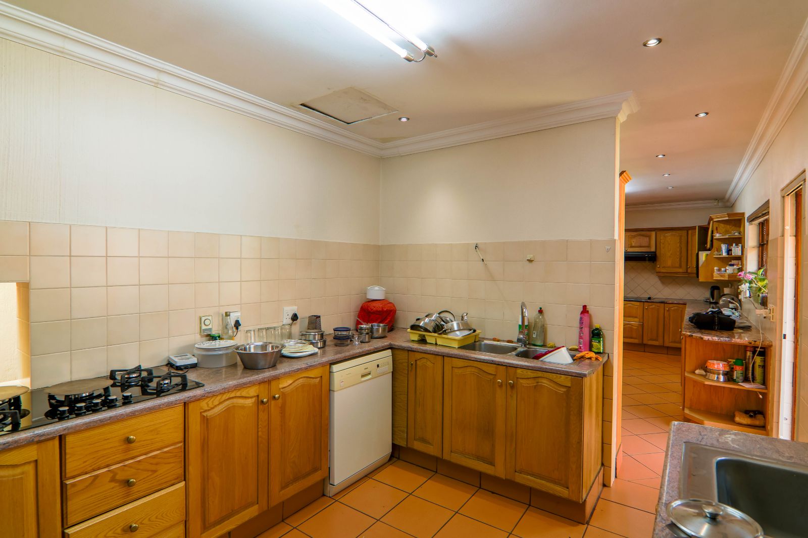 The open-plan kitchen is positioned next to the family room and leads directly to a beautiful braai area, an entertainer’s dream. The kitchen is well-equipped with both an electric and gas stove, oven, and prep bowl. A separate scullery provides ample space for all your appliances and includes a laundry basin. Adjacent to the kitchen is a versatile storeroom that can be used for multiple purposes.