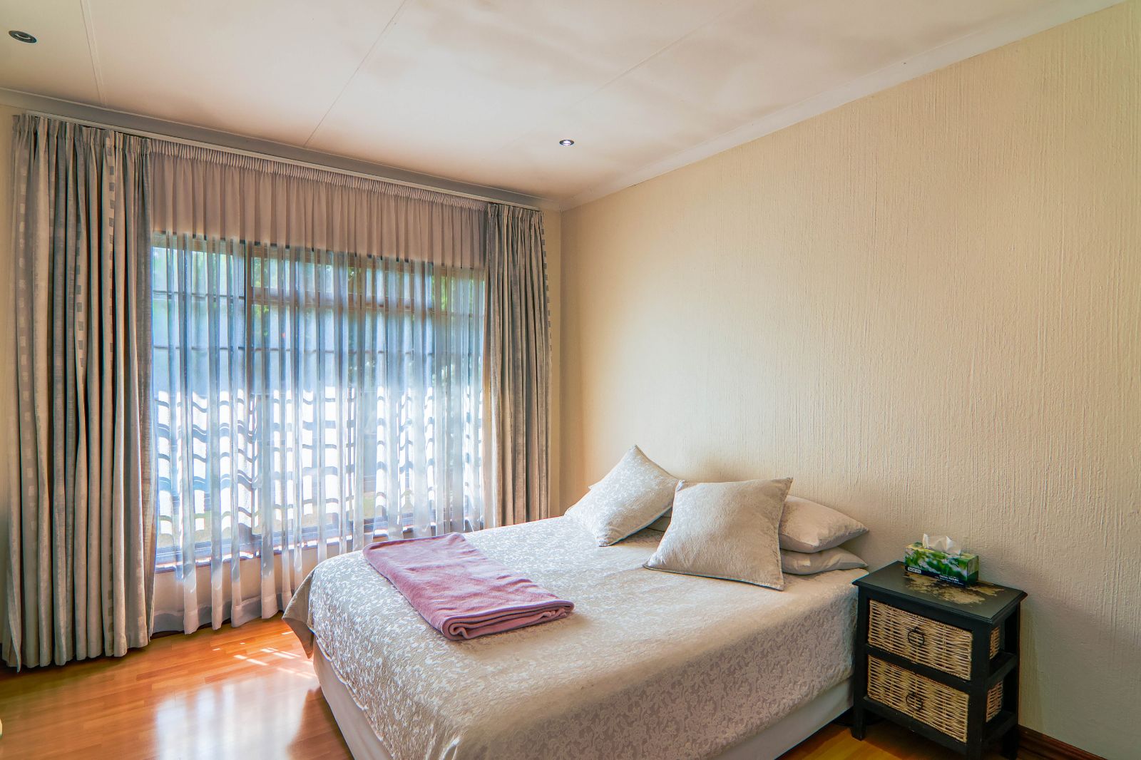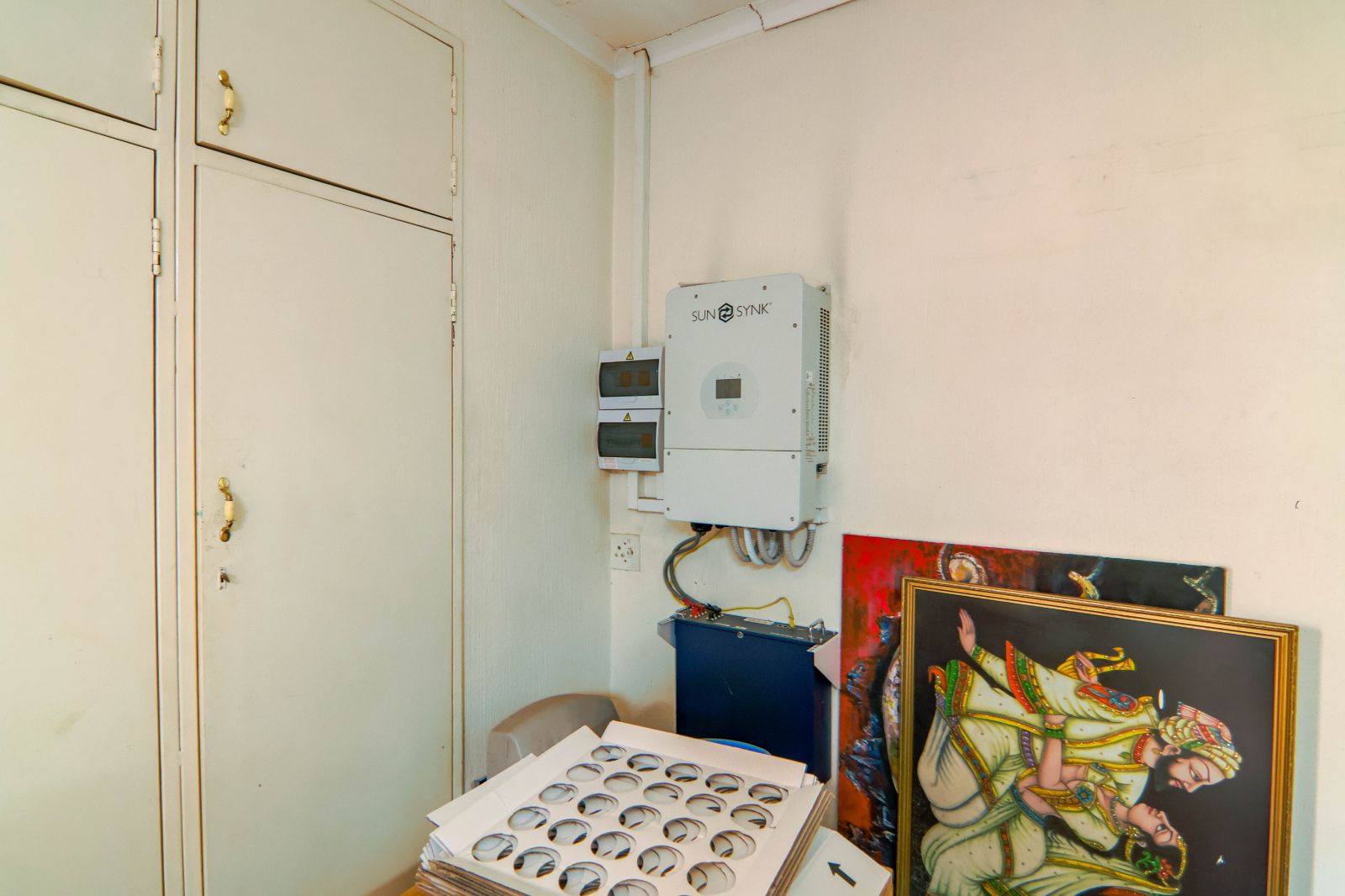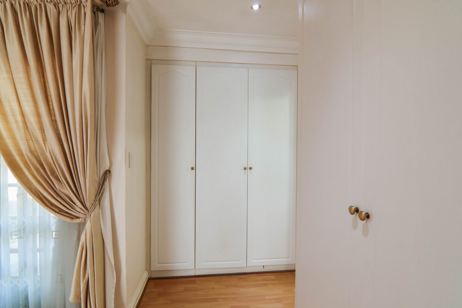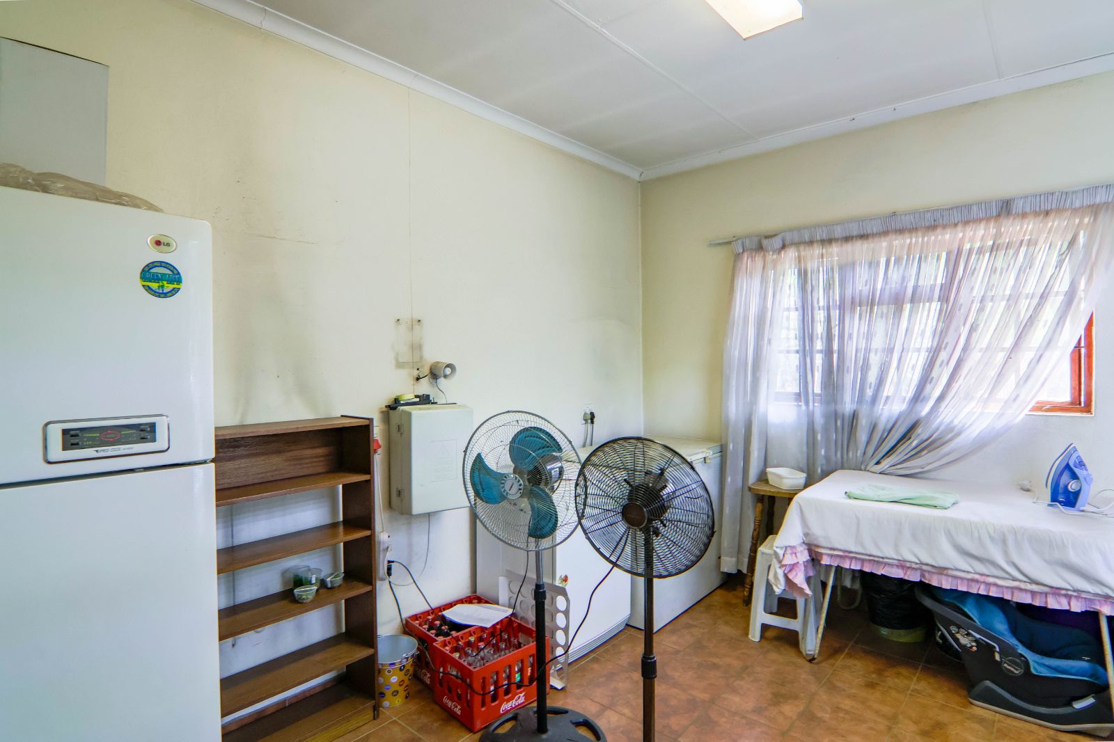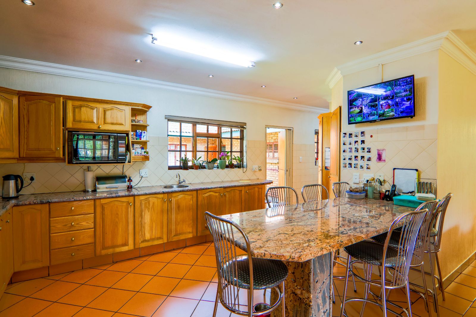 The open-plan kitchen is positioned next to the family room and leads directly to a beautiful braai area, an entertainer’s dream. The kitchen is well-equipped with both an electric and gas stove, oven, and prep bowl. A separate scullery provides ample space for all your appliances and includes a laundry basin. Adjacent to the kitchen is a versatile storeroom that can be used for multiple purposes.