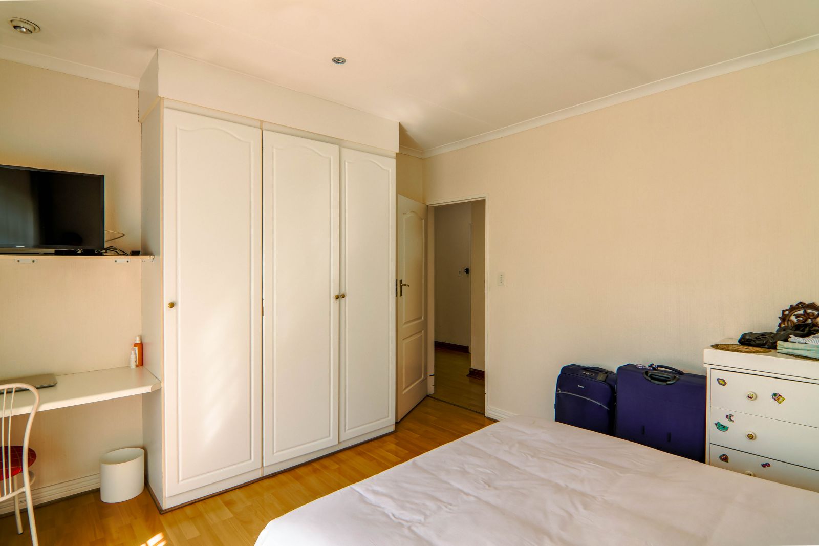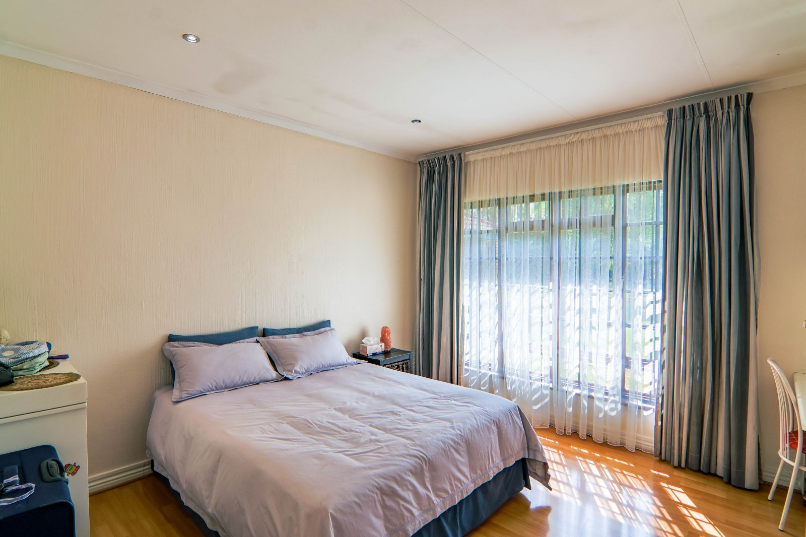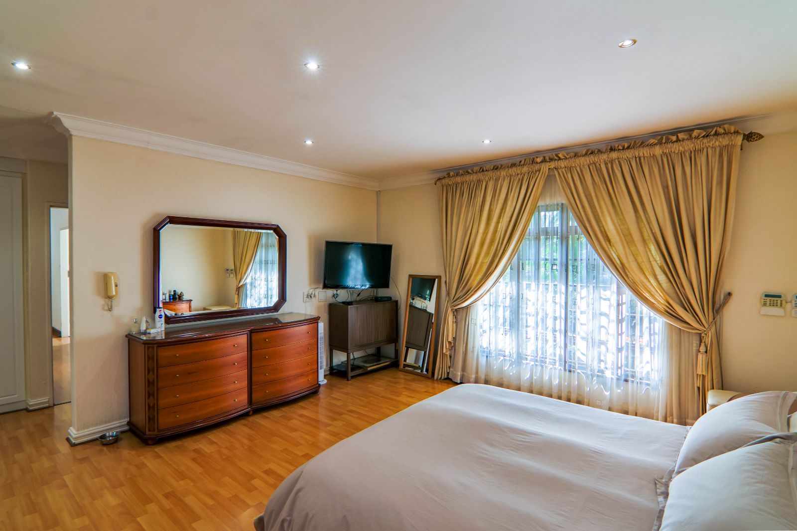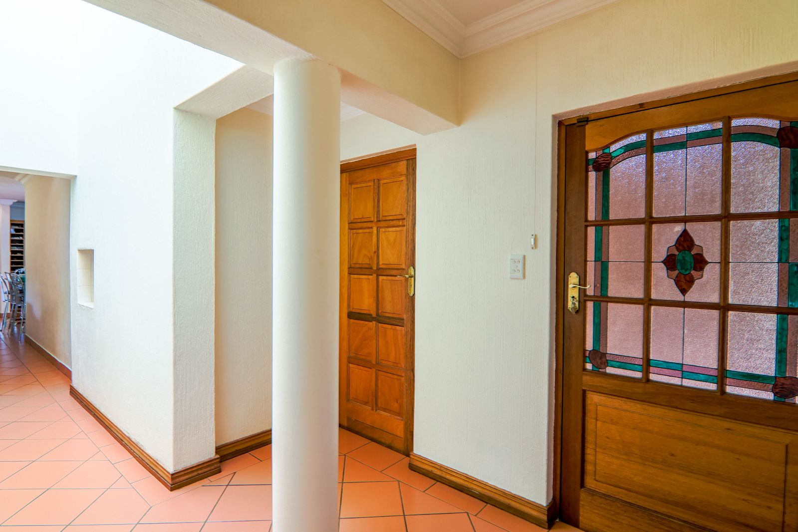 The open-plan kitchen is positioned next to the family room and leads directly to a beautiful braai area, an entertainer’s dream. The kitchen is well-equipped with both an electric and gas stove, oven, and prep bowl. A separate scullery provides ample space for all your appliances and includes a laundry basin. Adjacent to the kitchen is a versatile storeroom that can be used for multiple purposes.