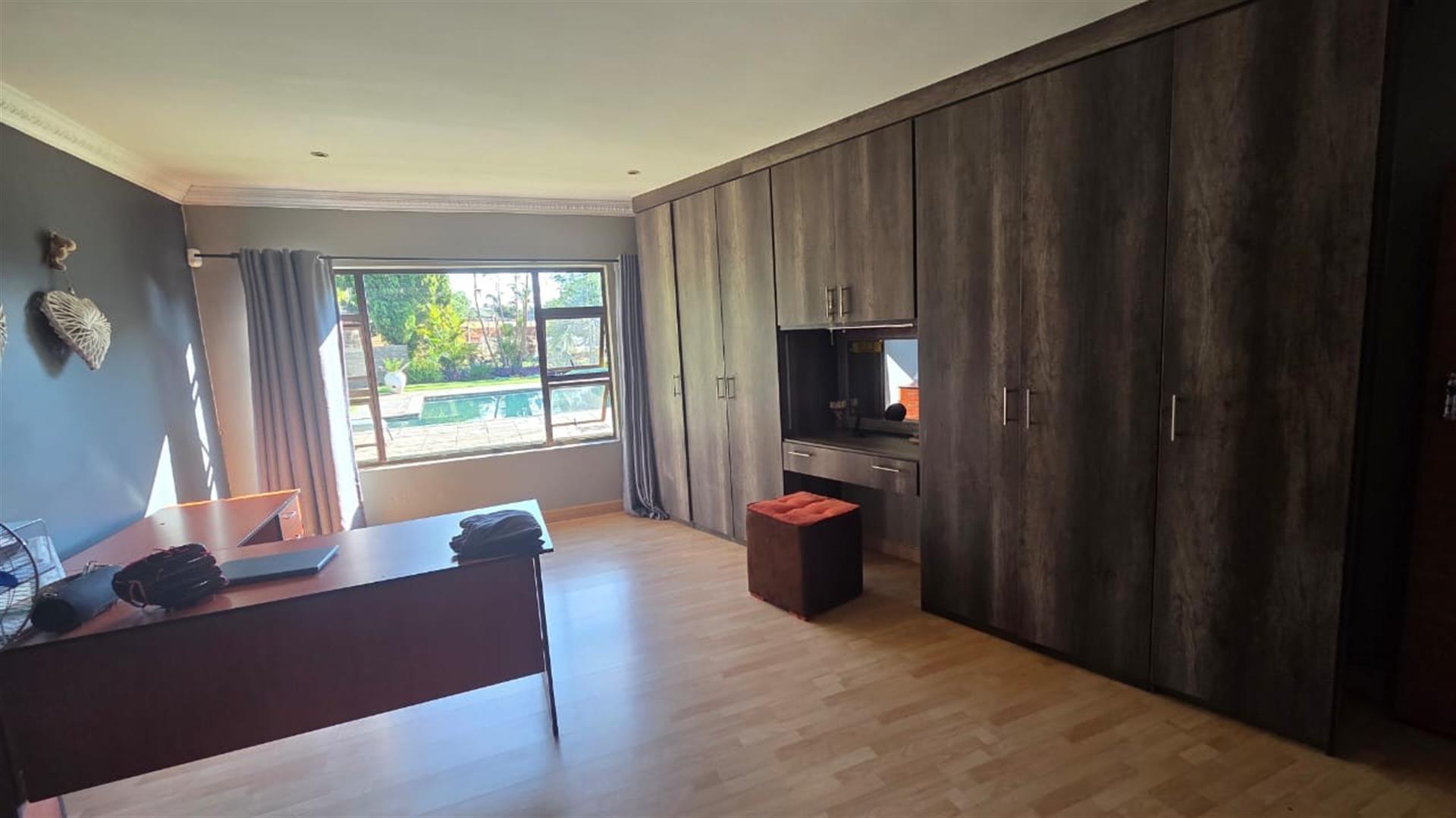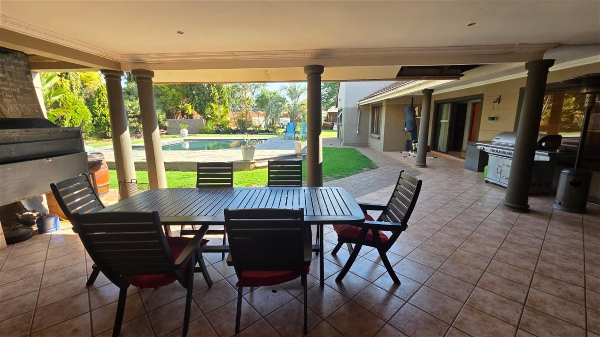 The entertainment area is ideal for gatherings, boasting a built-in braai and seamless flow to the pool. The property also offers 3 garages, 2 carports, and servants’ quarters.